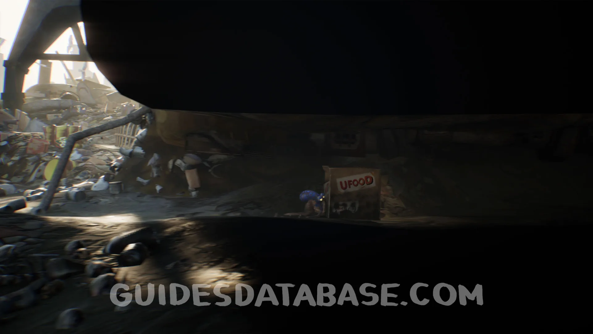 In this chapter, you will need to push a Ufood box to the other end to continue progressing to the right. Instead, climb on top of the box and go through the upper part of the area to the left, jump onto the excavator shovel and keep heading to the left and you will find this Discovery.