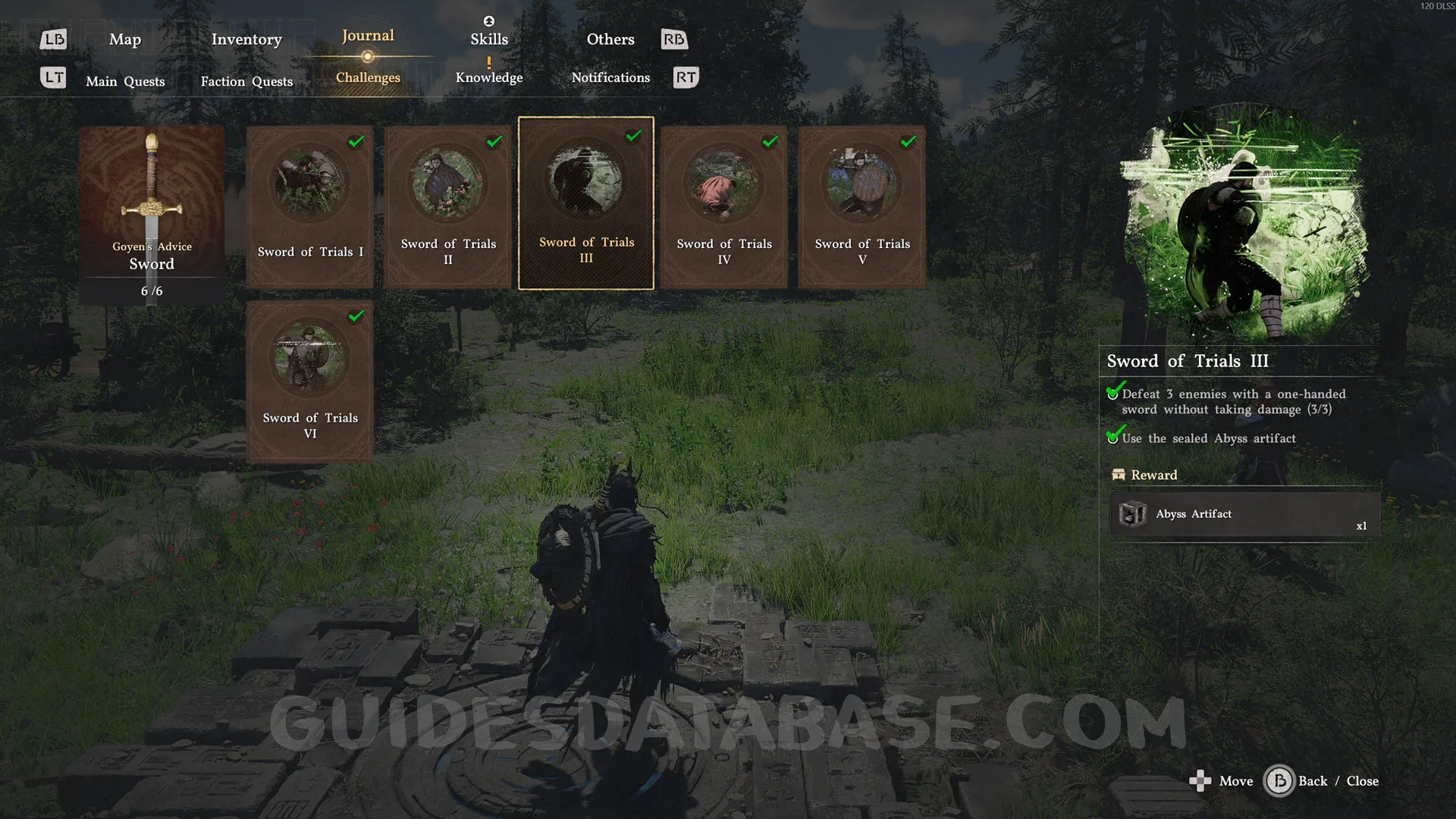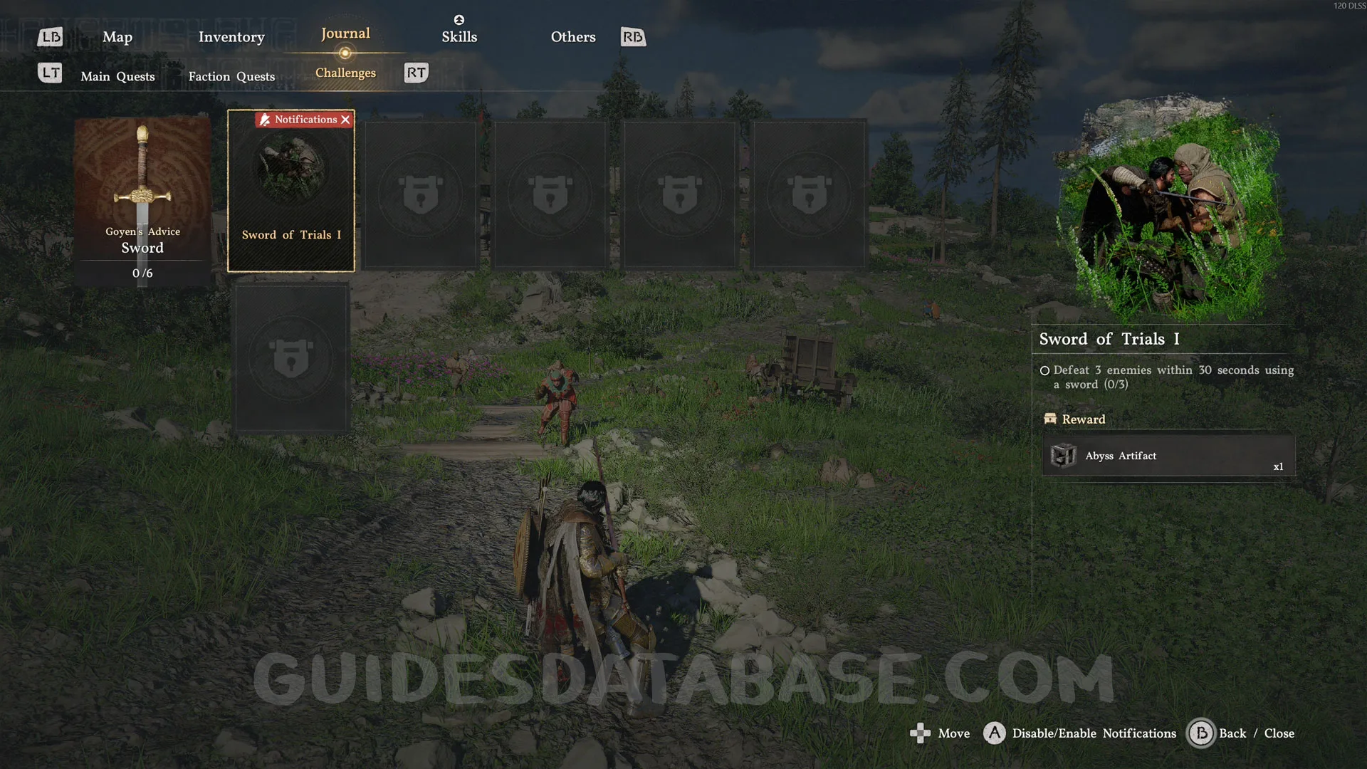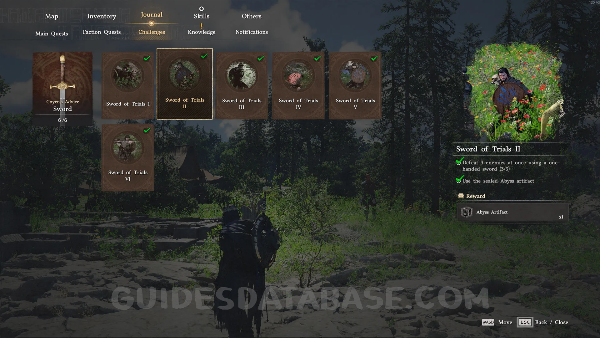 GUIDESDATABASE.COMAfter crossing the wooden suspension bridge, continue straight ahead and pass through the gate, then turn right and take the next left. Keep going forward and you will spot the Sealed Abyss Artifact. Pick it up to start the Challenge.