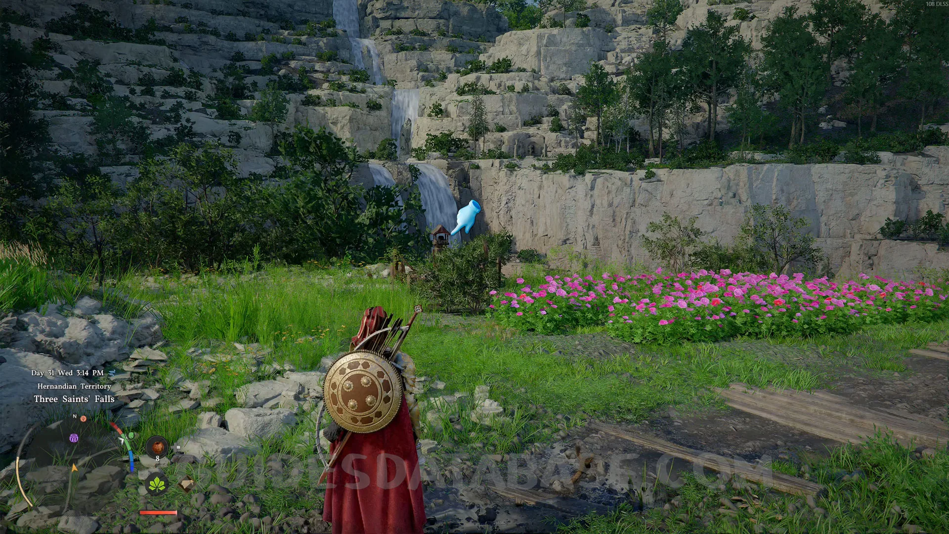 Head to the marked location on the map, climb the stairs at the back of the area, and follow the linear path up the stairs and across the wooden suspension bridge.