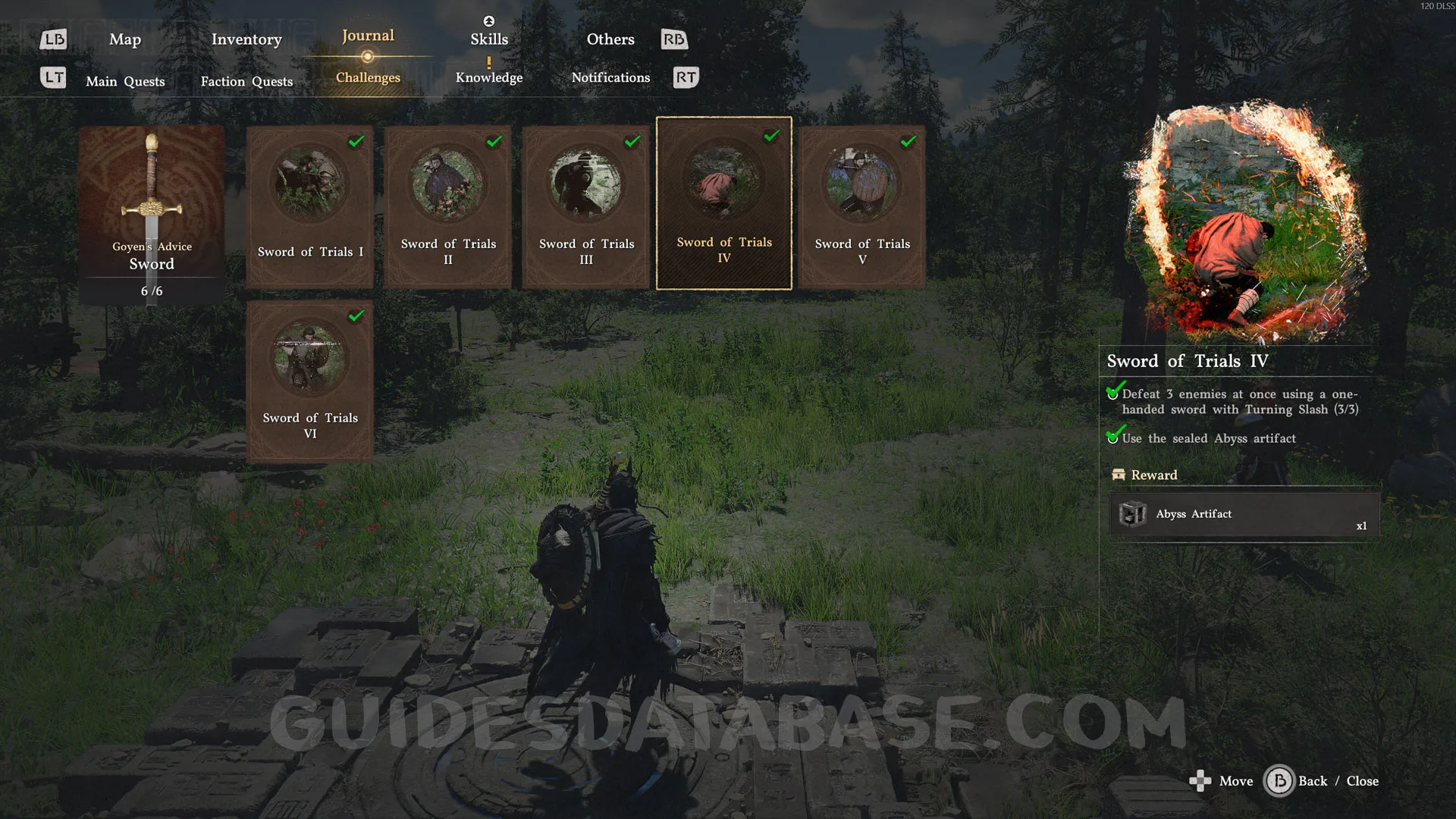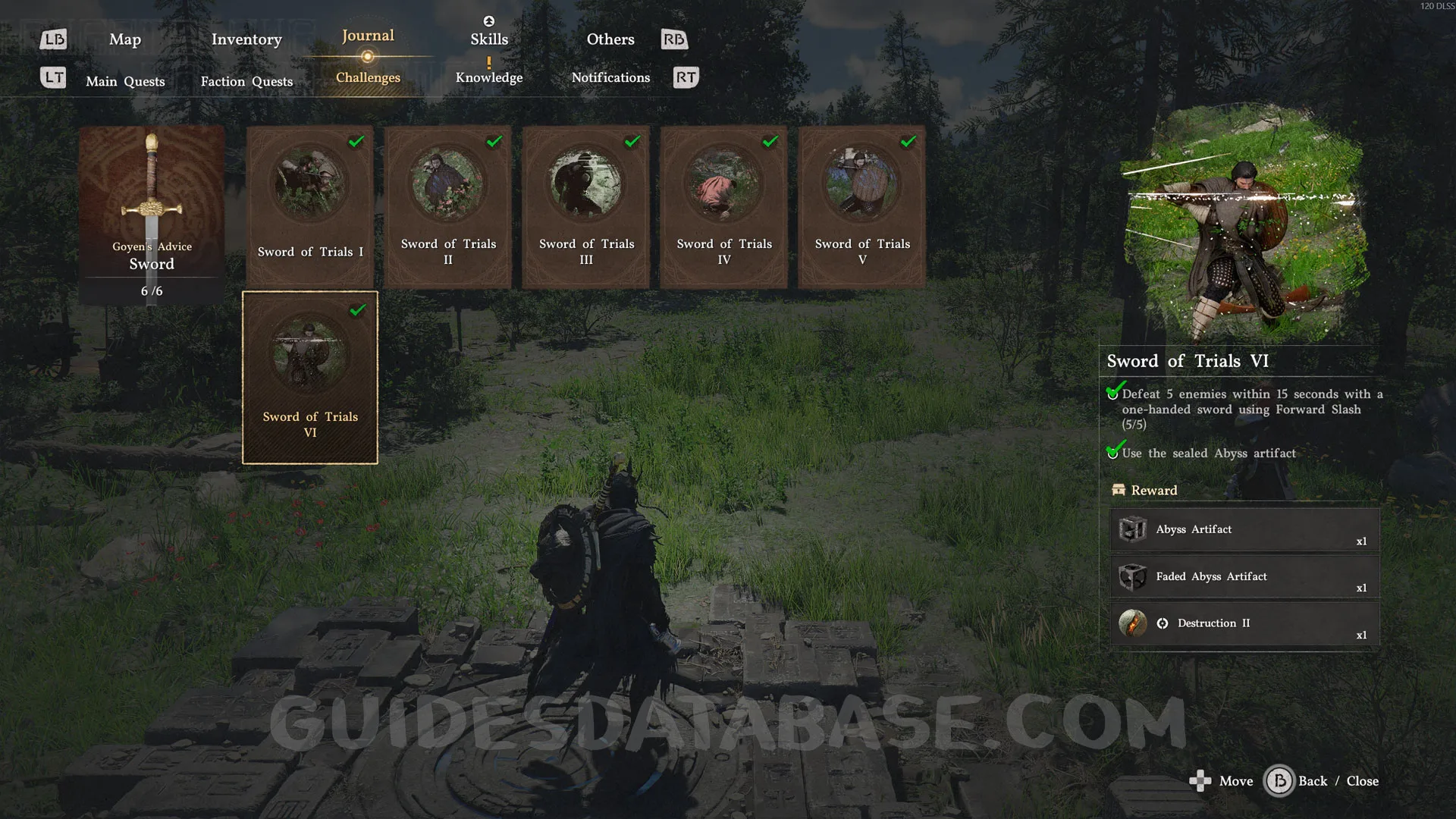 GUIDESDATABASE.COMTo complete this Challenge, you will need the Forward Slash skill. Defeat 5 enemies within 15 seconds using your sword and the Forward Slash skill. Again, deal significant damage to the enemies without finishing them off, then lure them all close together and use the Forward Slash skill to take them all down at once.