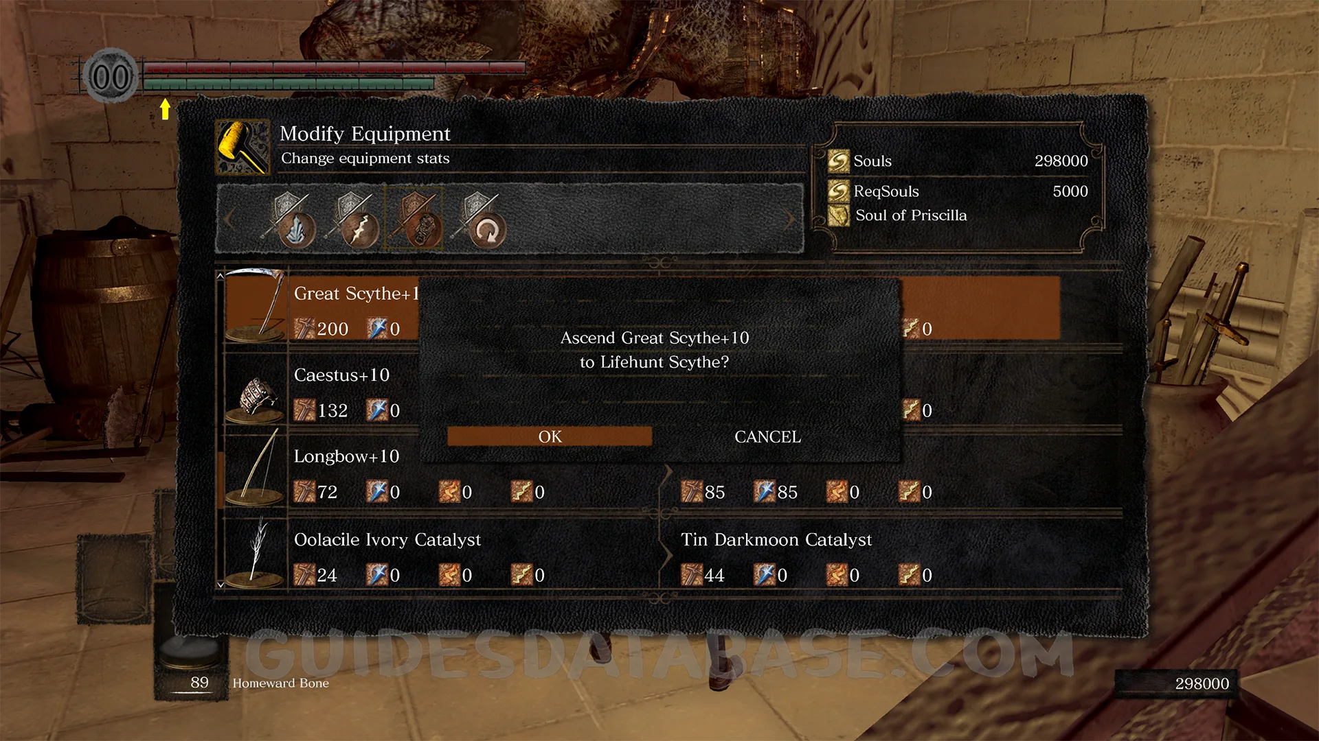 Lifehunt Scythe requires the Soul of Priscilla and any +10 Halberd, Scythe, or Whip.
