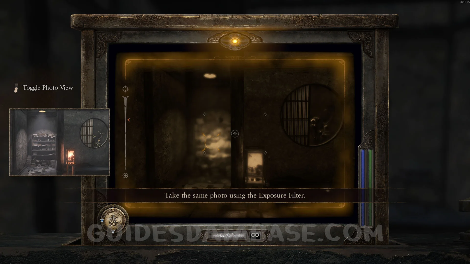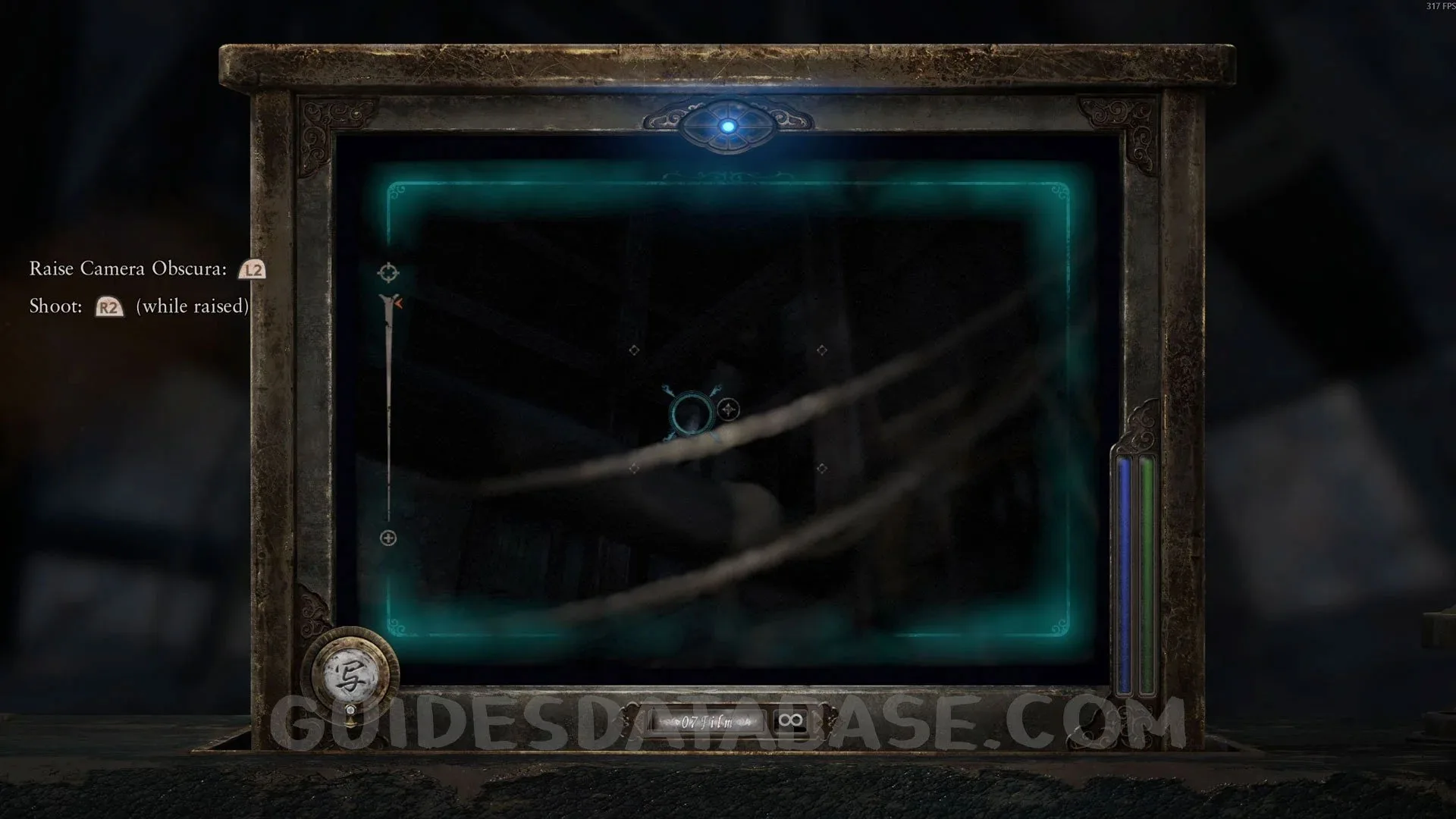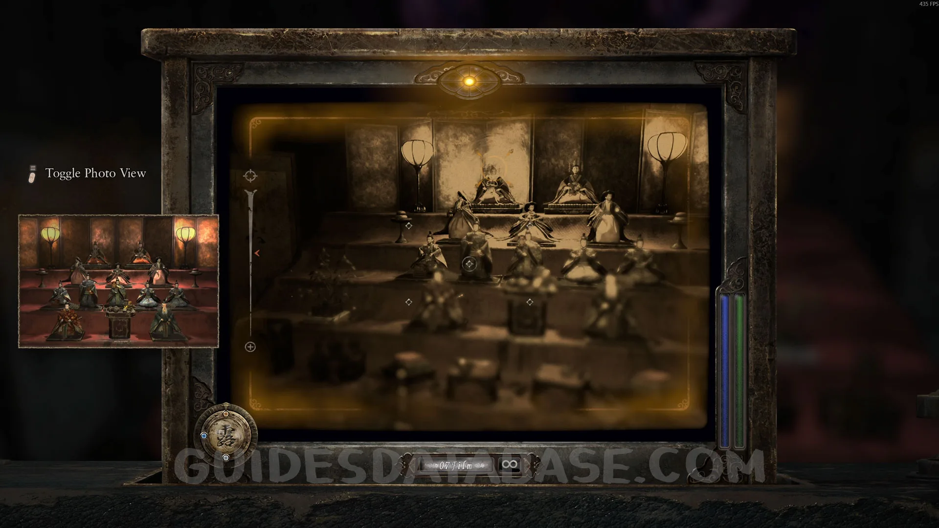Now that you have a Prayer Bead, open the menu and buy the Zoom upgrade for the Camera Obscura. Go to Eikado Temple, head to the right, and crouch down to look underneath the temple. You will see two Twin Dolls there. Use the zoom to line them up in the camera and take the photo.