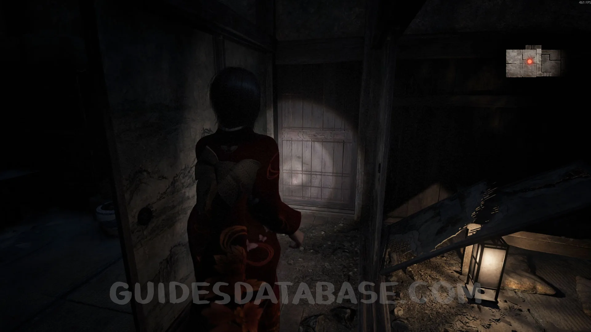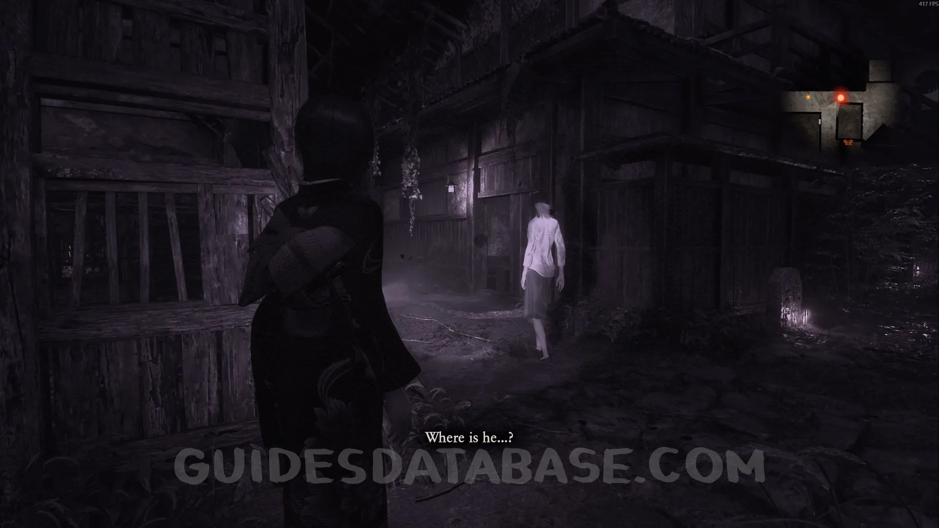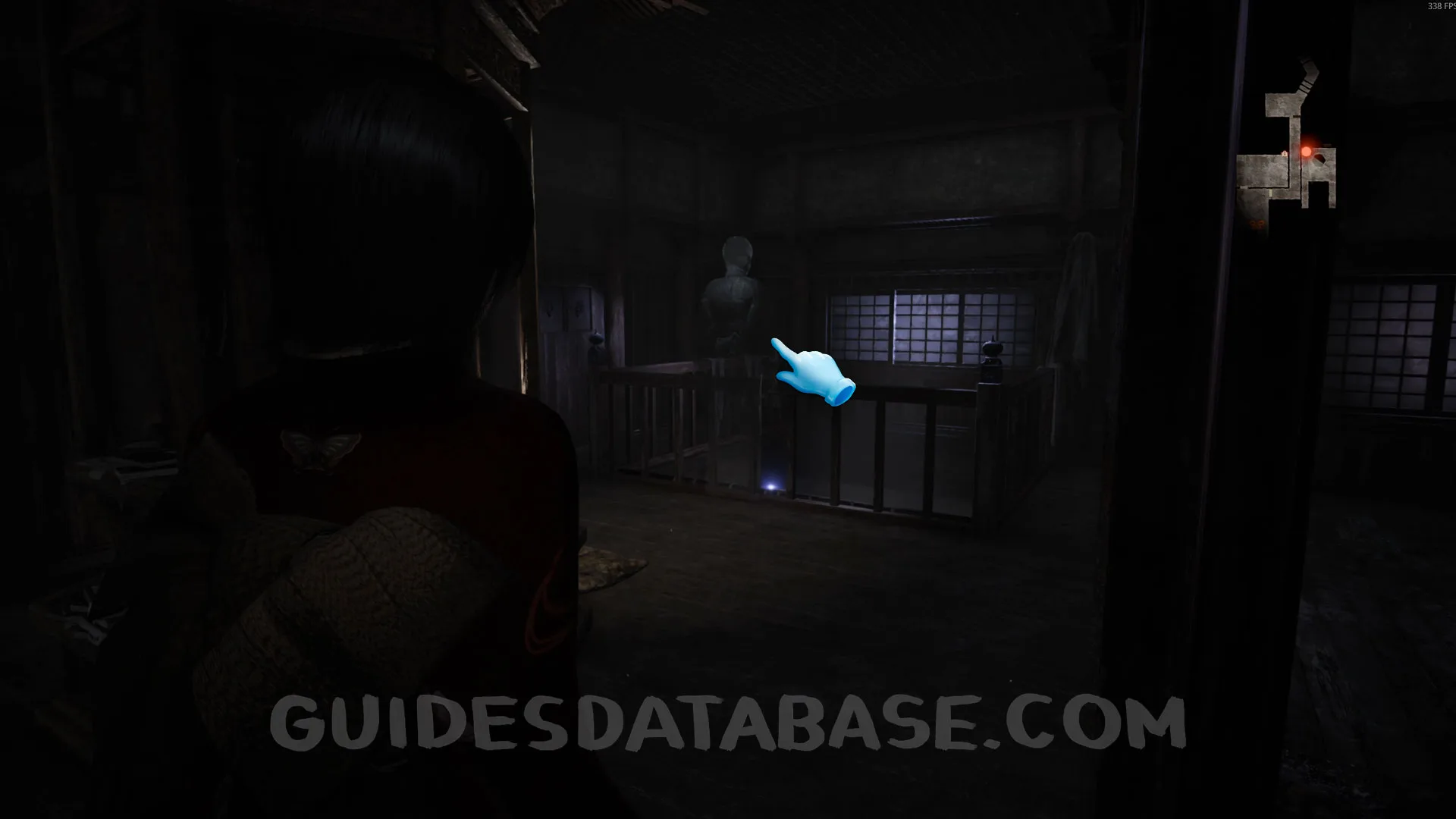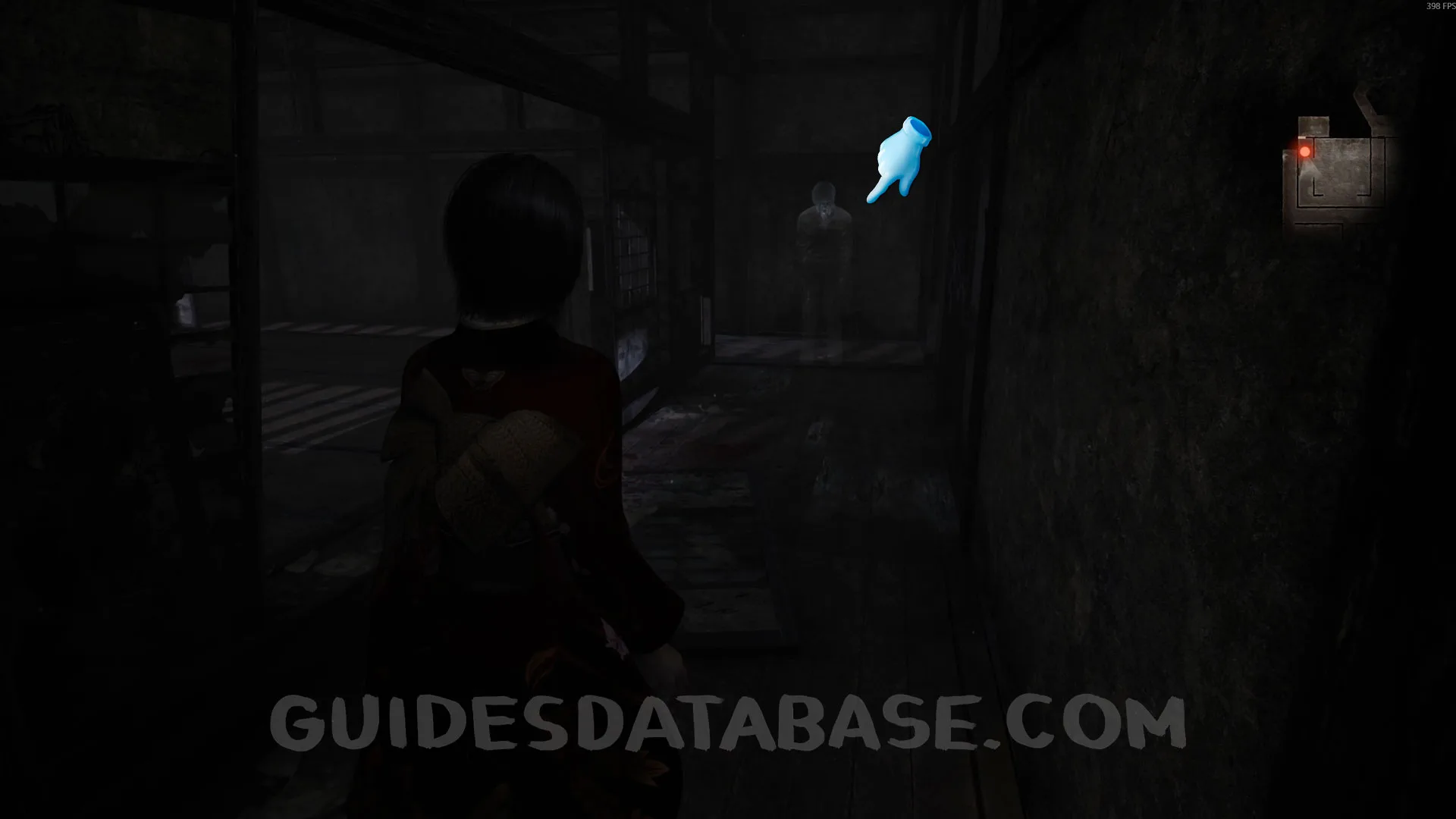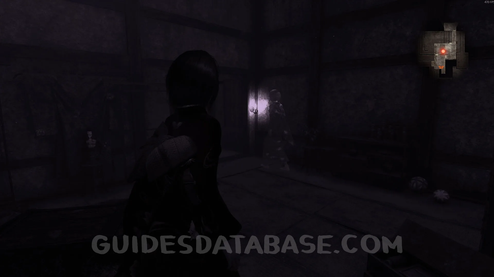 After picking up the Camera Obscura and interacting with the exit door to progress, Mayu will point her finger upward showing this specter on the second floor. Take a picture.