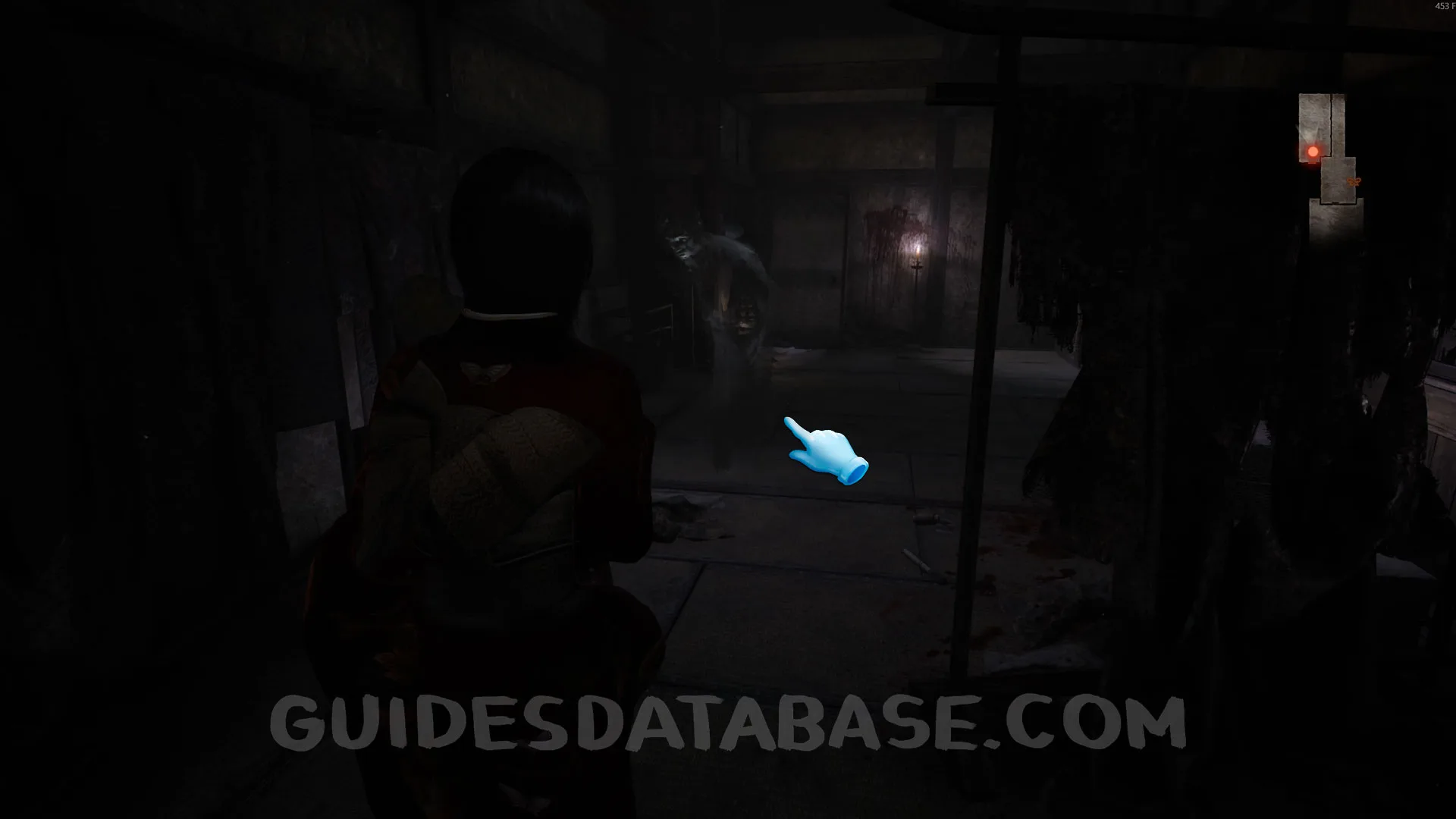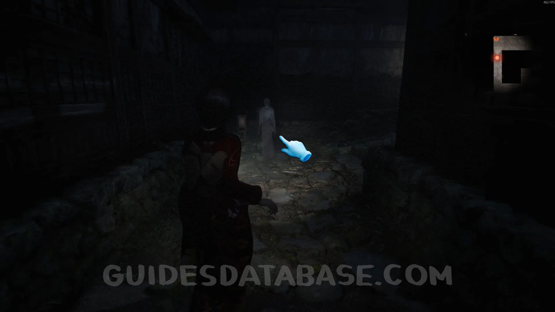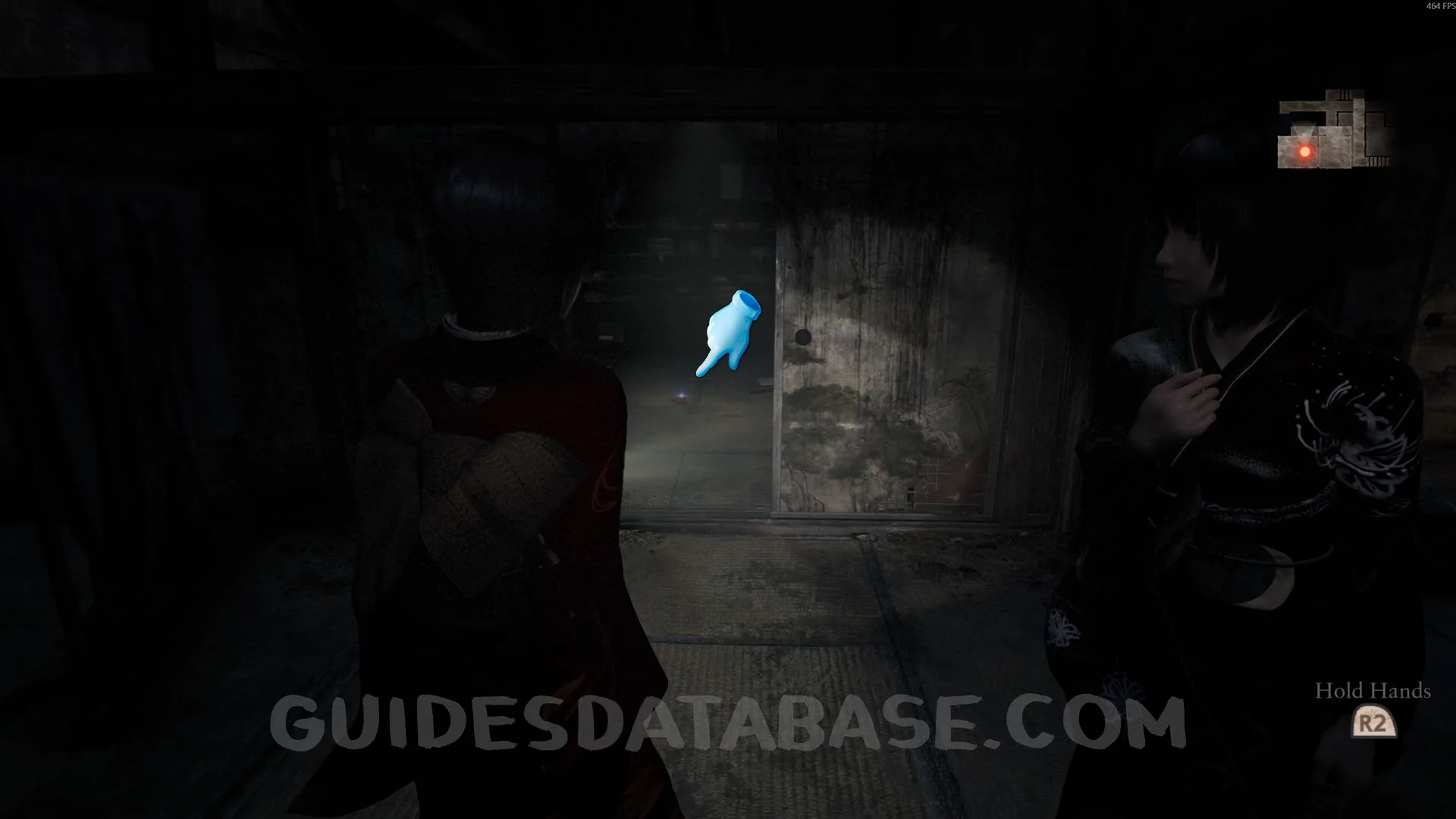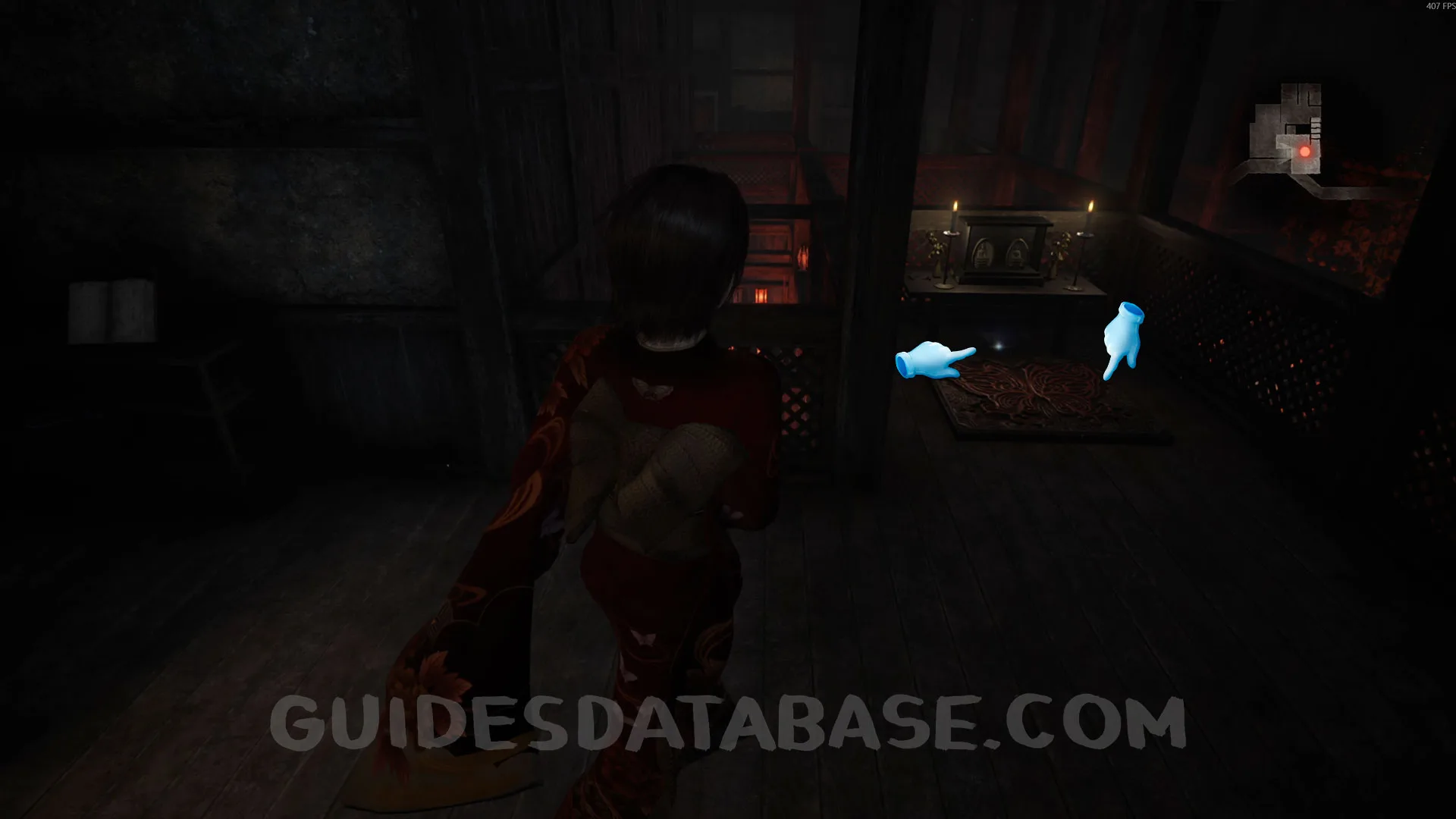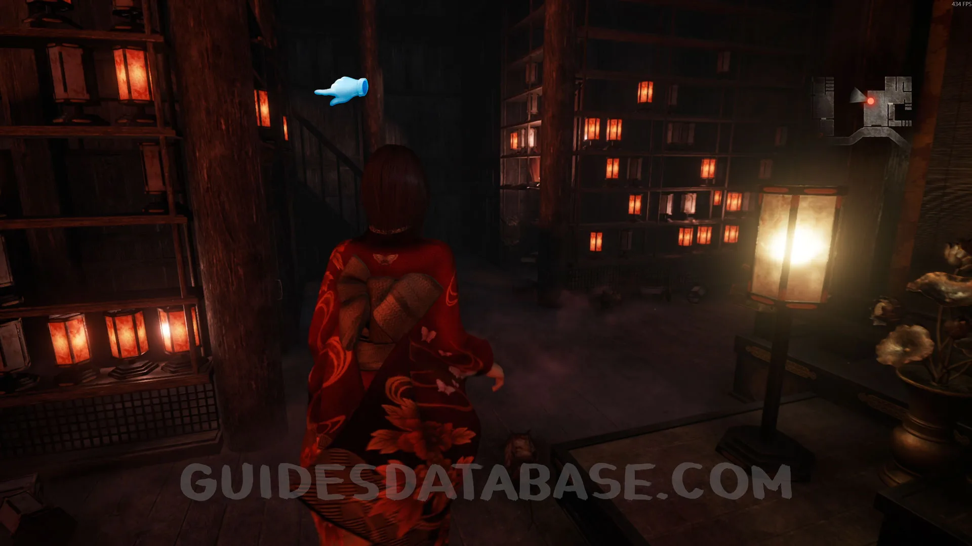 After picking up the Camera Obscura and interacting with the exit door to progress, Mayu will point her finger upward showing this specter on the second floor. Take a picture.
