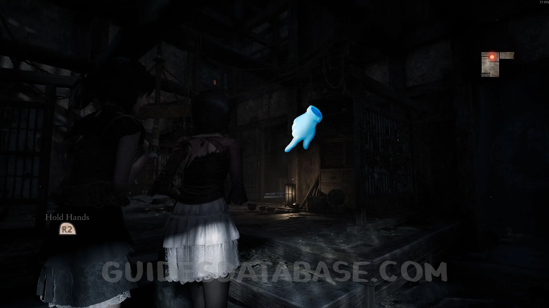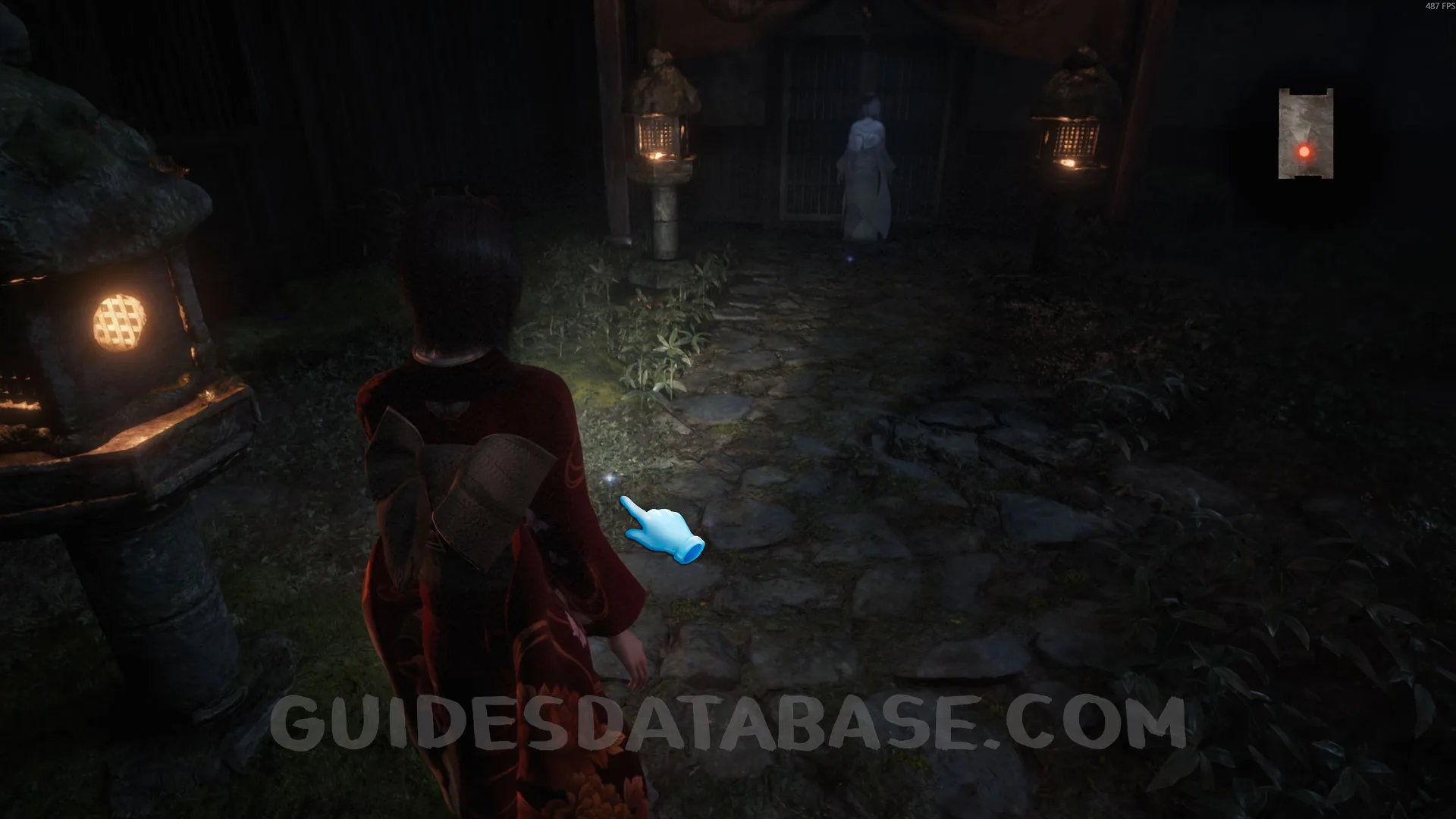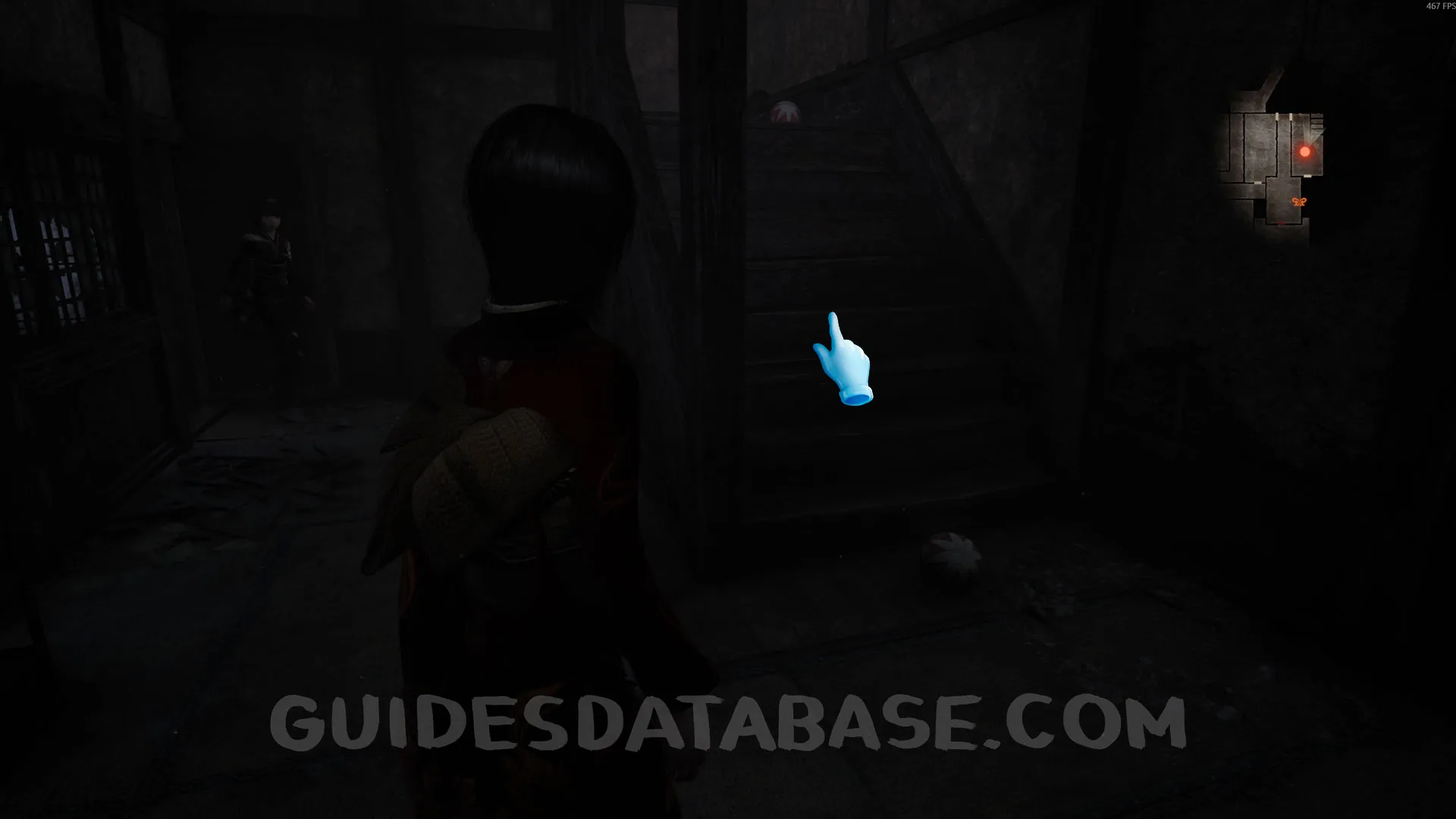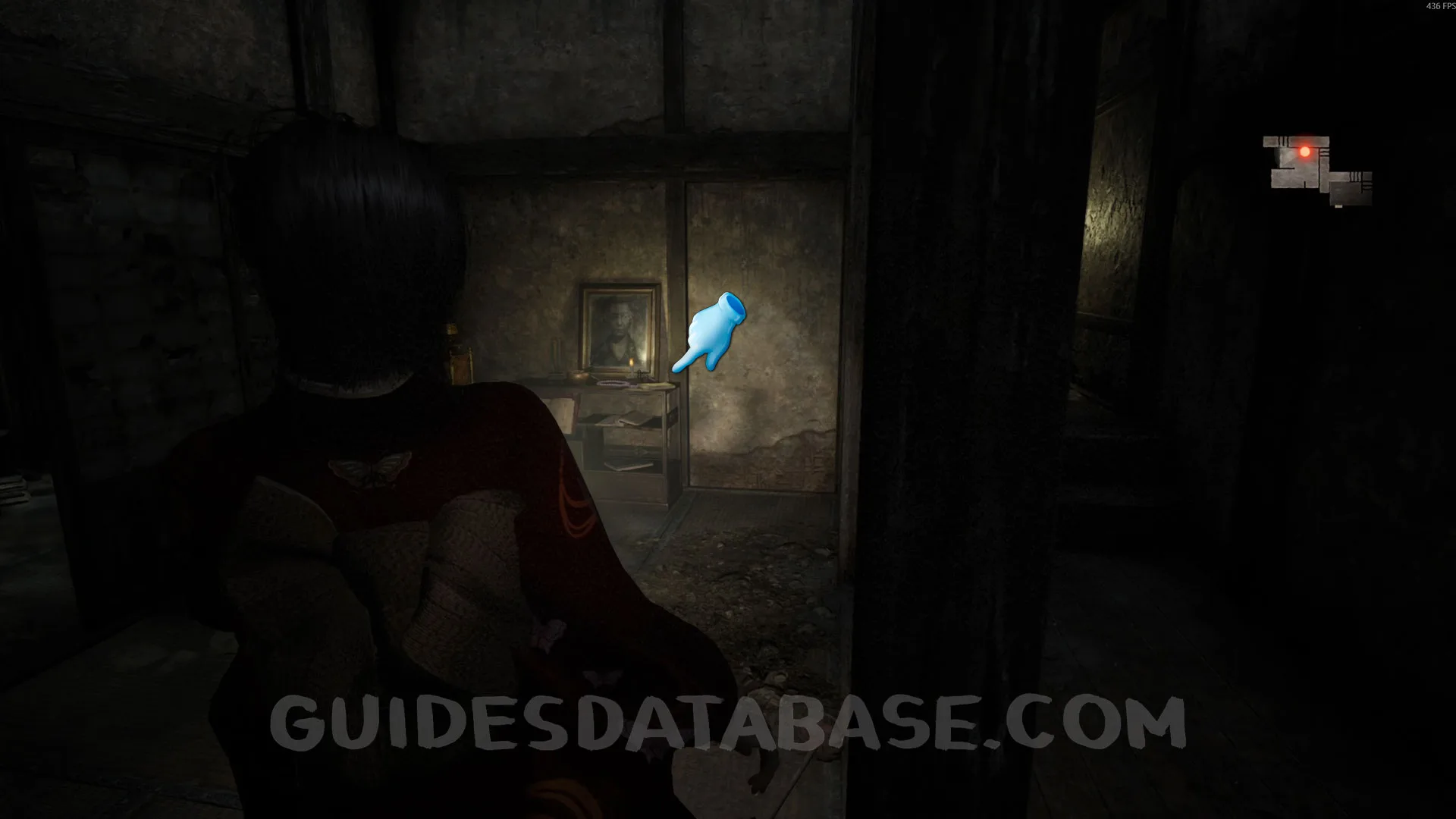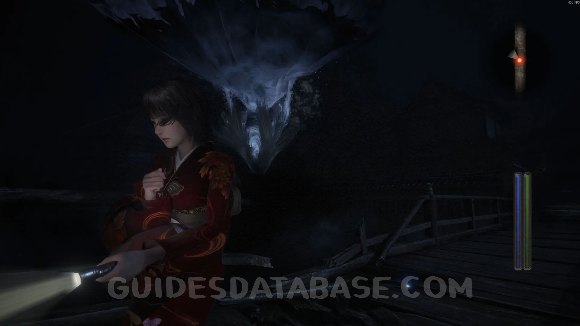 After picking up the Camera Obscura and interacting with the exit door to progress, Mayu will point her finger upward showing this specter on the second floor. Take a picture.