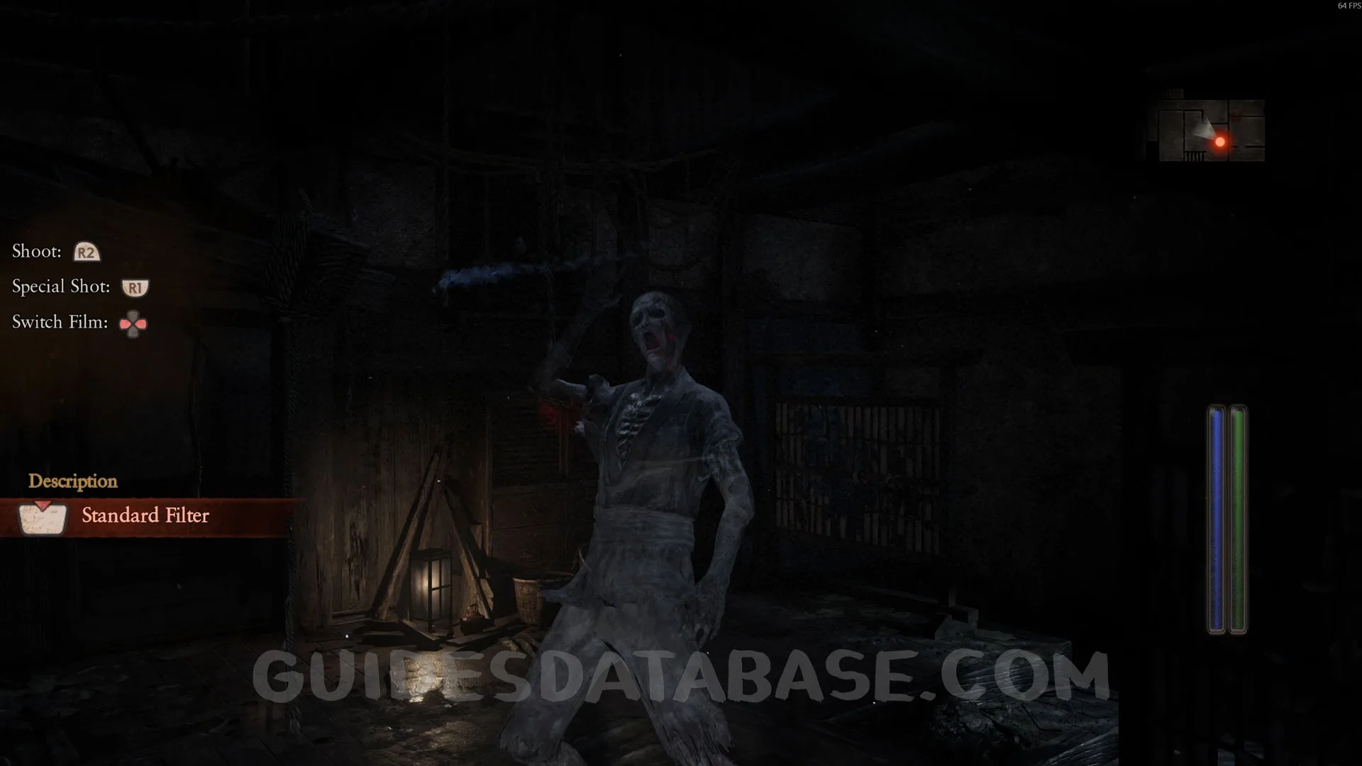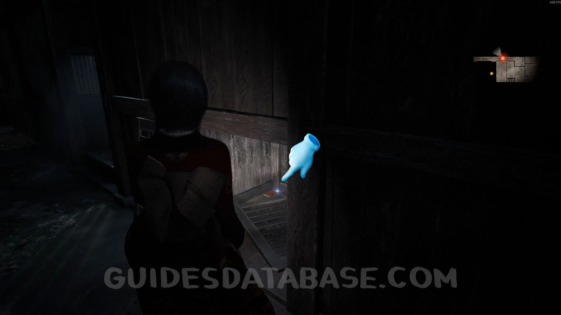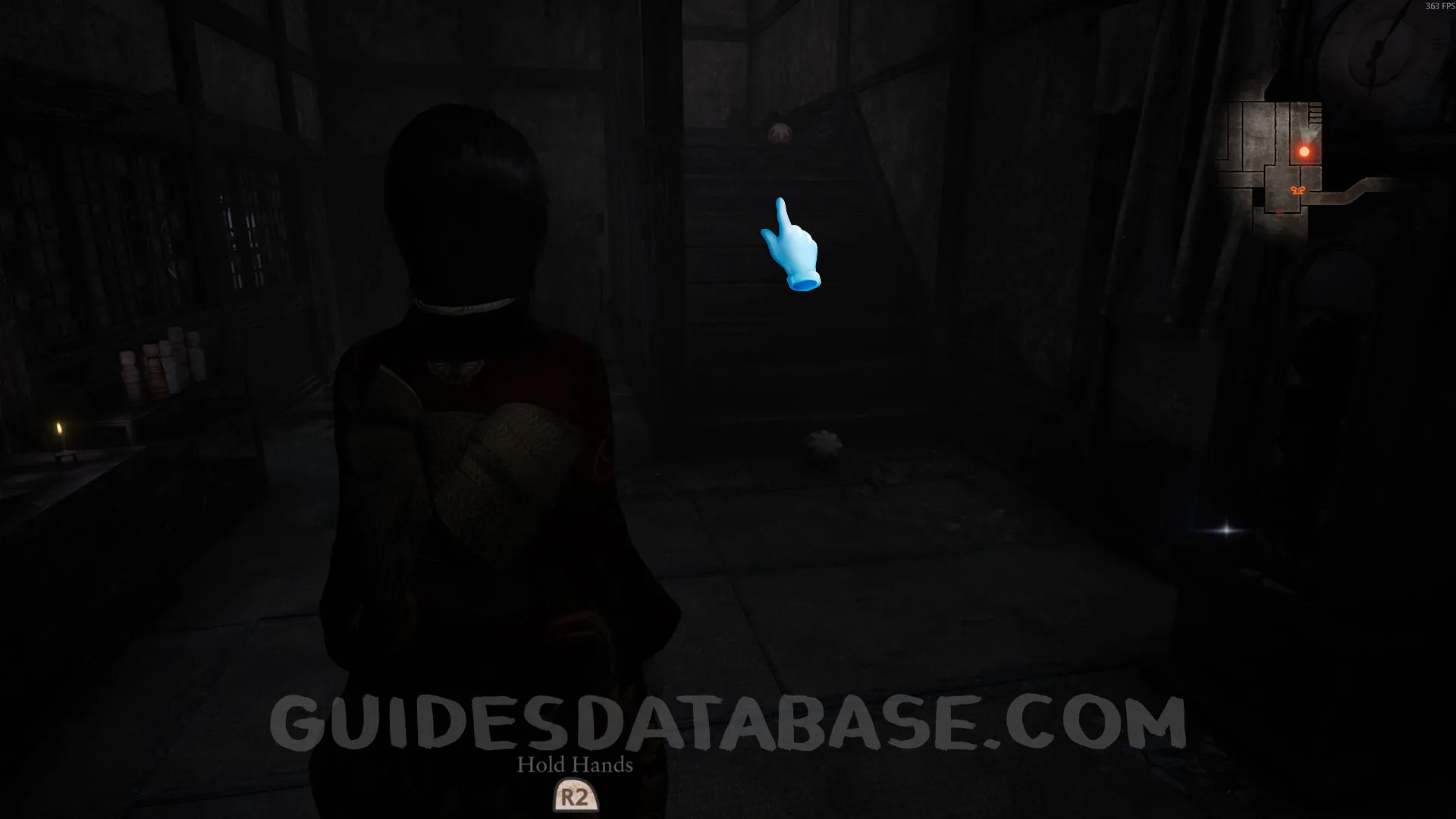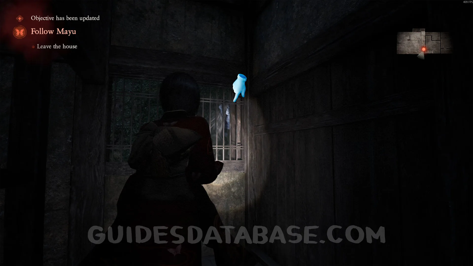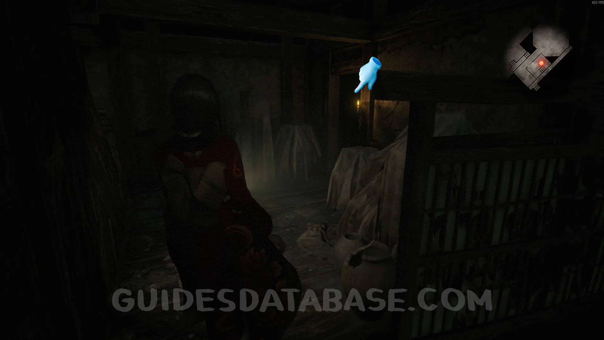 After picking up the Camera Obscura and interacting with the exit door to progress, Mayu will point her finger upward showing this specter on the second floor. Take a picture.