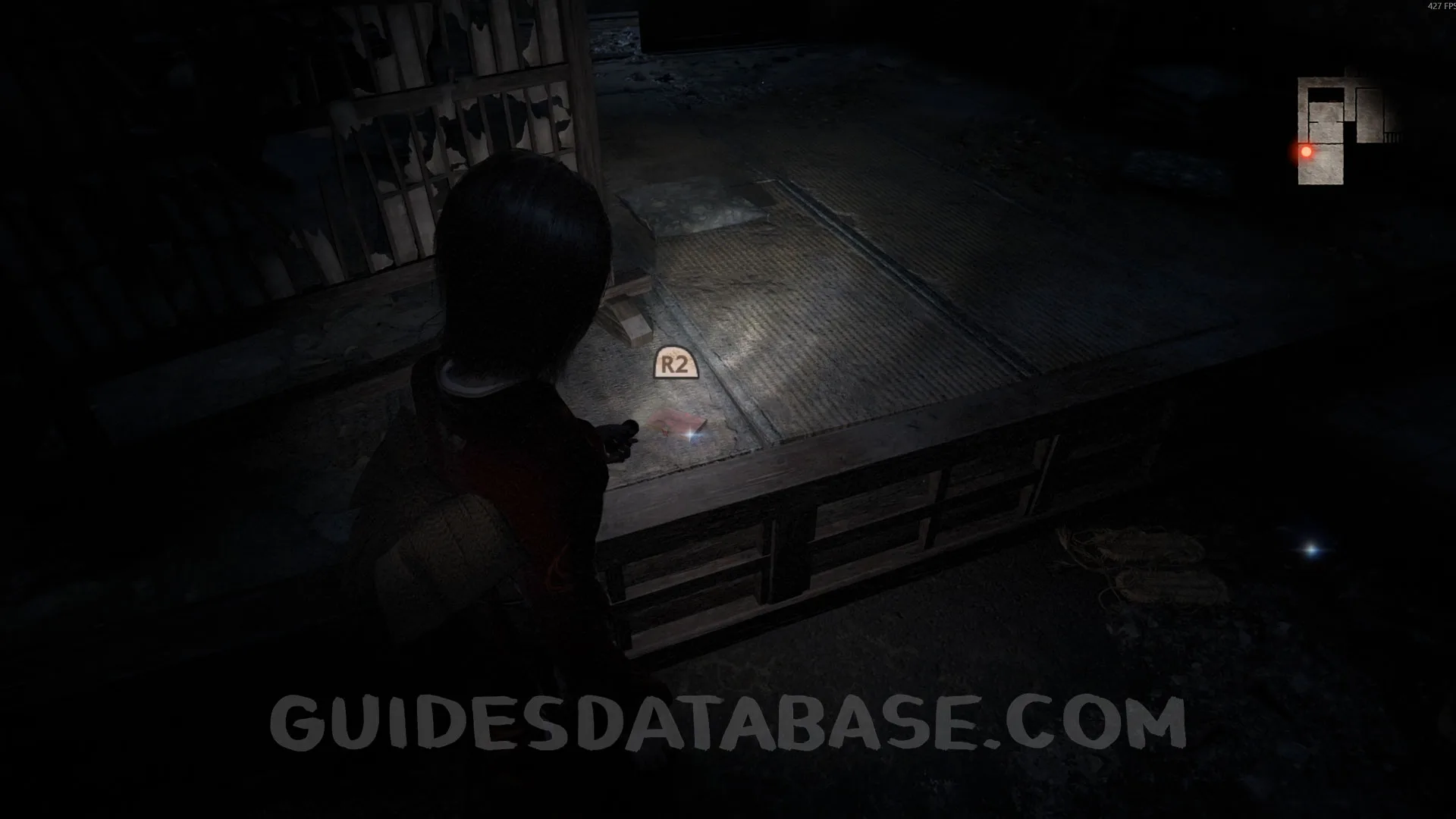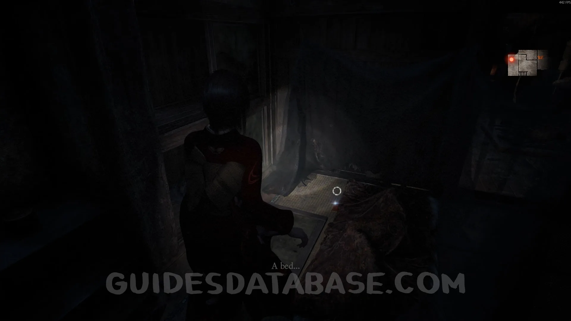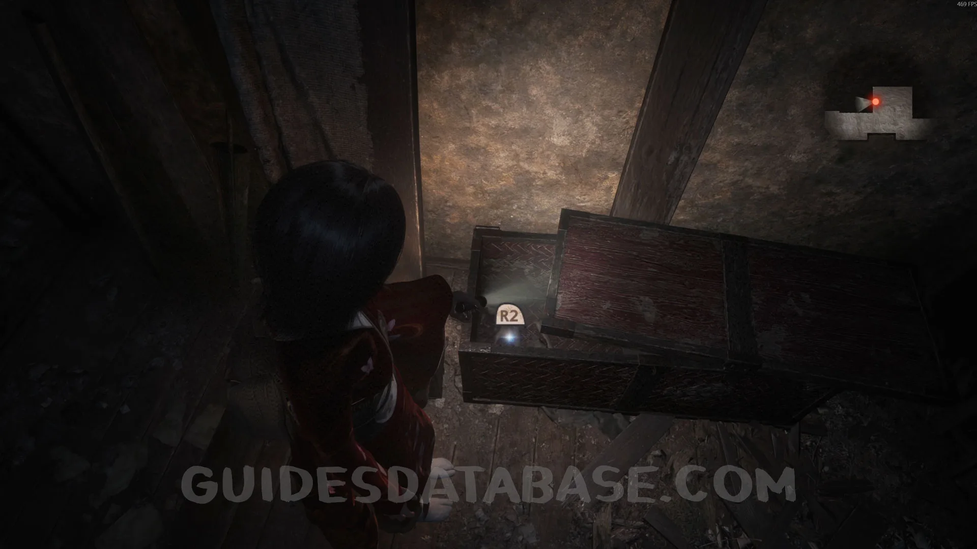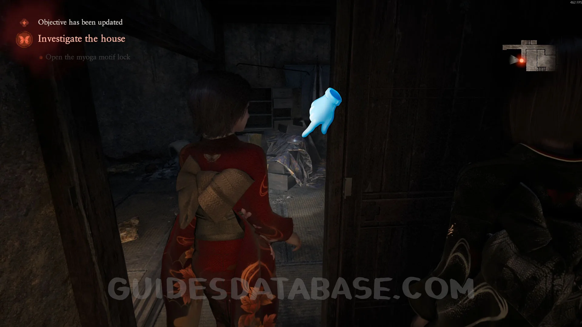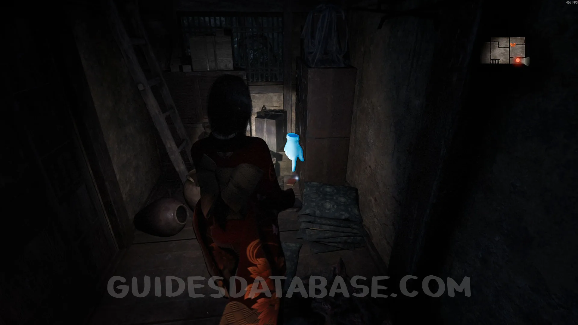 After picking up the Camera Obscura and interacting with the exit door to progress, Mayu will point her finger upward showing this specter on the second floor. Take a picture.