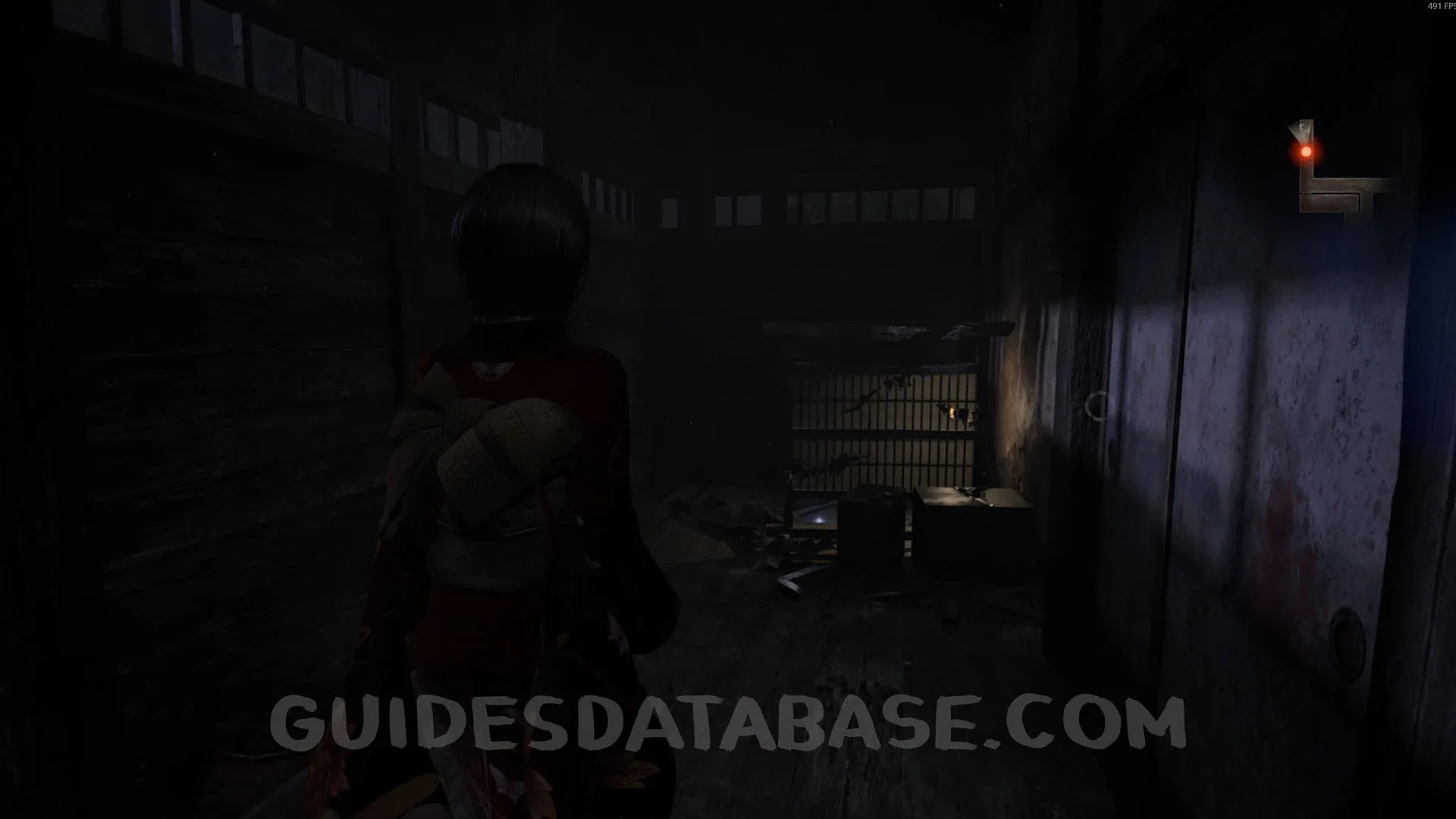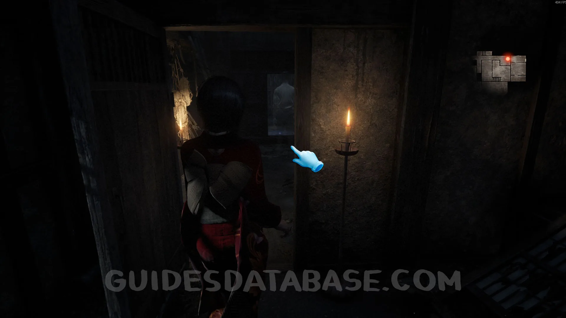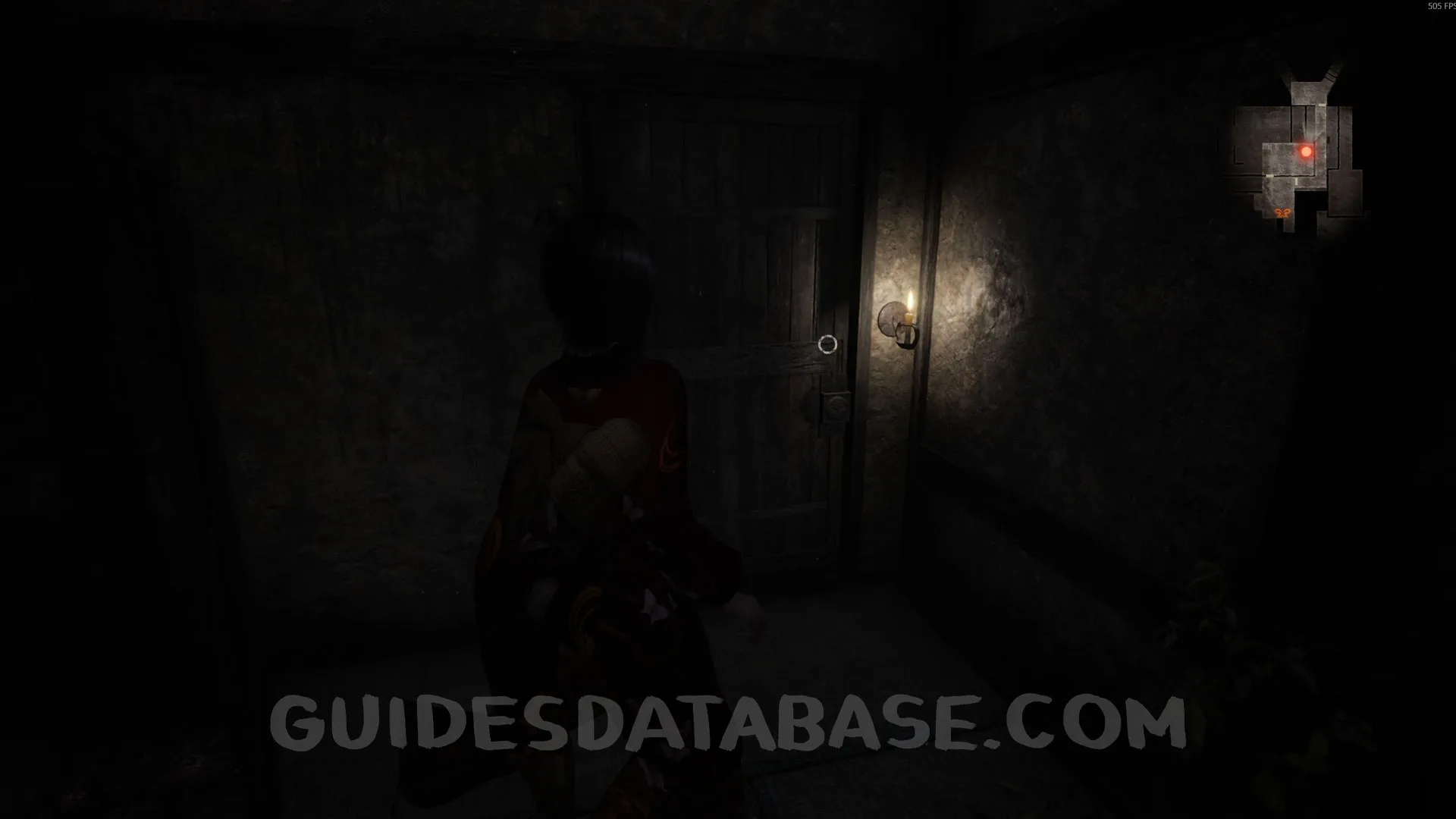 From the previous specter, you’ll need to interact with the door at the end of the hallway to continue. But when you interact with it for the first time, Kusabi will appear and start chasing you. Go back down the entire hallway with Mayu and hide. After Kusabi disappears, go to the end of the hallway again and open the door. You’ll see this specter pass right in front of you.