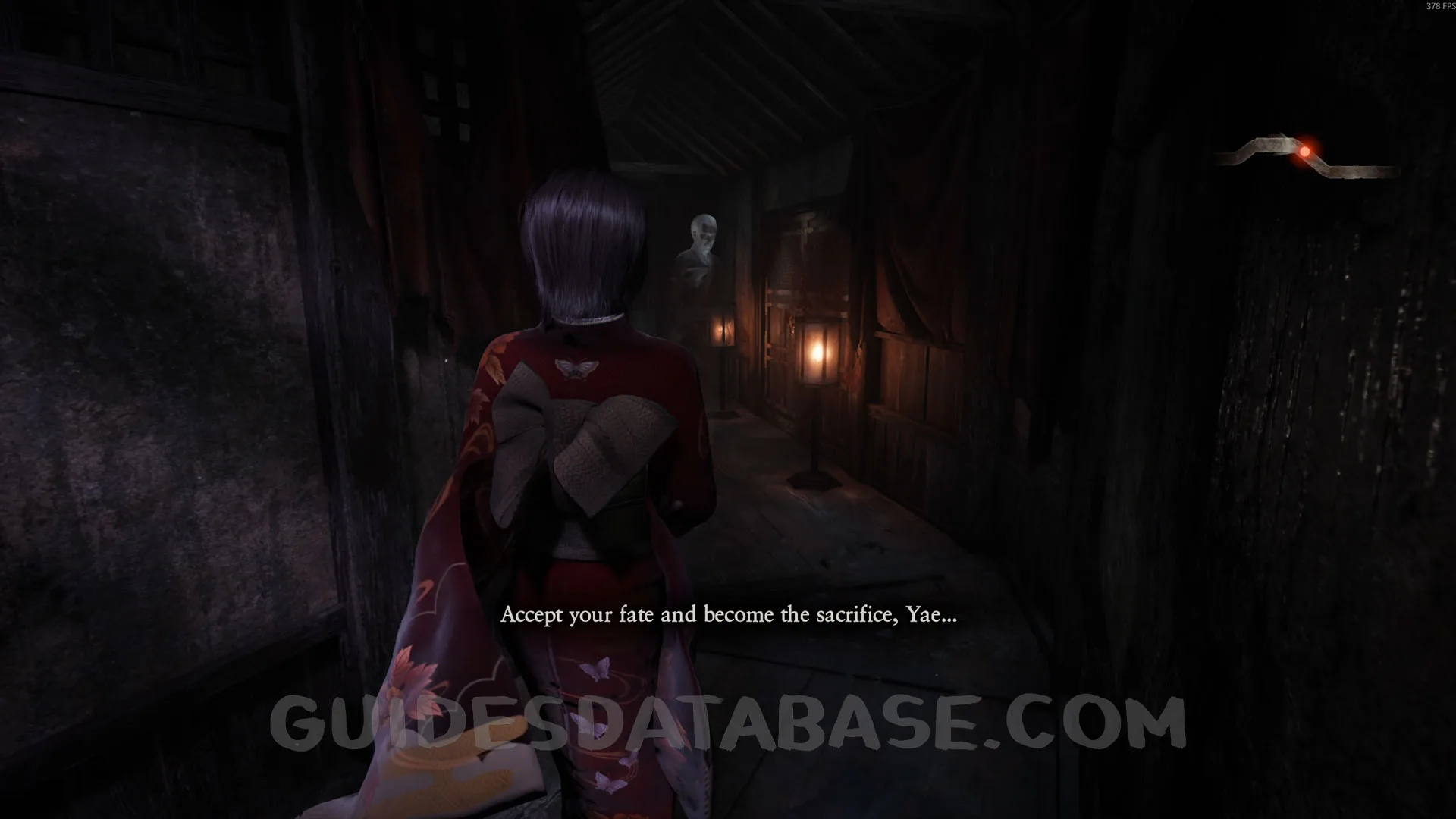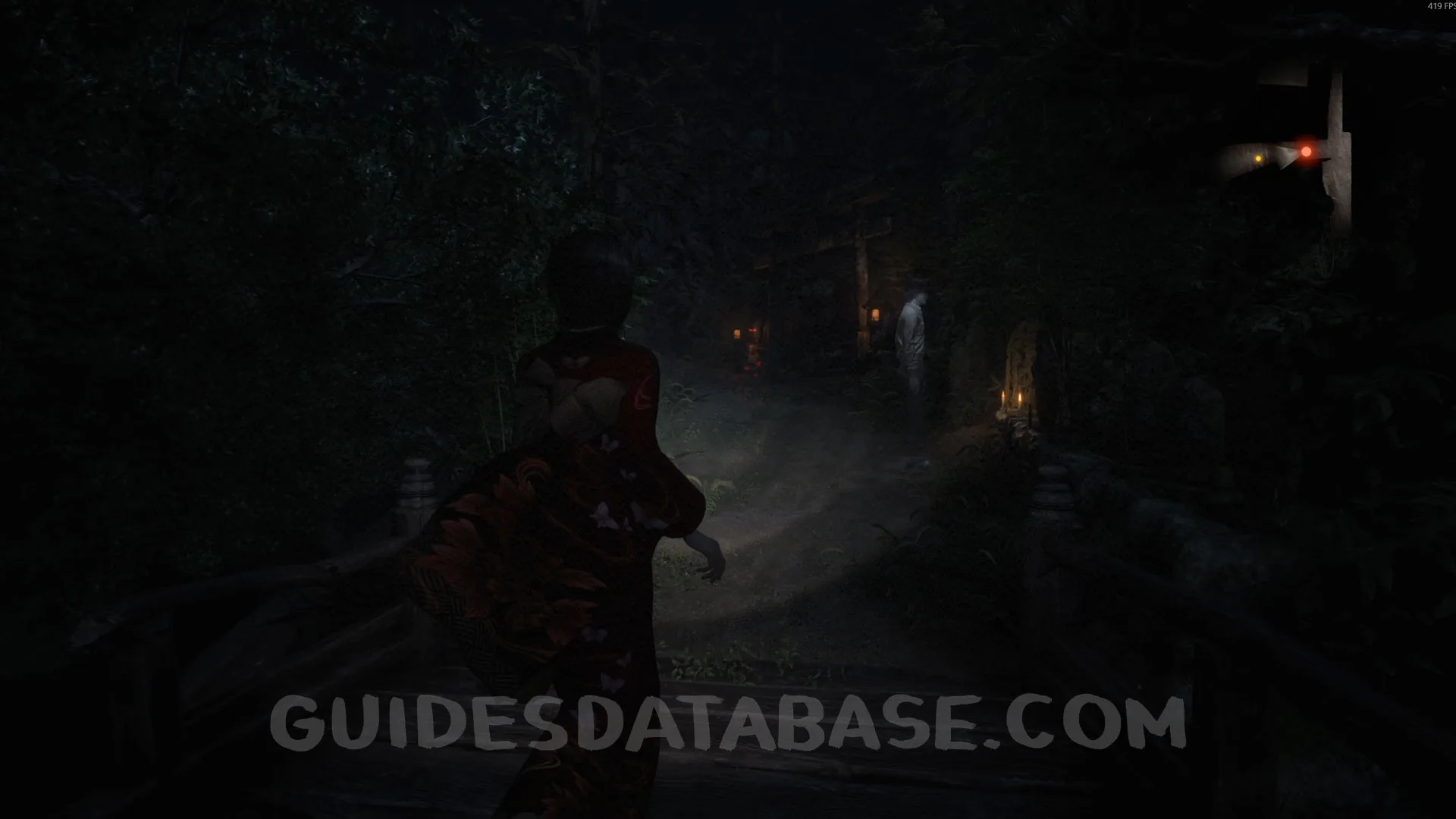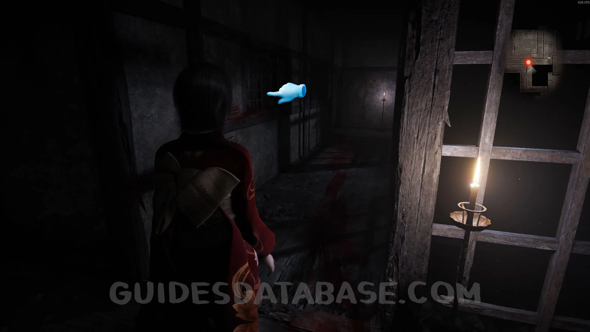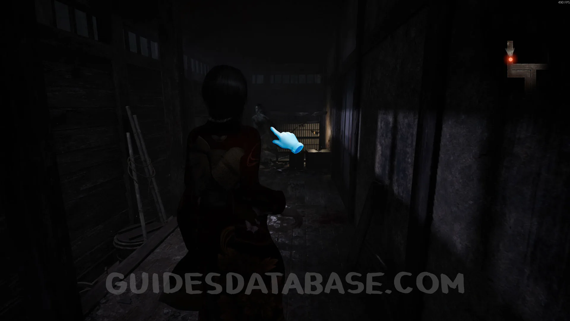 From the previous specter, you’ll need to interact with the door at the end of the hallway to continue. But when you interact with it for the first time, Kusabi will appear and start chasing you. Go back down the entire hallway with Mayu and hide. After Kusabi disappears, go to the end of the hallway again and open the door. You’ll see this specter pass right in front of you.