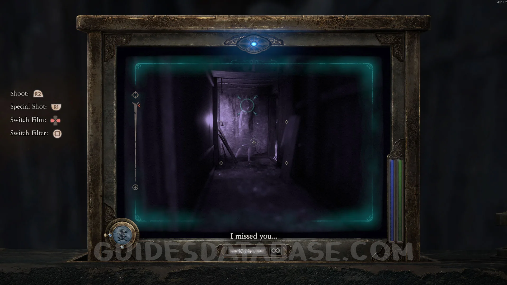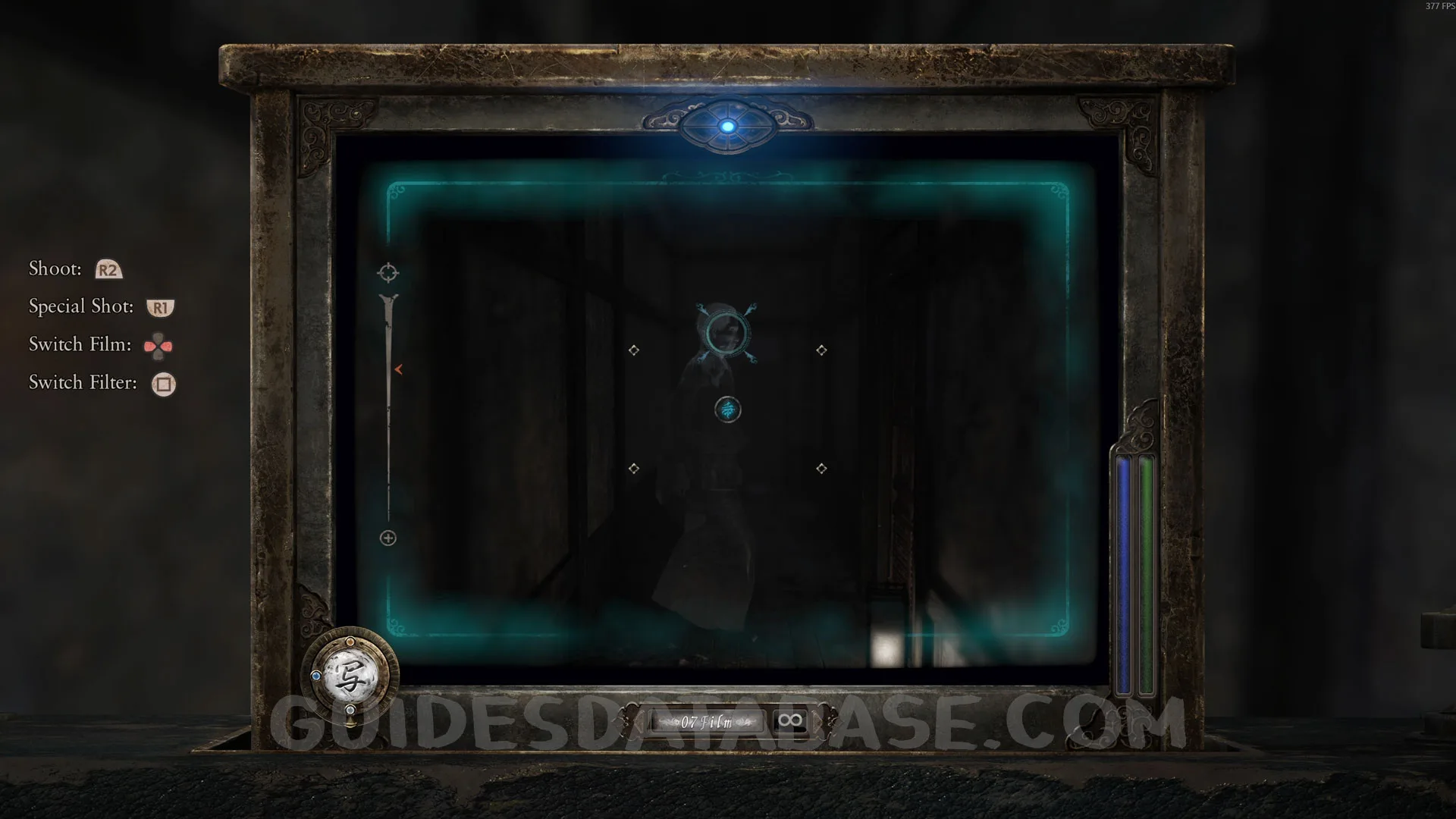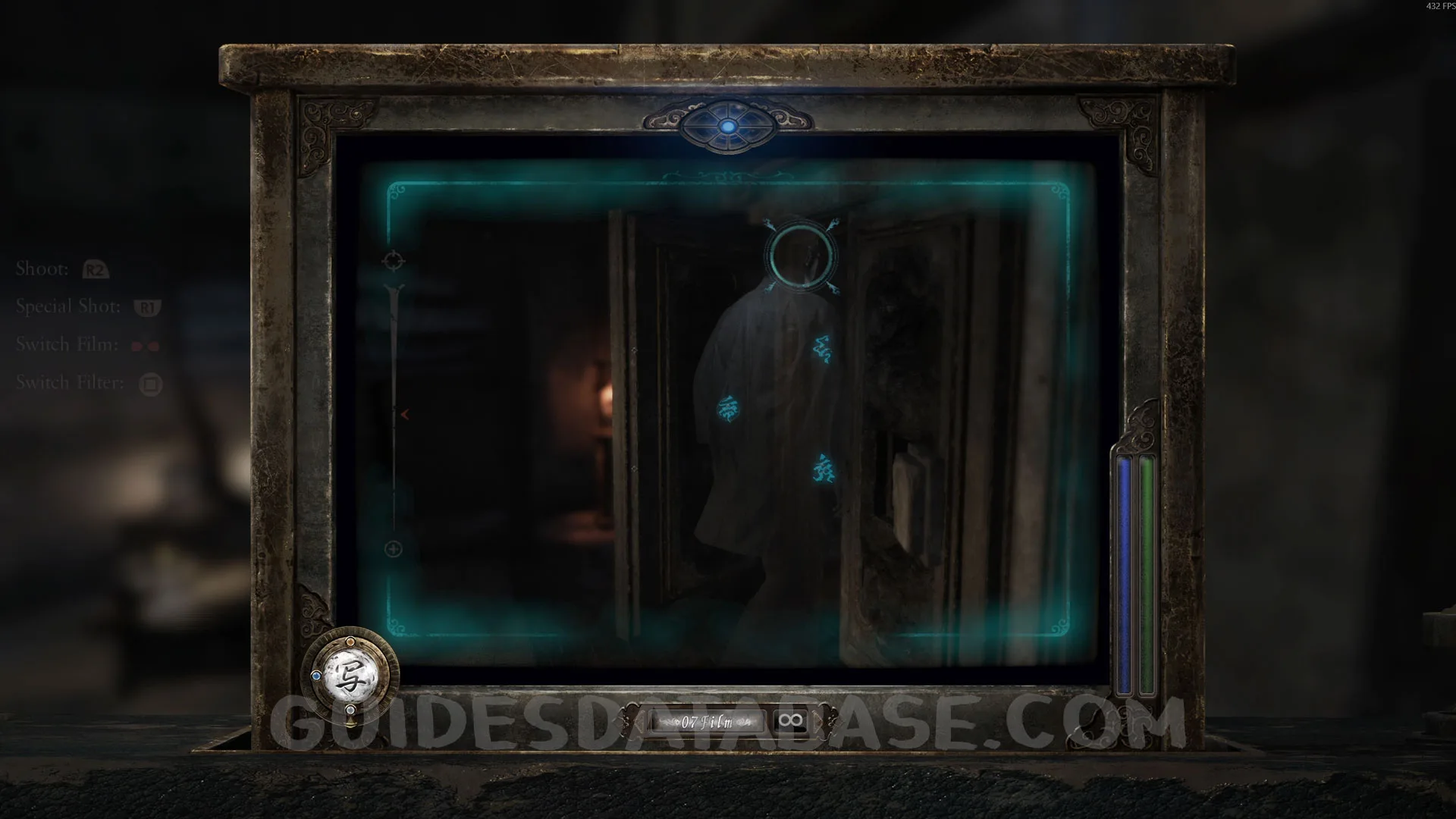 Now leave through the Save Point door and head down the hallway. A specter will appear in front of you in the hallway and walk into the room. Take a photo of it before it goes inside.