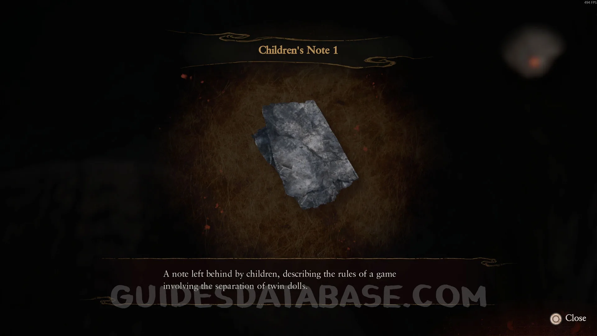 In the same area as the previous collectible, go into the hut and pick up the document. When you leave, a specter will appear beside you. Take a photo of it, and this will start Side Story #1.