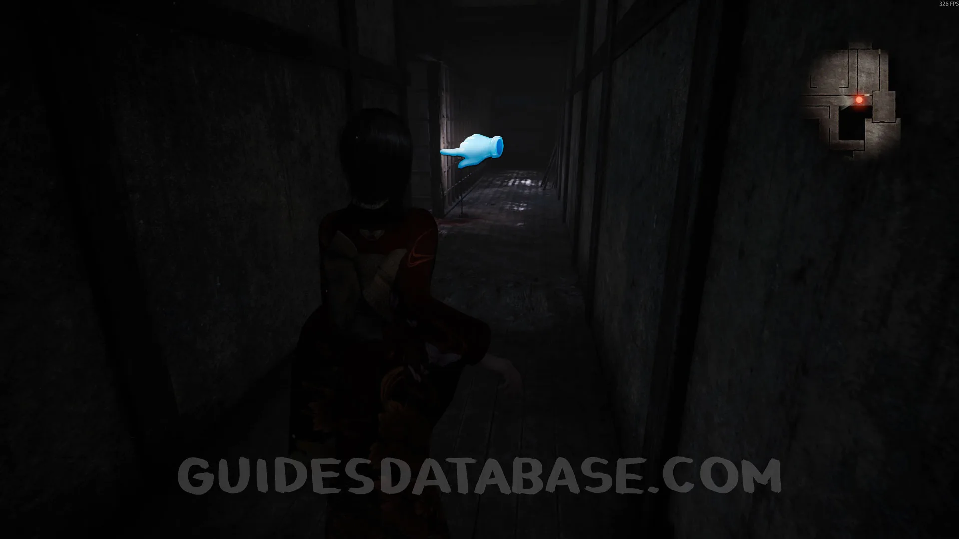 From the previous collectible, you’ll go through a tunnel and come out into a hallway. Mayu will be on the other side of the hallway. Take a picture of her before both of you step on the pressure plate.