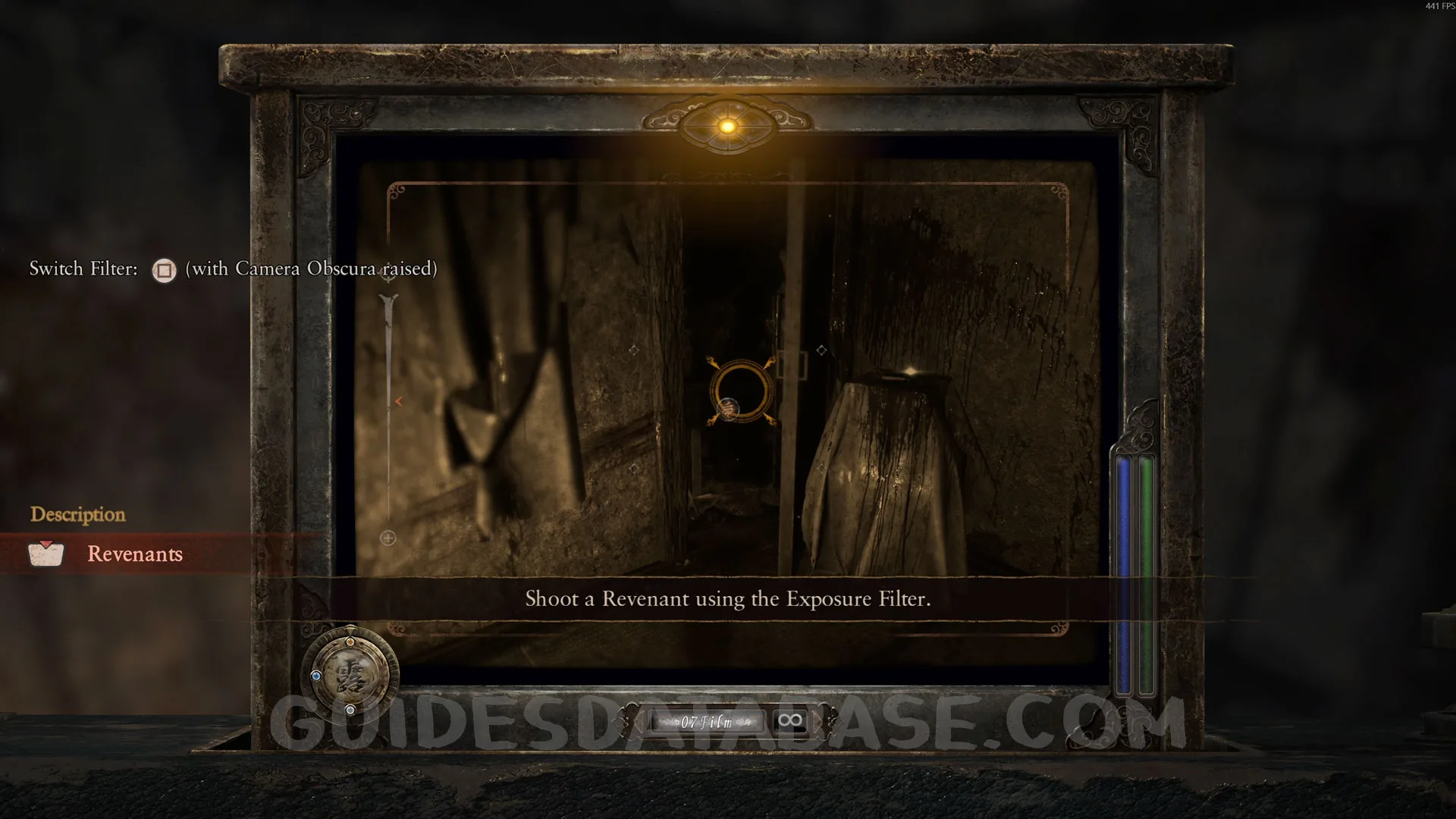 After using the Exposure Filter to open the passage in the wall, go to the closet, equip the Exposure Filter on the camera, and take a photo to reveal this revenant.