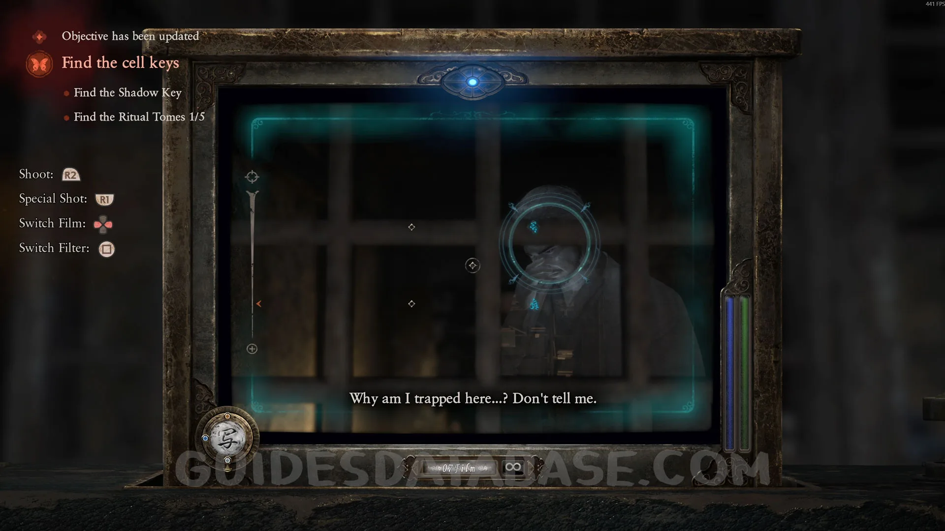 After using the Shadow and Light Keys to open the cell, go to the back of the cell to find the specter.