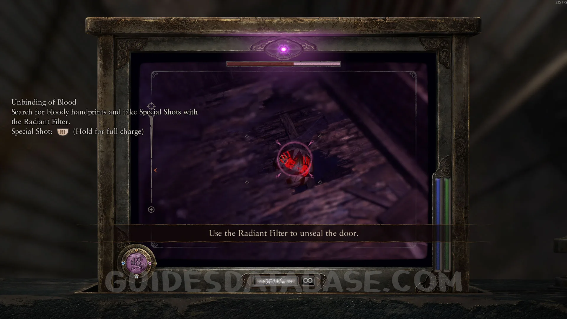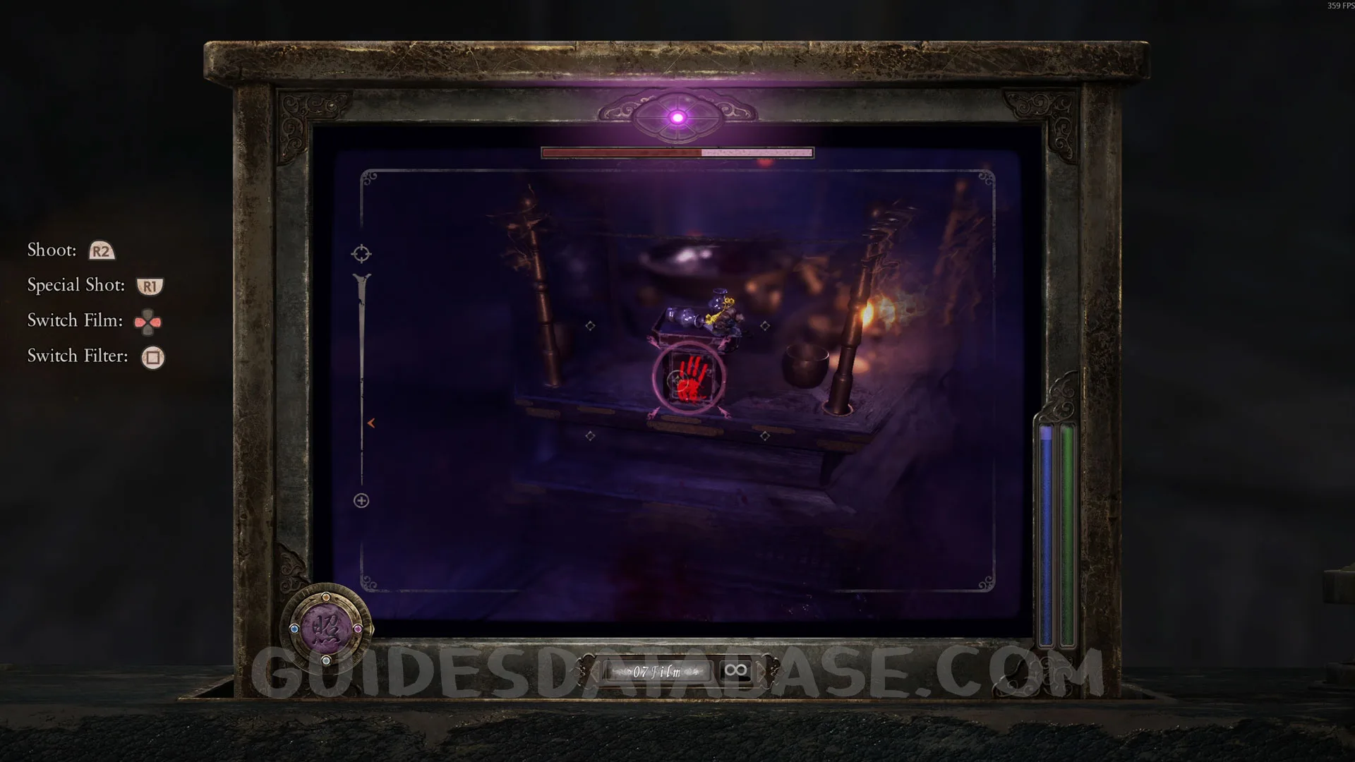 From the previous specter, follow the hallway to the end and go upstairs. Head to the hole where you found one of the earlier specters in this chapter, and you’ll see a ball. Use the Radiant Filter on it.