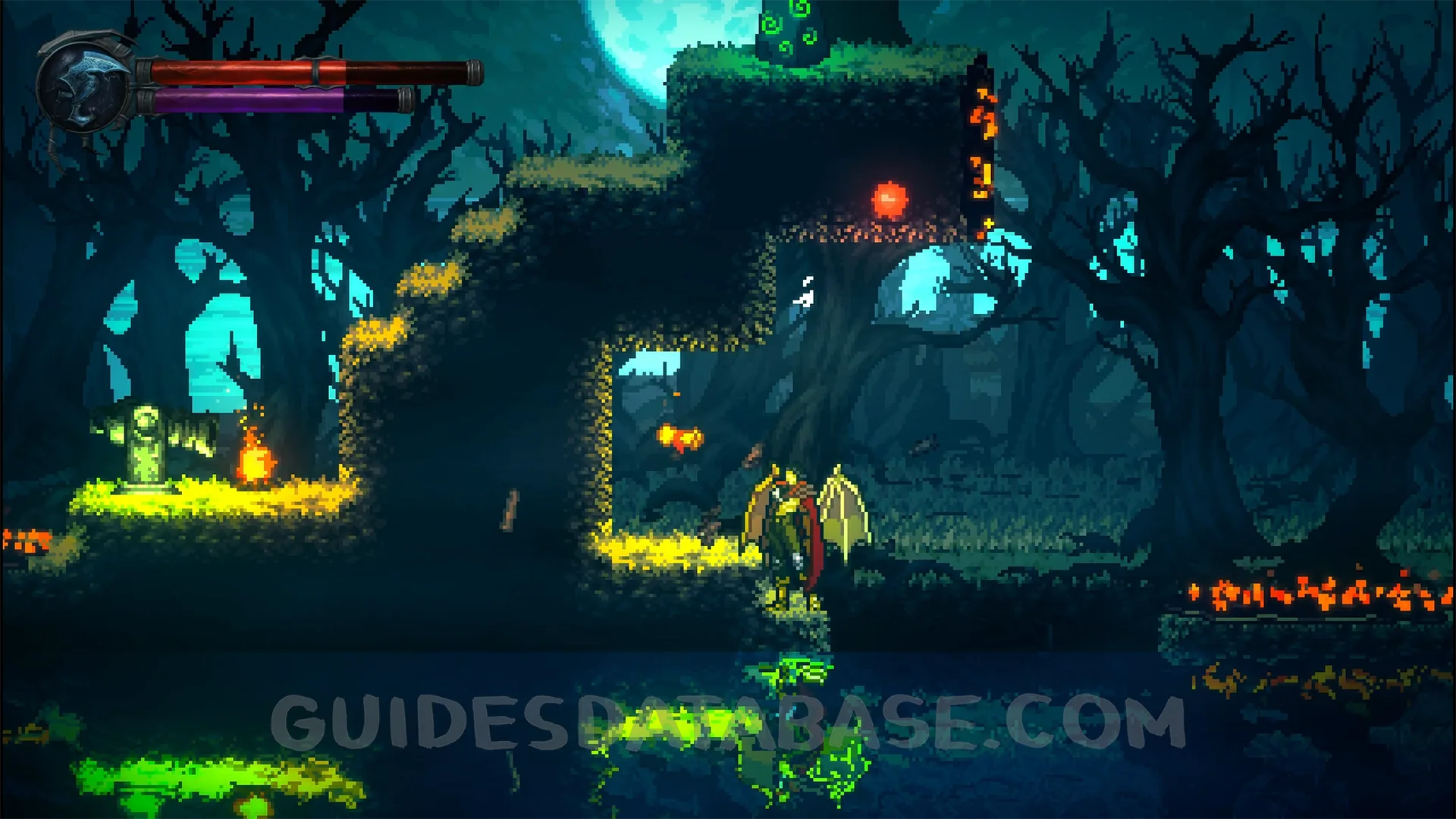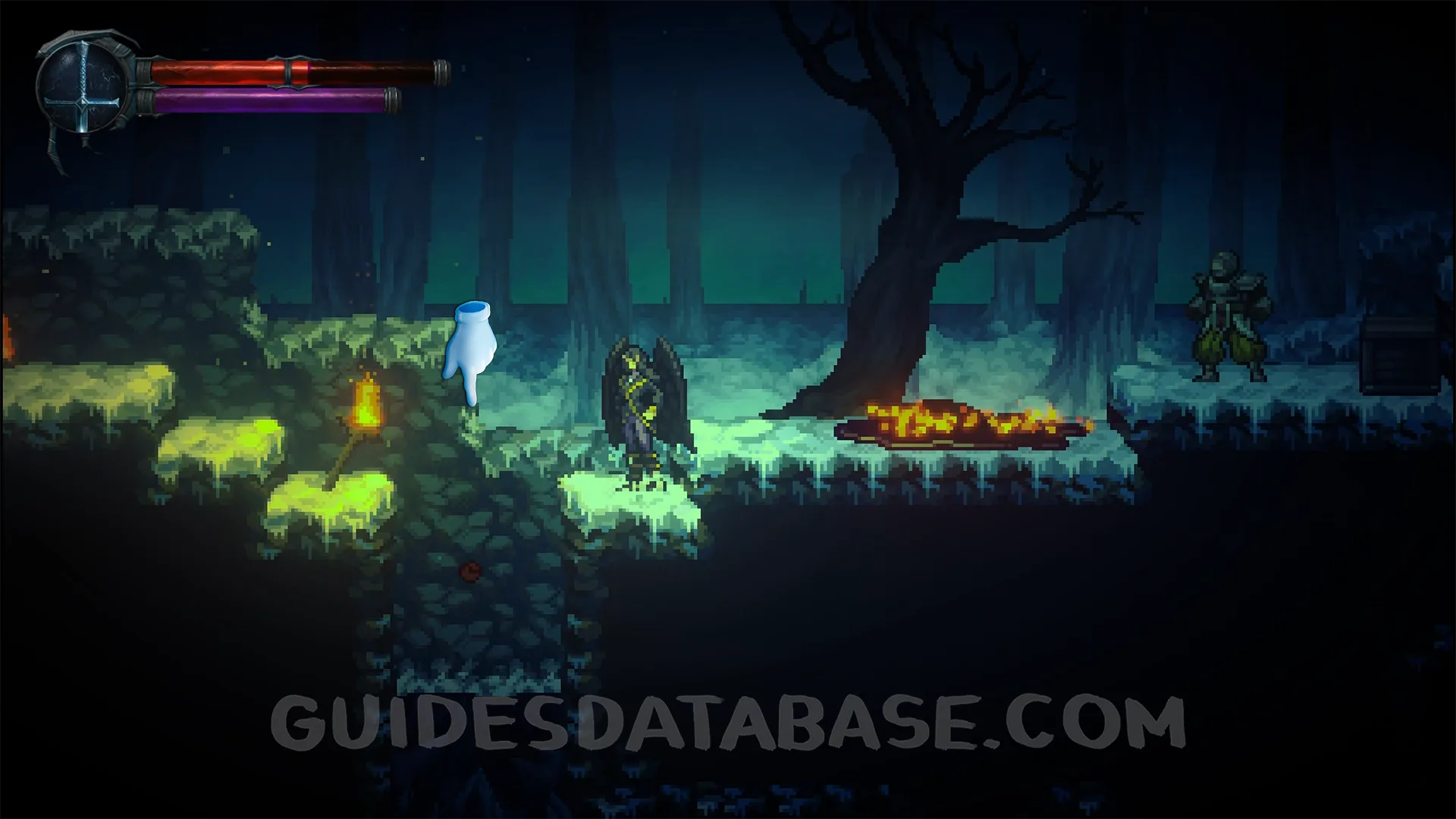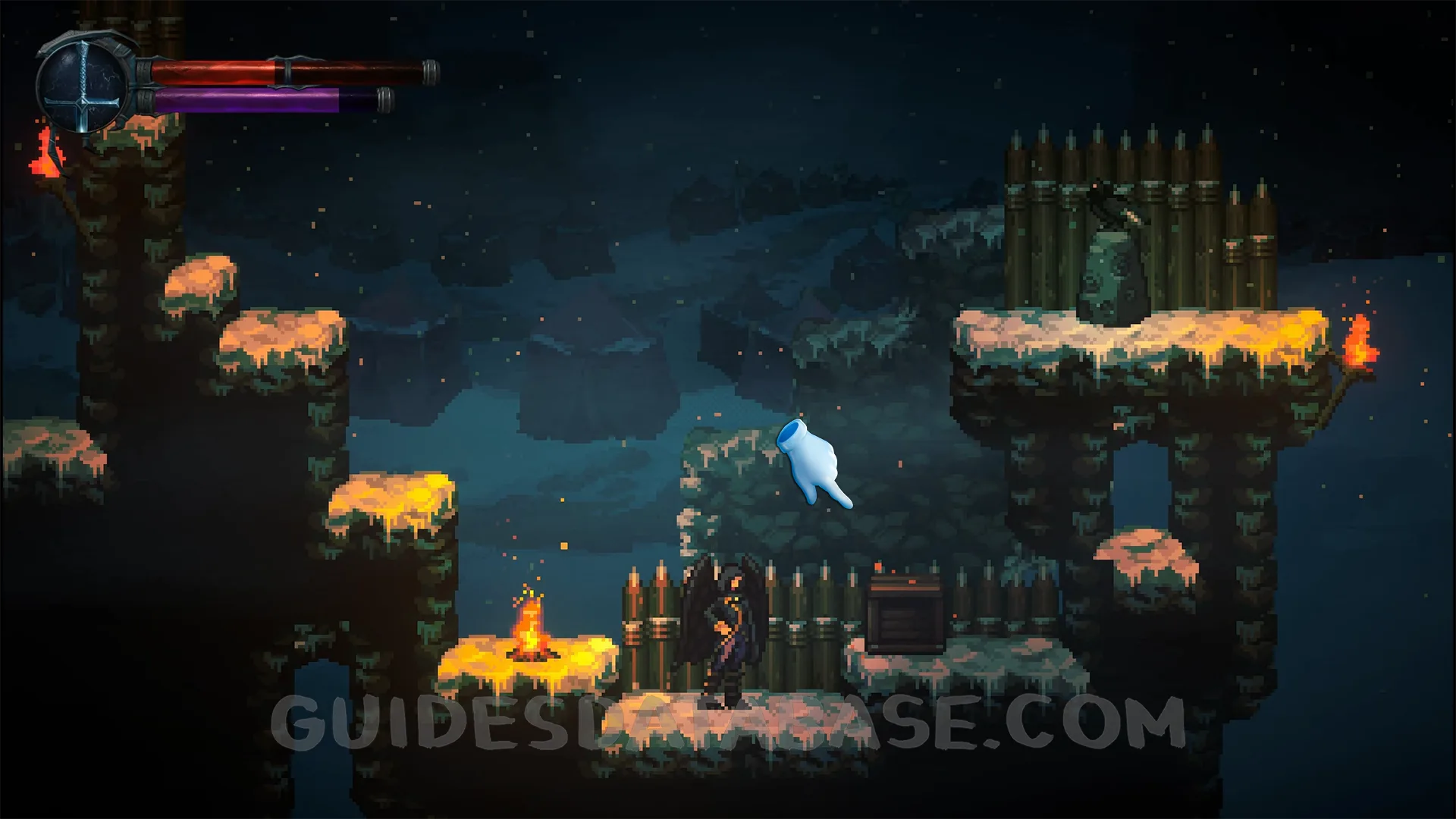 Stage 2: After defeating 3 horned enemies, once you reach the checkpoint, drop into the pit and head left.