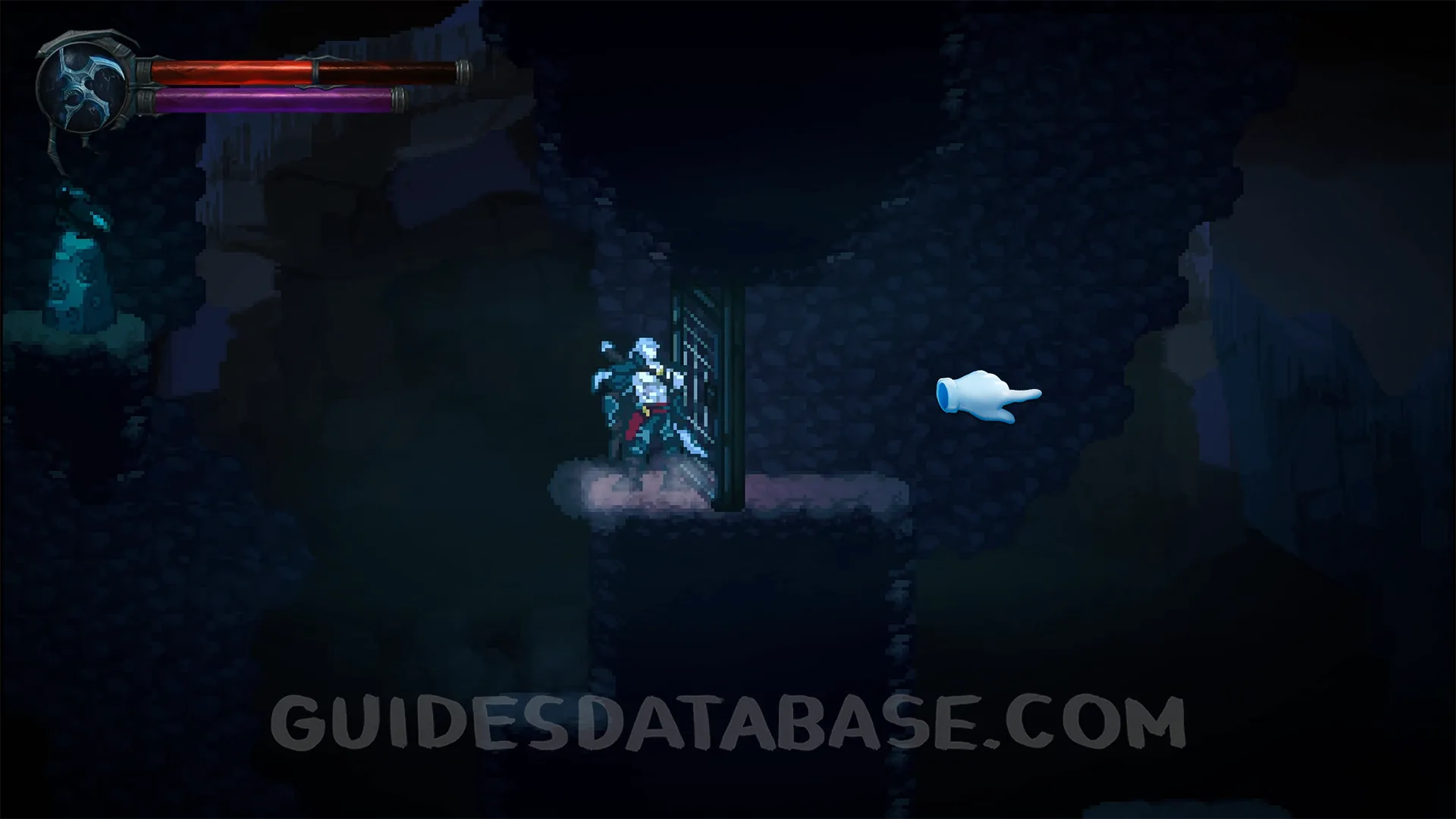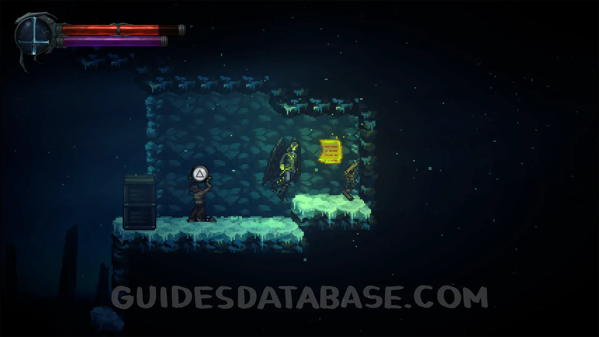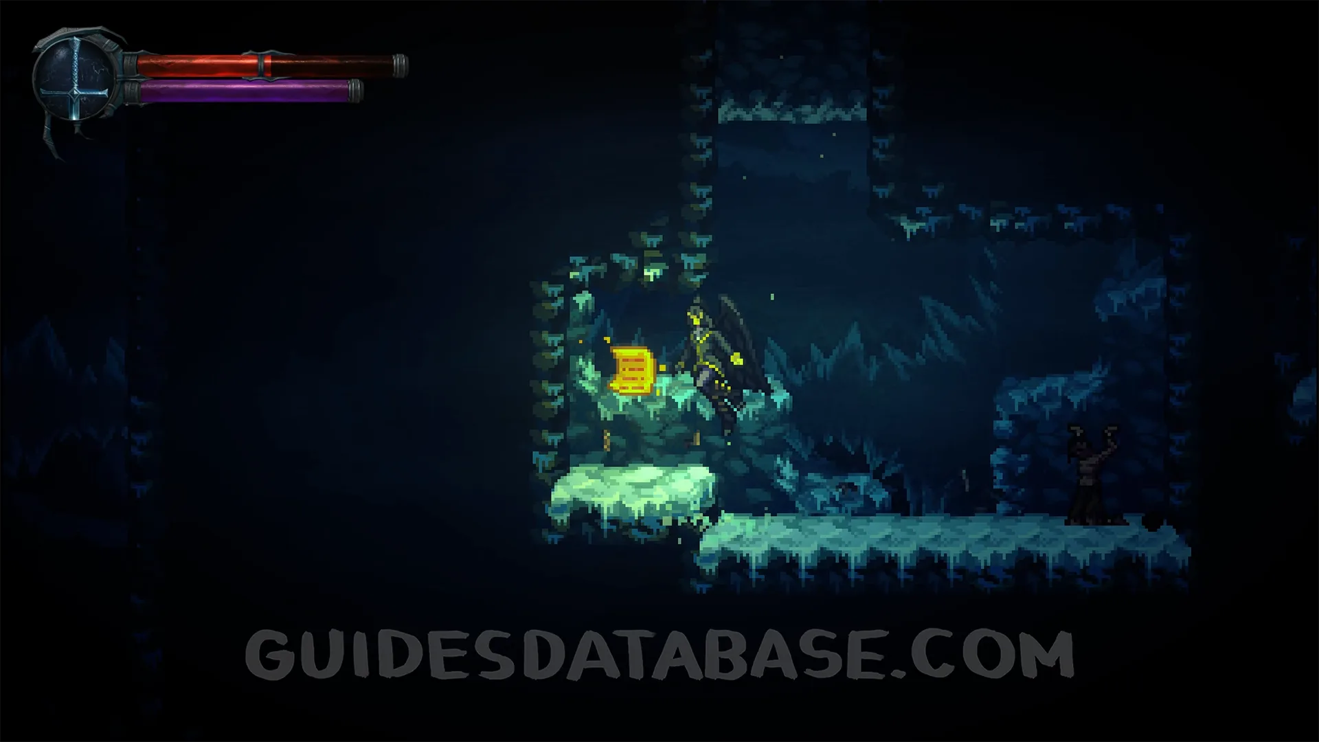 Stage 1: A bit further ahead, you will come across a section with a pit, go over it and keep moving forward, it will be inside a wall at the end next to a shackled NPC.