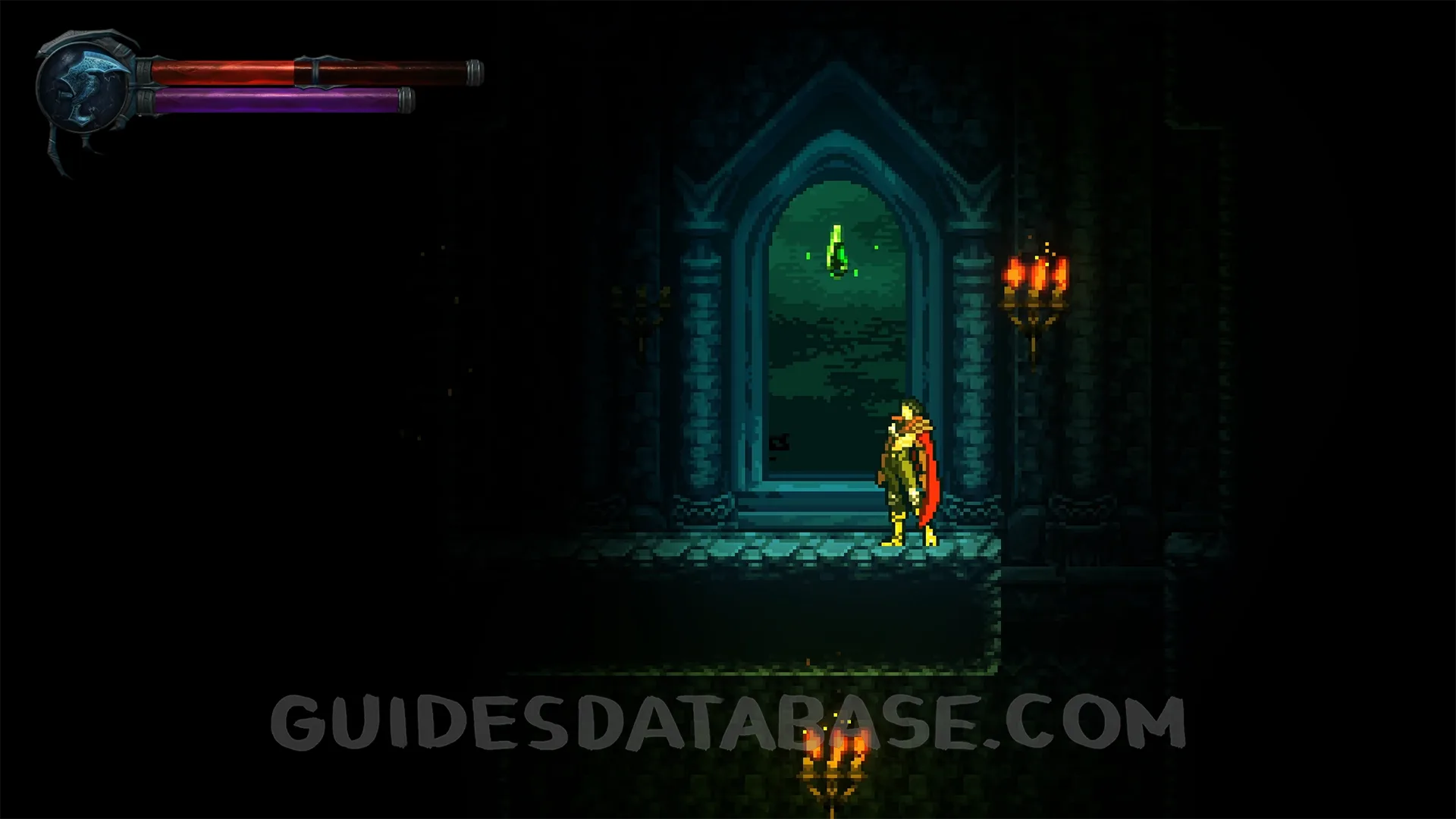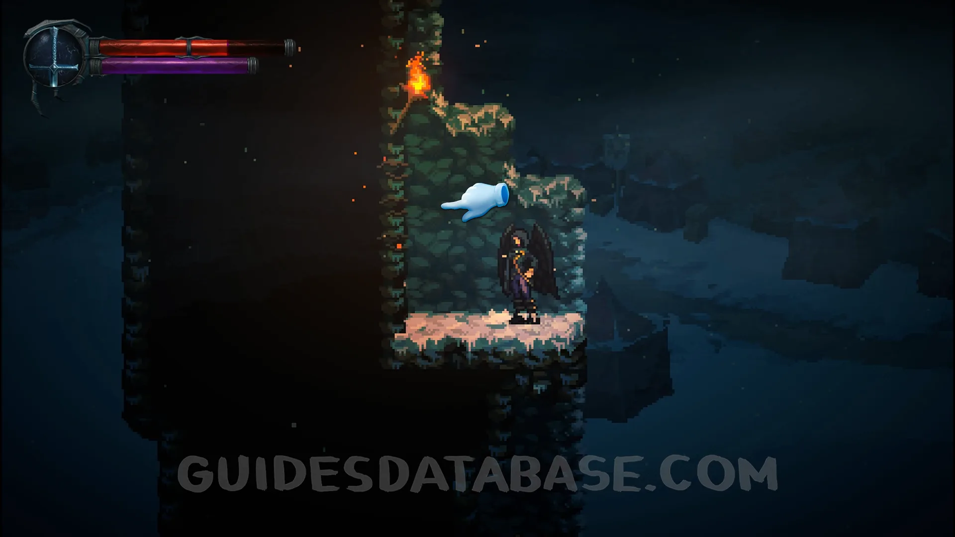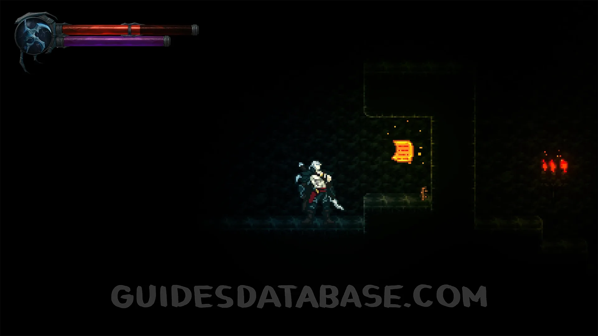 Stage 1: A bit further ahead, you will come across a section with a pit, go over it and keep moving forward, it will be inside a wall at the end next to a shackled NPC.
