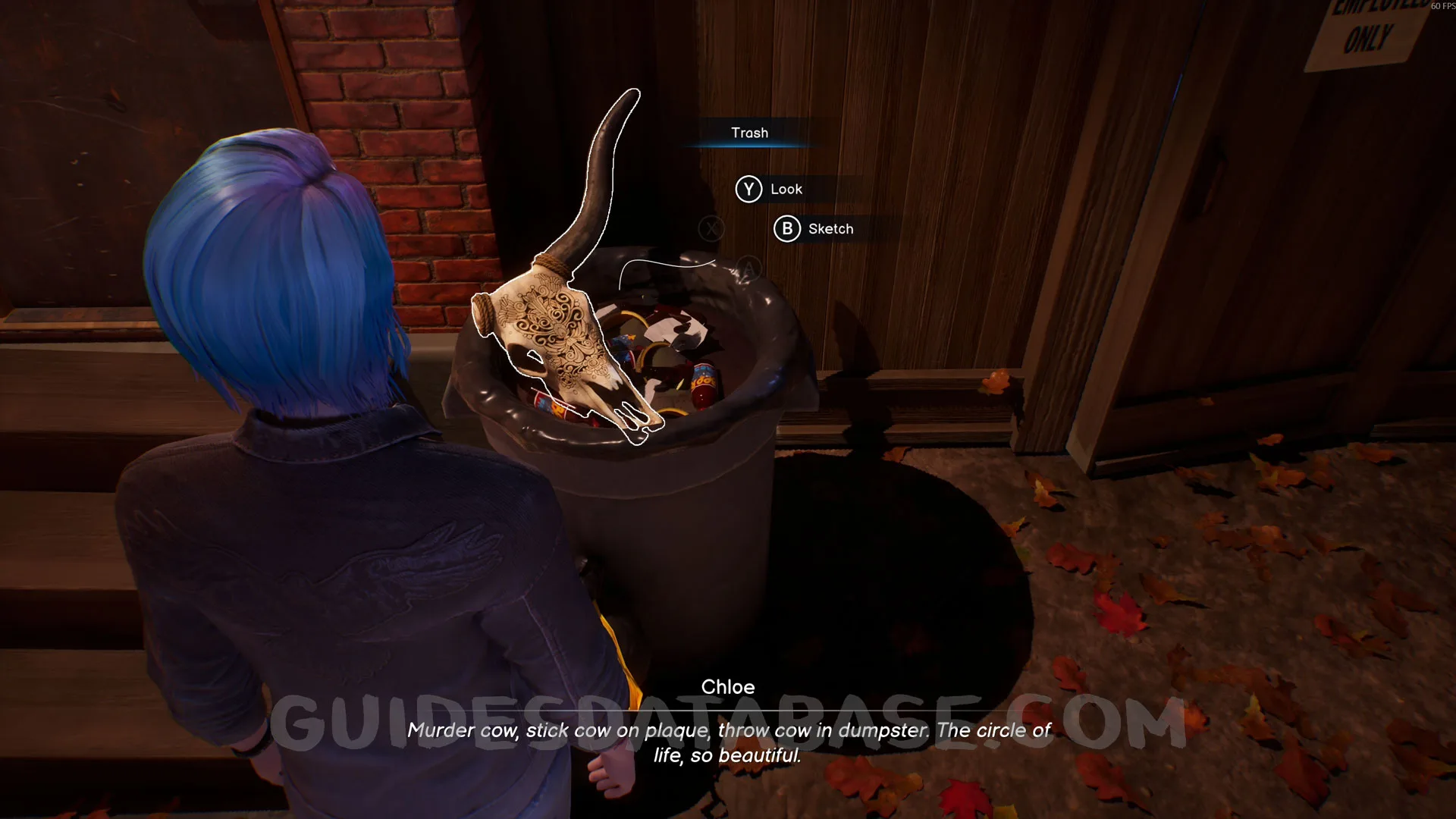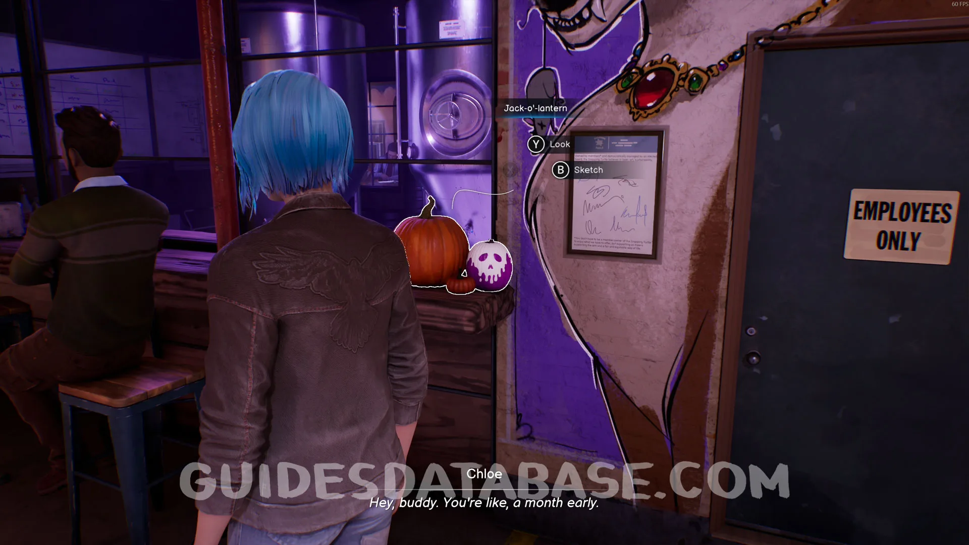 After taking control of Chloe, interact with the pumpkins to make a sketch.
