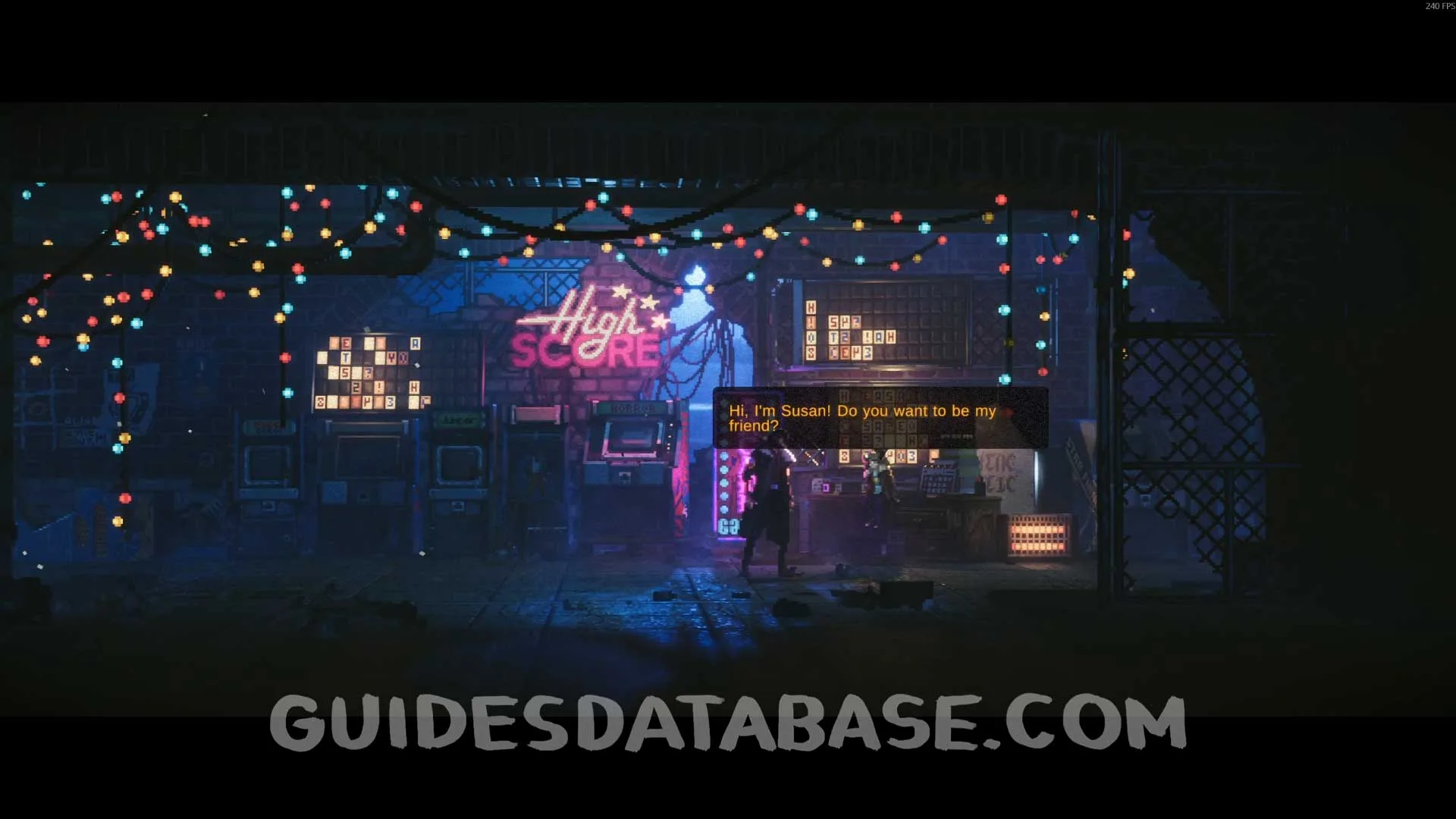 GUIDESDATABASE.COMReturn to Susan inside the safe zone and talk to her again. She will repair the arcade game. Your objective now is to beat the high score of the mini game. Simply score more than 5000 points and talk to Susan again.