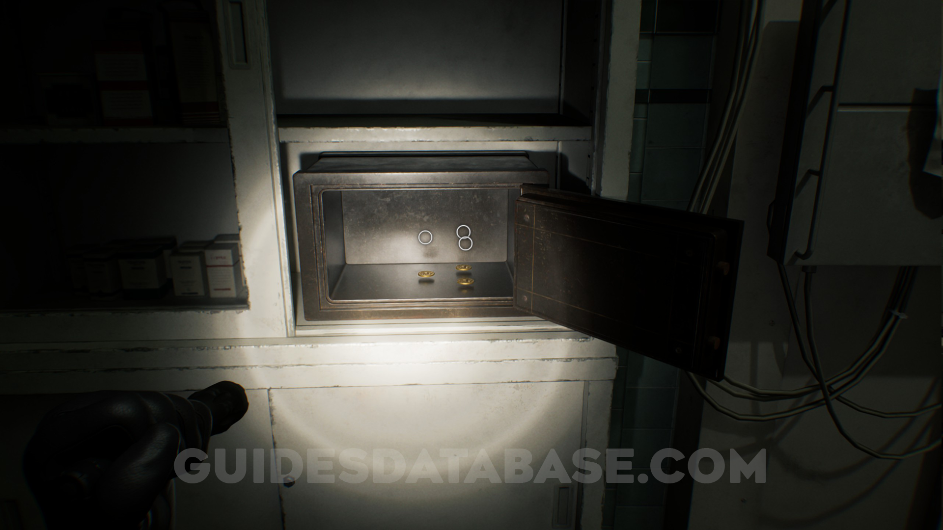 Go to the Examination Room and you will find this Safe in the cabinet. Use the combination to open it and obtain these coins.