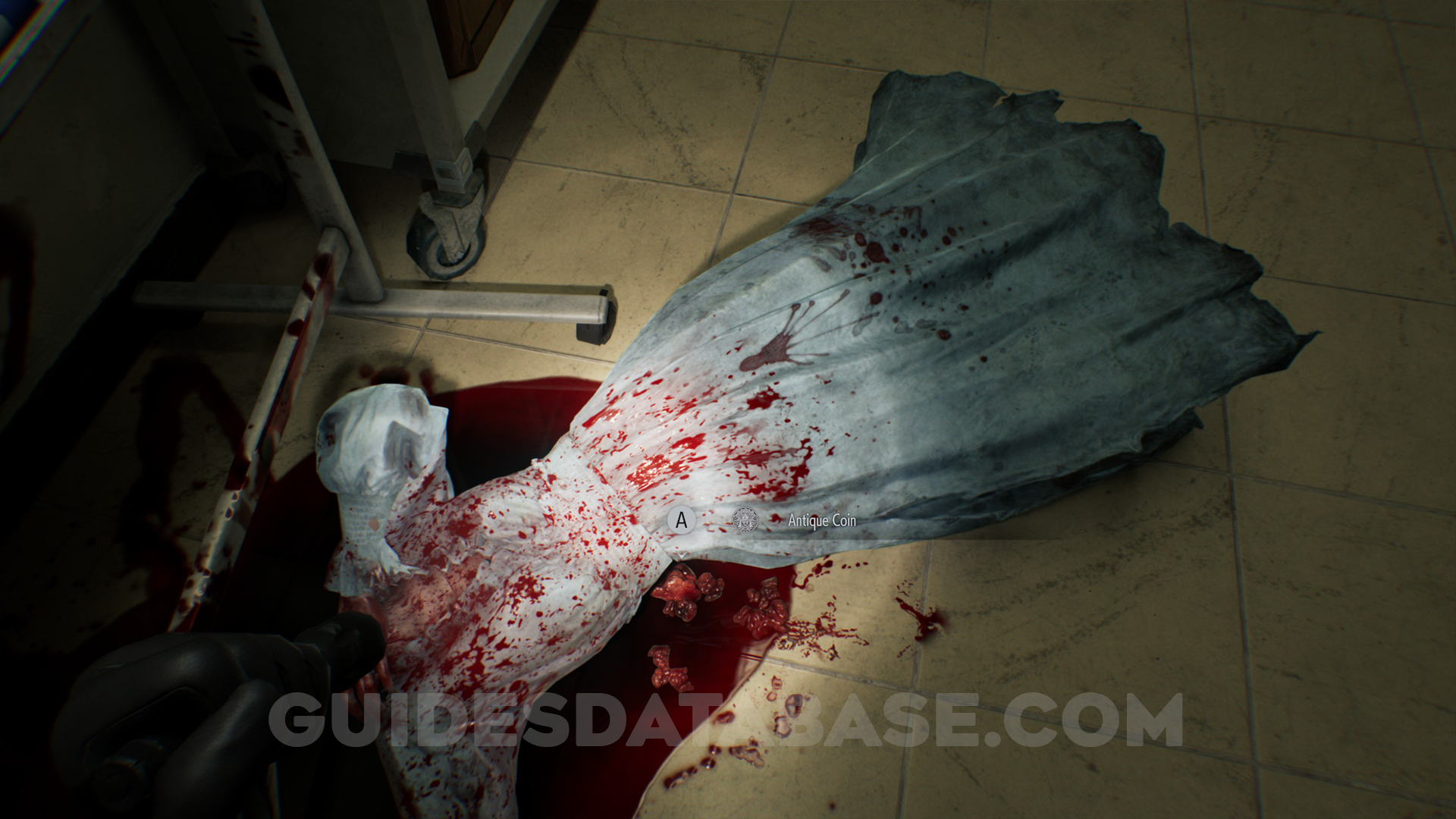 After leaving the Blood Lab, go down the hallway and you’ll see a vase on top of a counter. Break it to reveal this coin.
