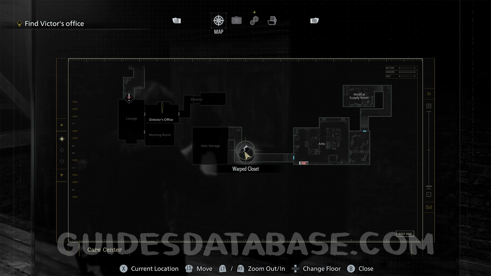 Attic: You find this in the back of the room, opposite the cupboard you push to progress.