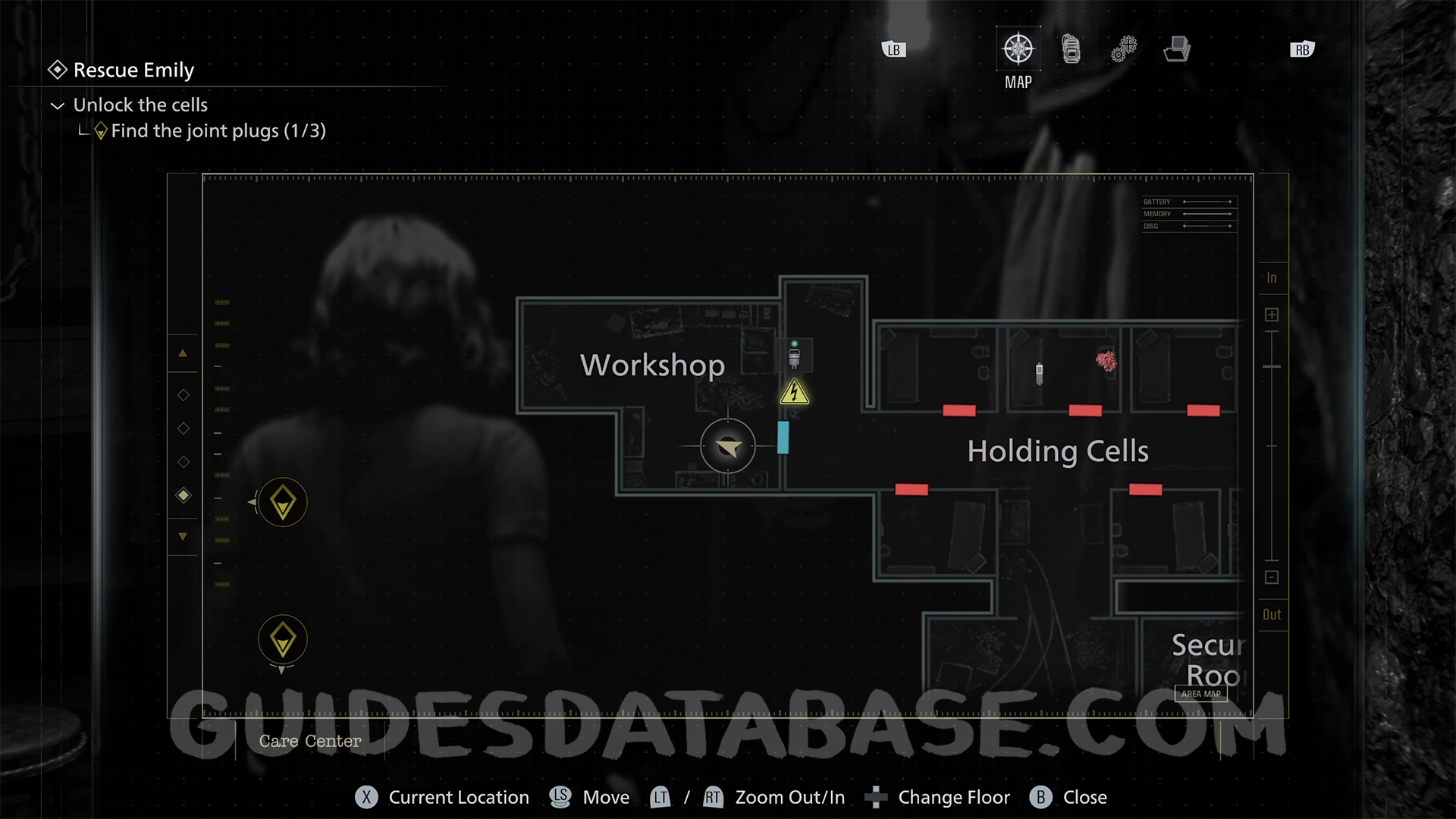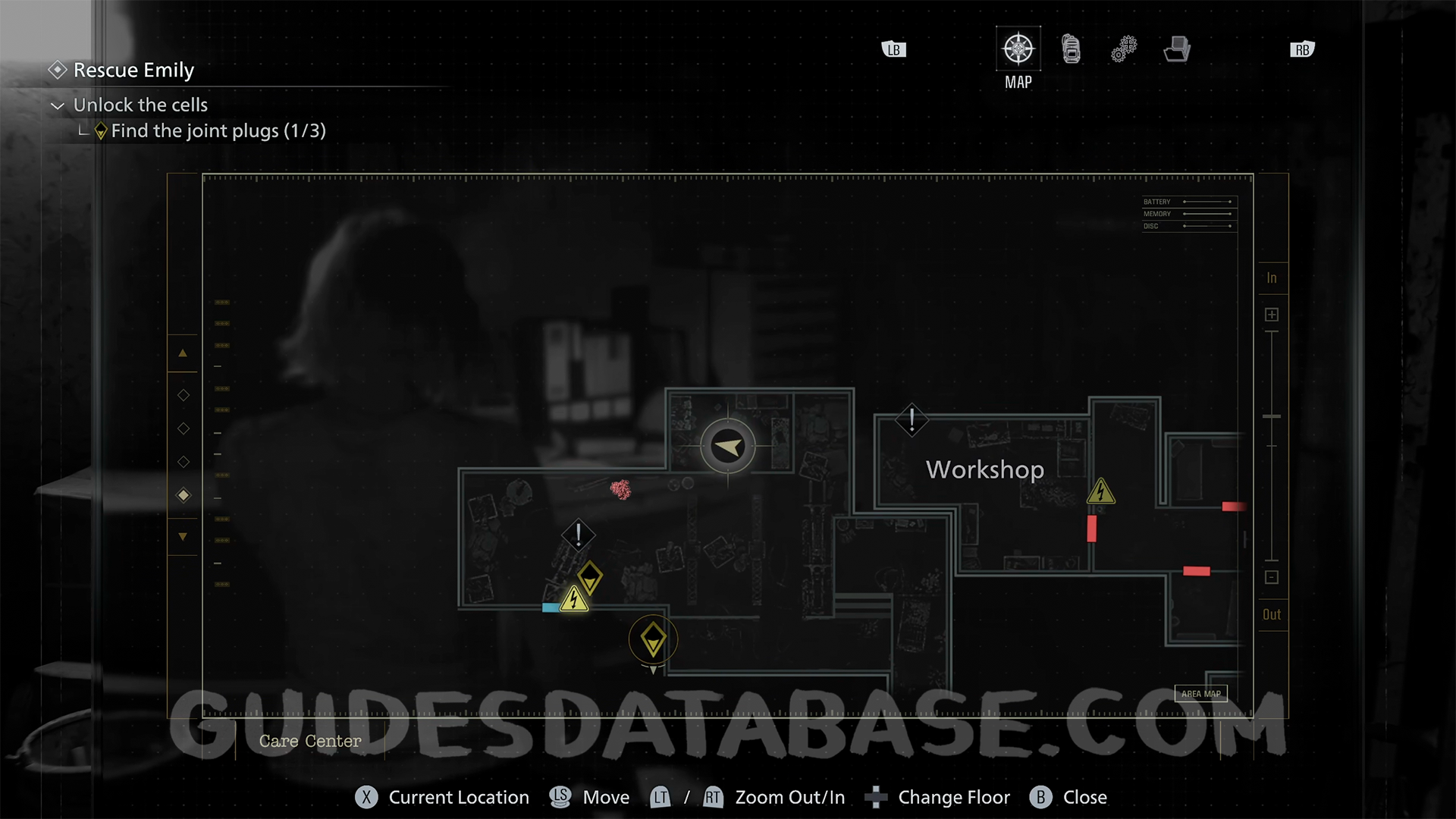 Workshop: Once you grab the Joint Plug from the Holding Cells corridor, turn back and head to the opposite end of the hall. Enter the Workshop and check the workbench.
