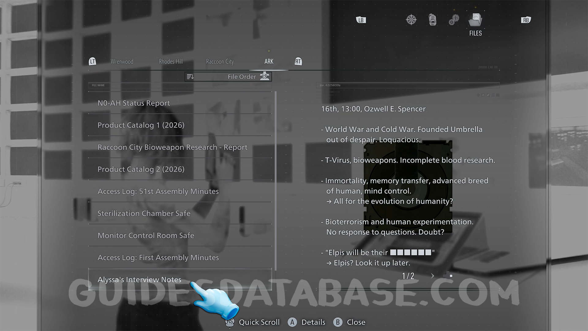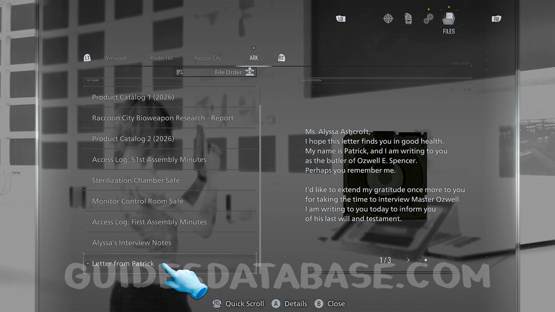 This guide will show you the location of all filesin Resident Evil Requiem. Collecting all of them will unlock the Case Closed trophy/achievement.
