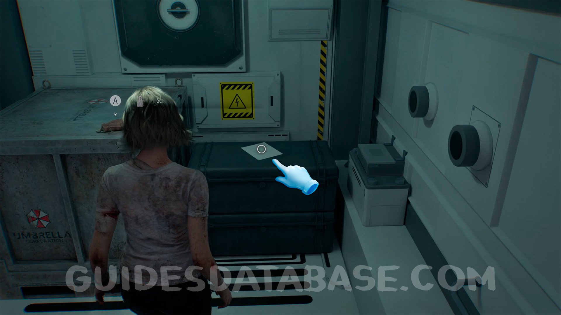 Before going into Bioweapon Repository 05, On top of a box next to a green herb.