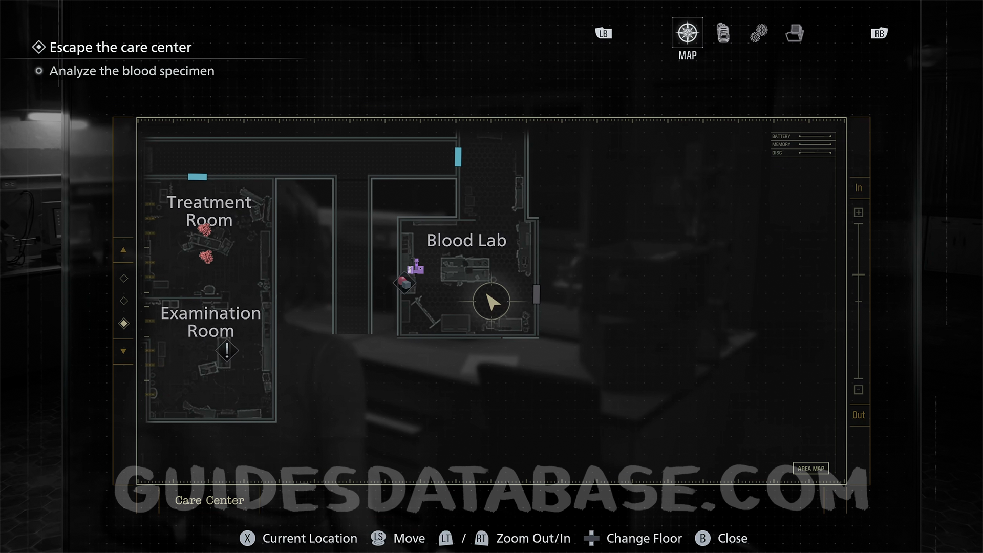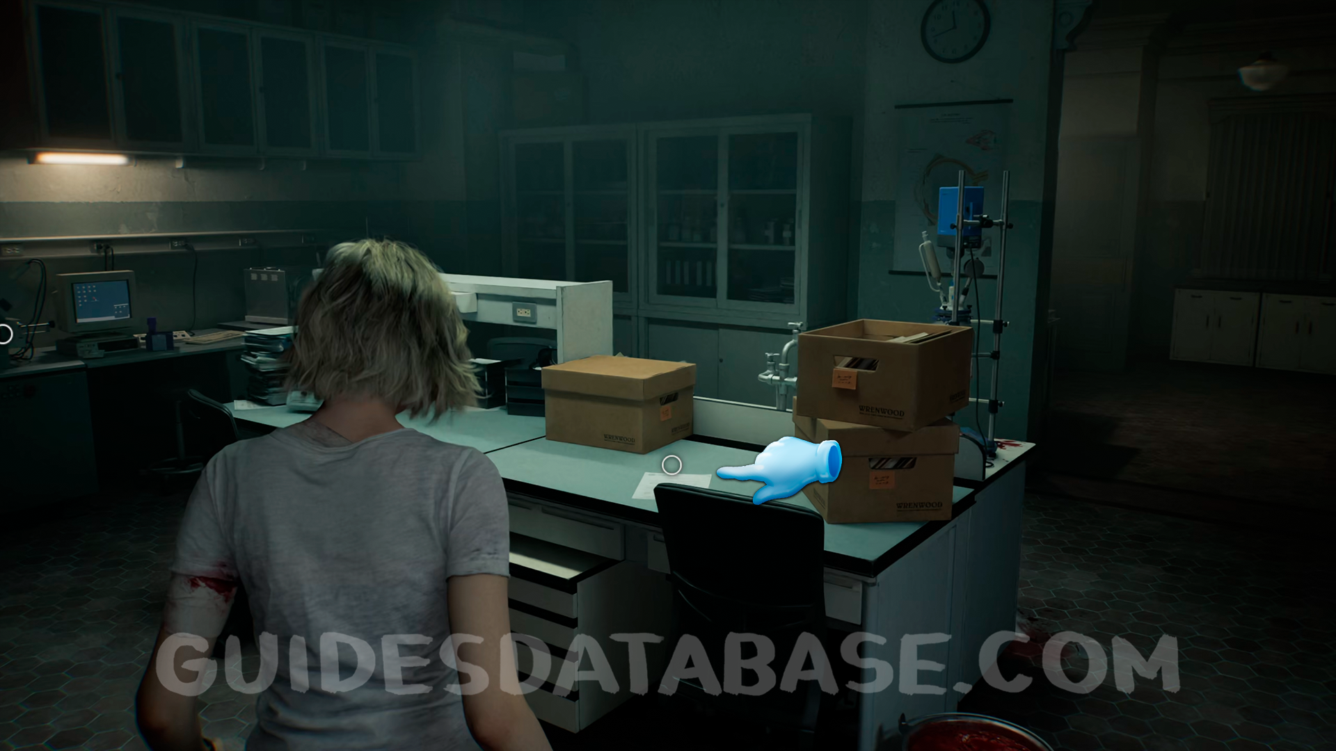 Blood Lab: Once you unlock the East Wing from the Central Hall using the key, proceed through the Examination Room. At the far end of the resulting hallway, step into the Blood Lab and check the table to collect it.