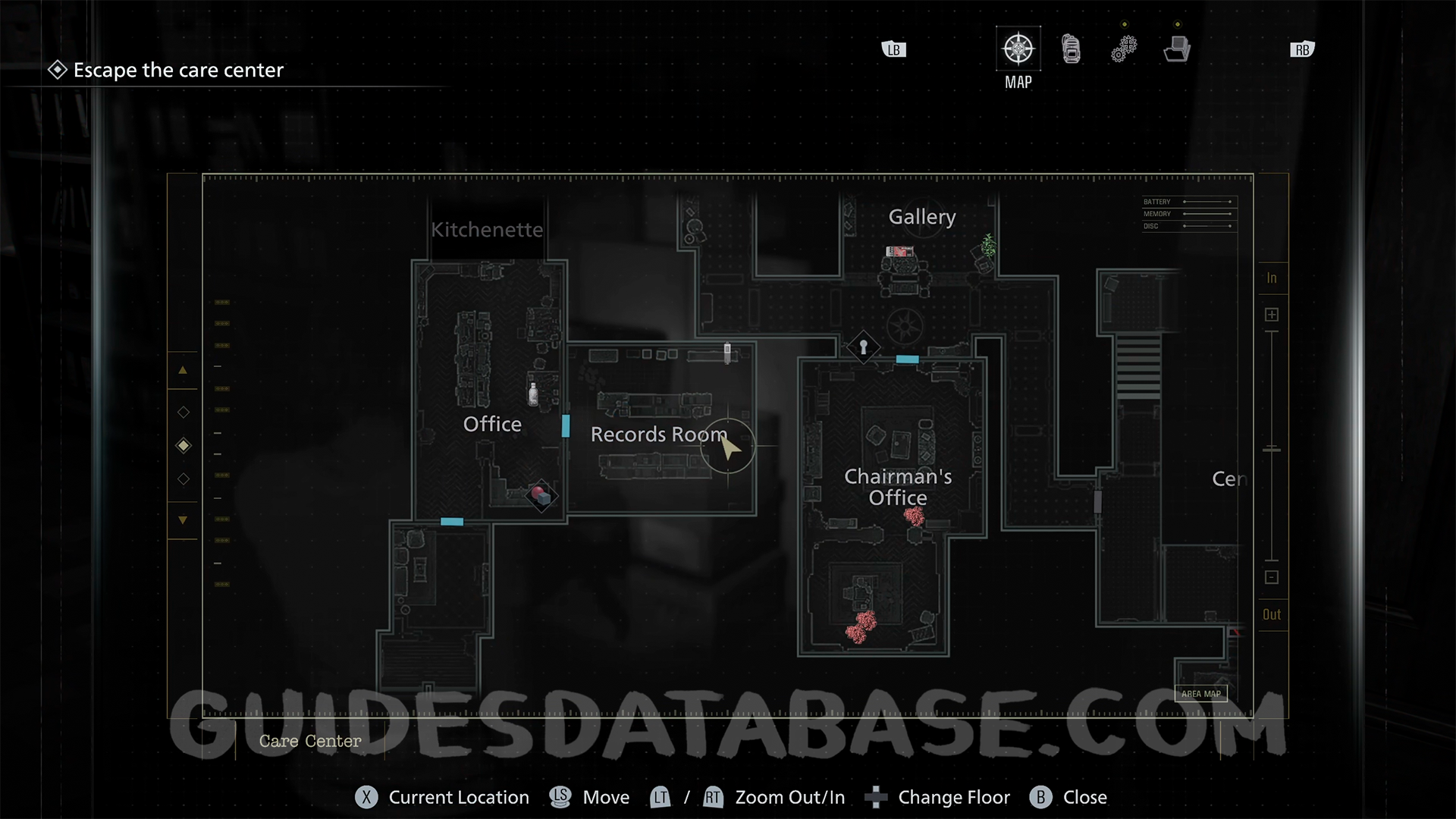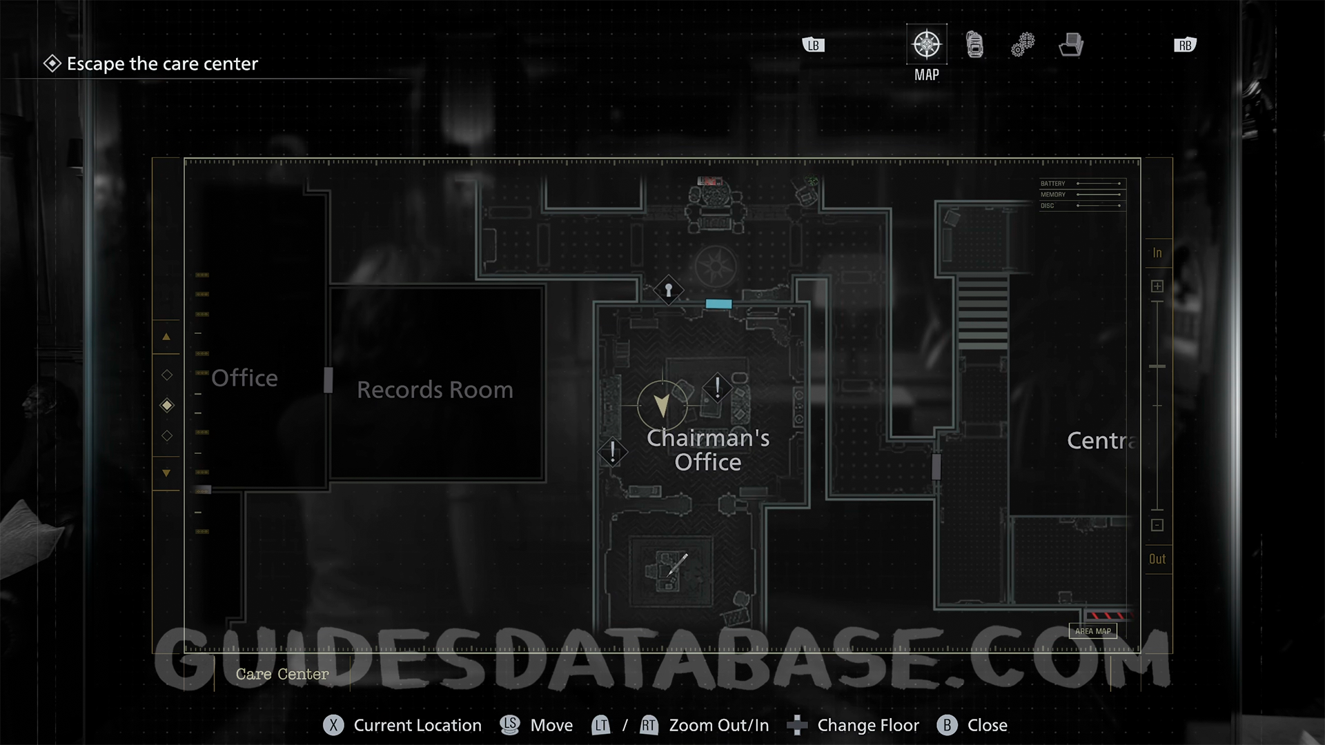 Chairman’s Office: Head into the backroom of the Chairman’s Office, where you will encounter a zombie, and check inside the trash bin.