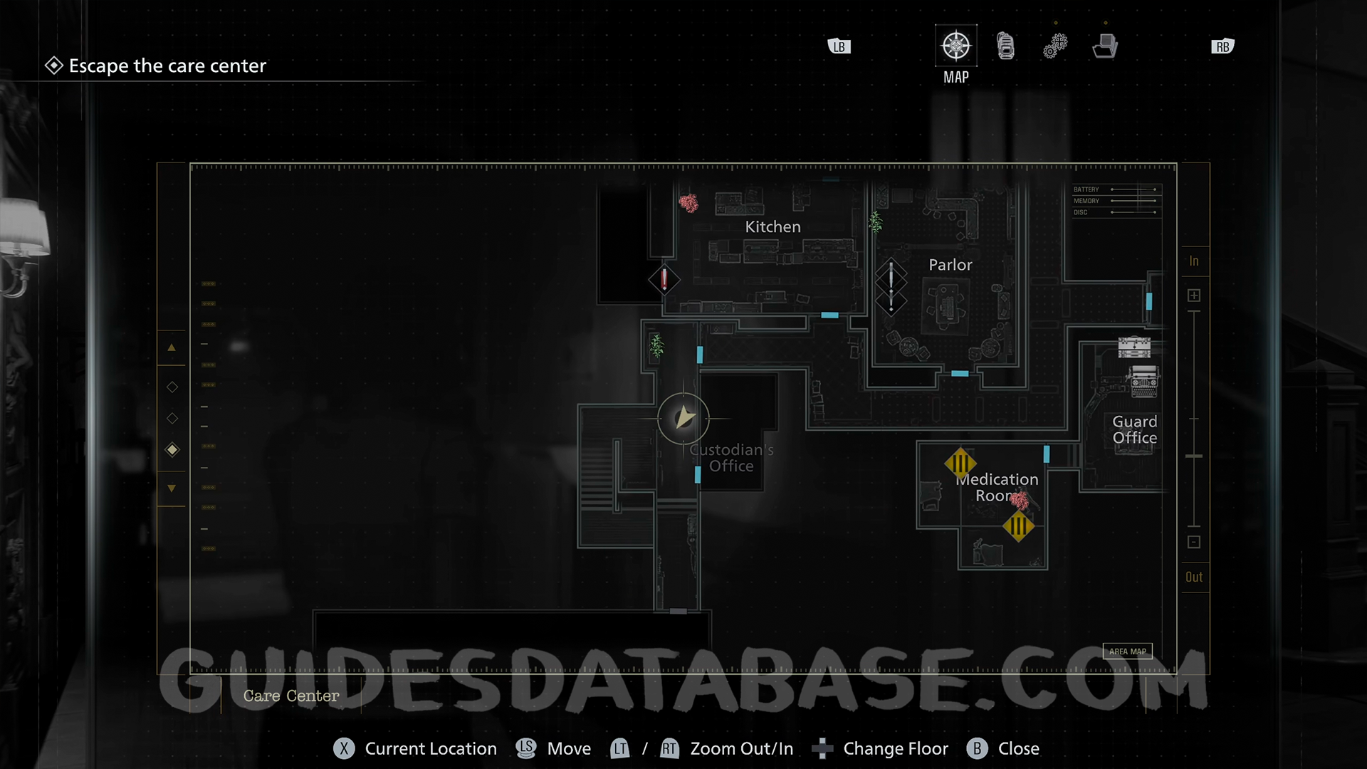 Custodian’s Office: Head to the West Wing and navigate the corridor south of the Kitchen. Use the Level 1 ID Wristband to unlock the gate, and as you enter the following hallway, look for it on a whiteboard to your right.
