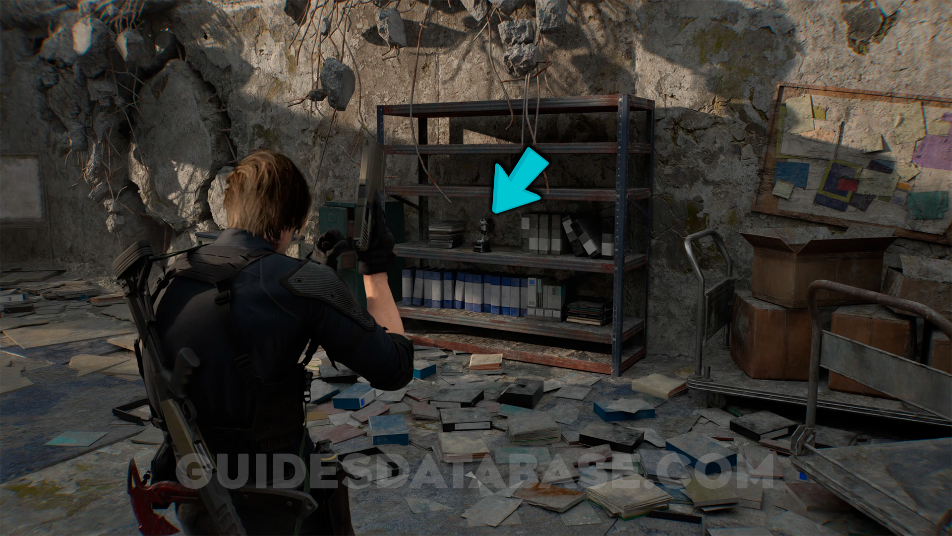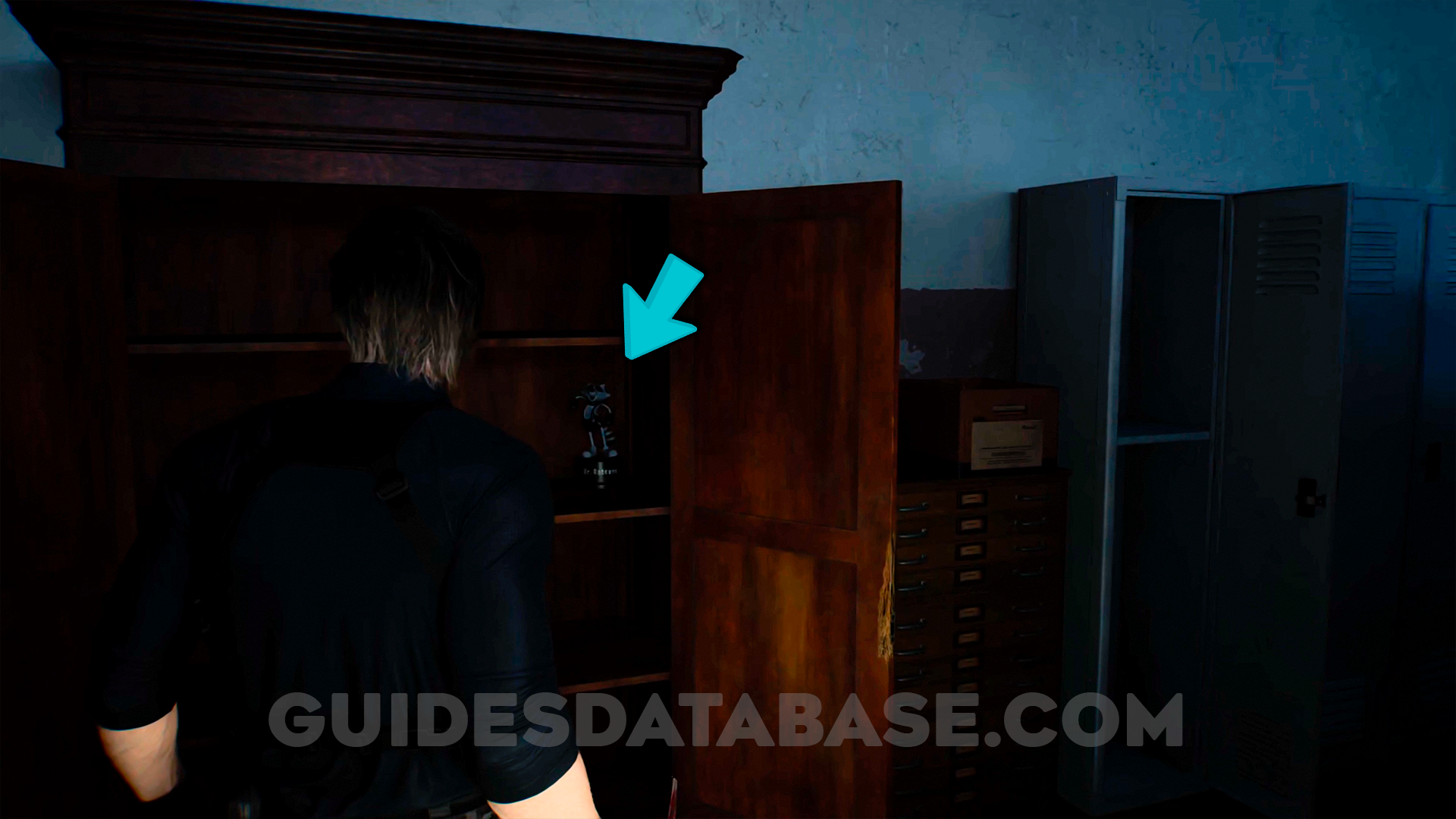 Inside a cabinet that only Leon can open in the records room.