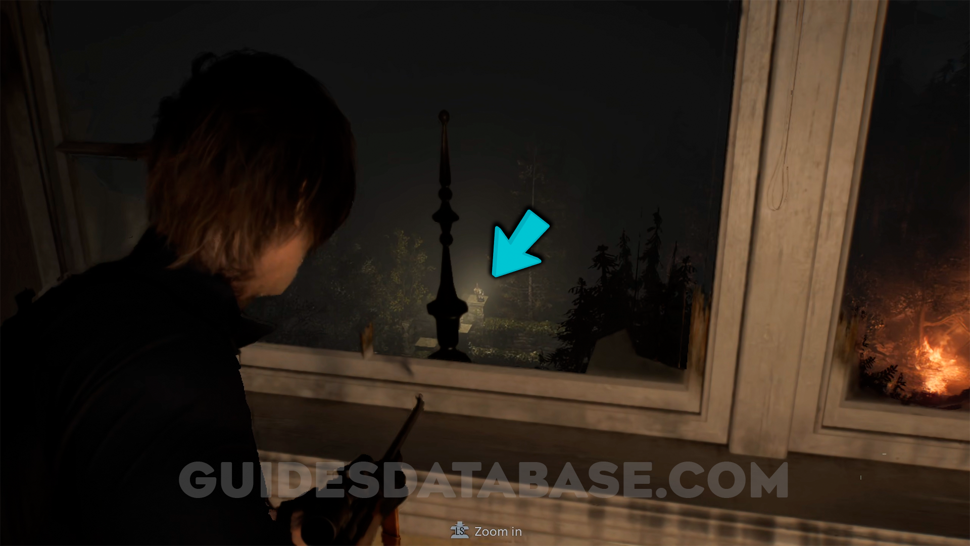 After the helicopter scene, when you return to playing as Leon, go up the stairs and look to the left. It is located in the garden near a lamp.