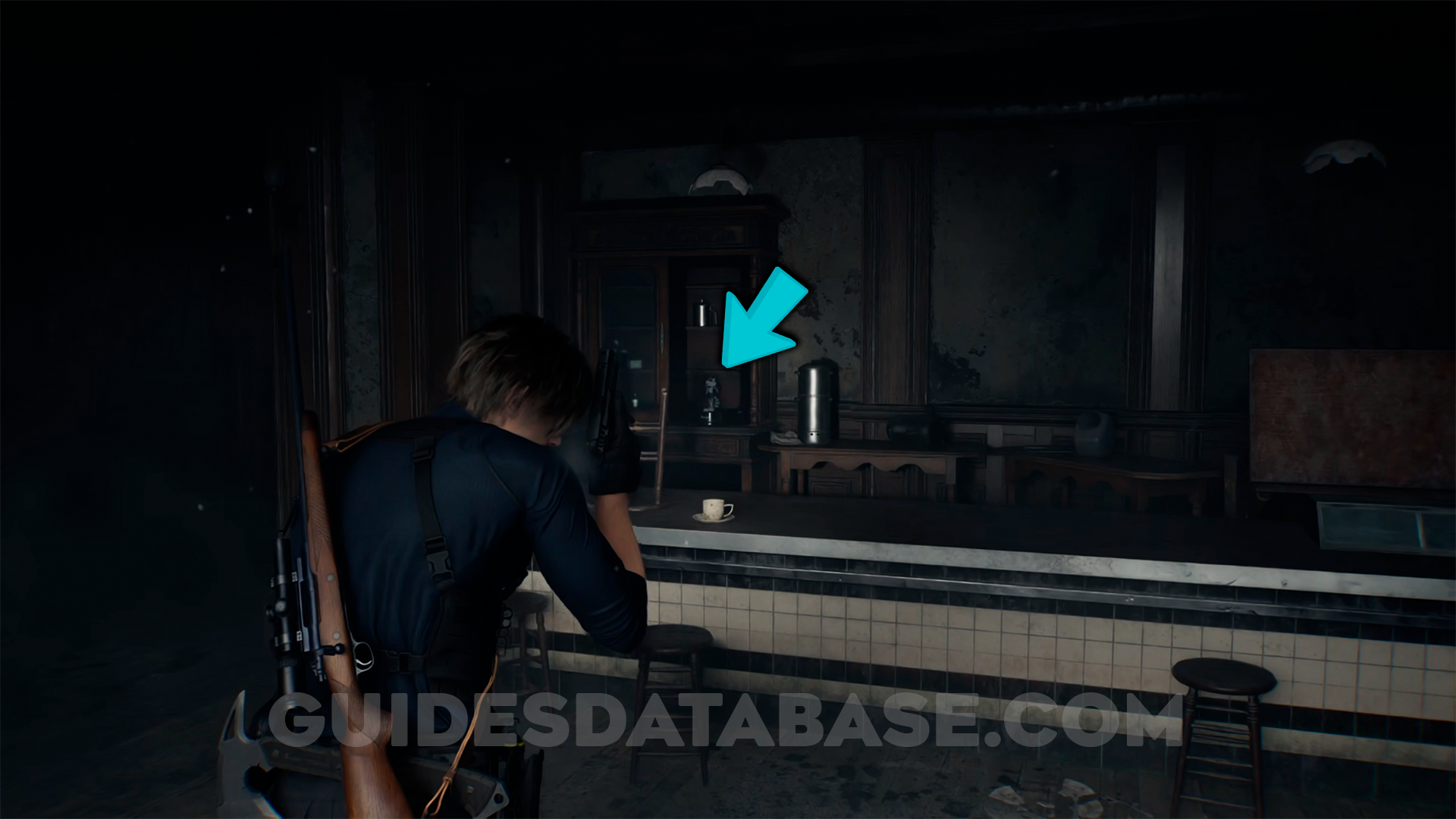 As soon as you arrive in East Raccoon City, inside Café Oasis.