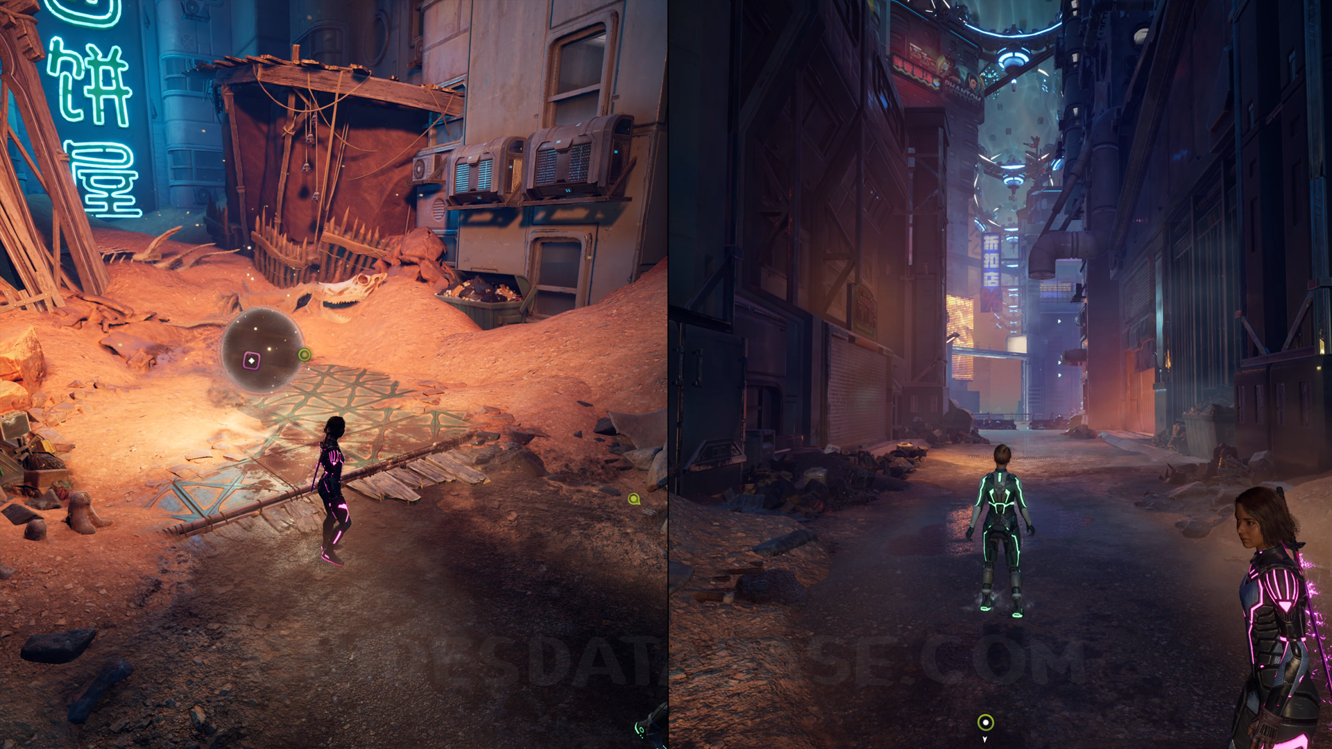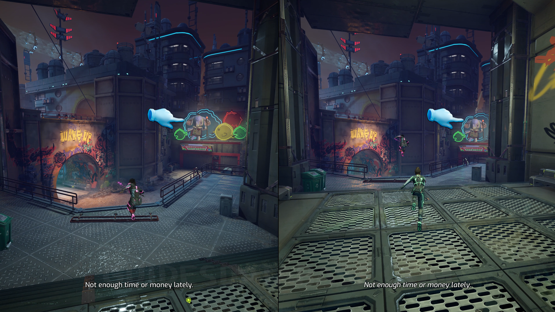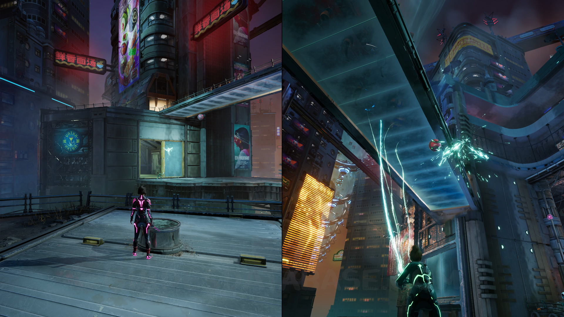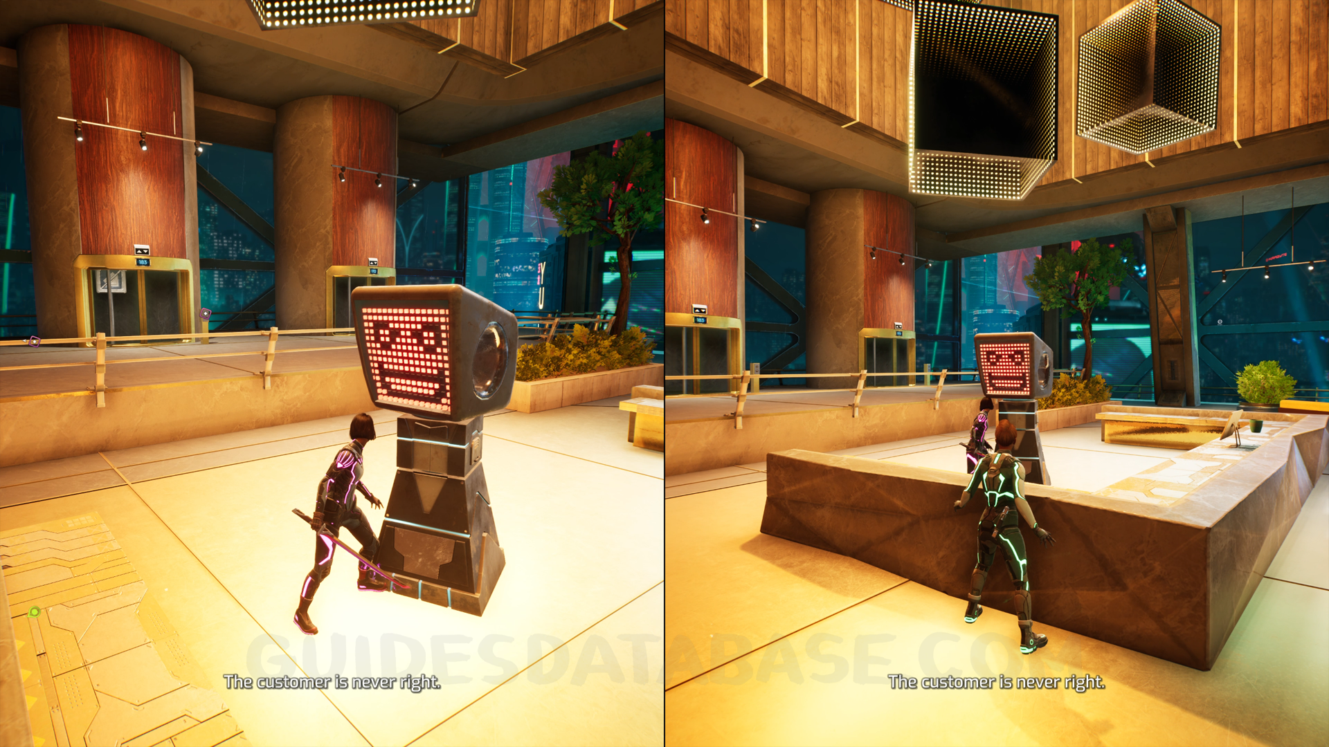 During the mission Streets of Neon, you’ll need to take an elevator on the left. Before that, go forward and jump over the railing to enter this Side Story.