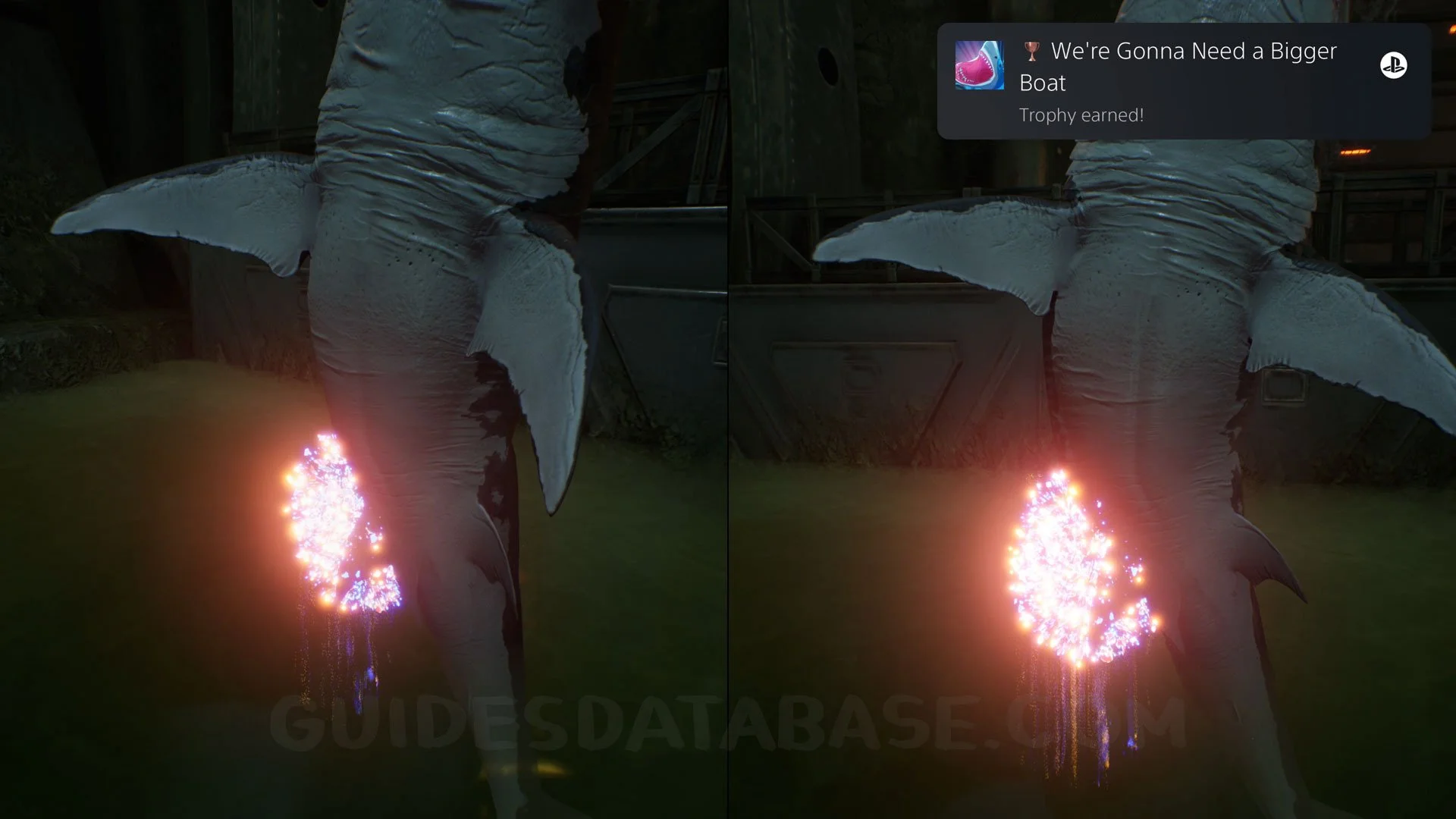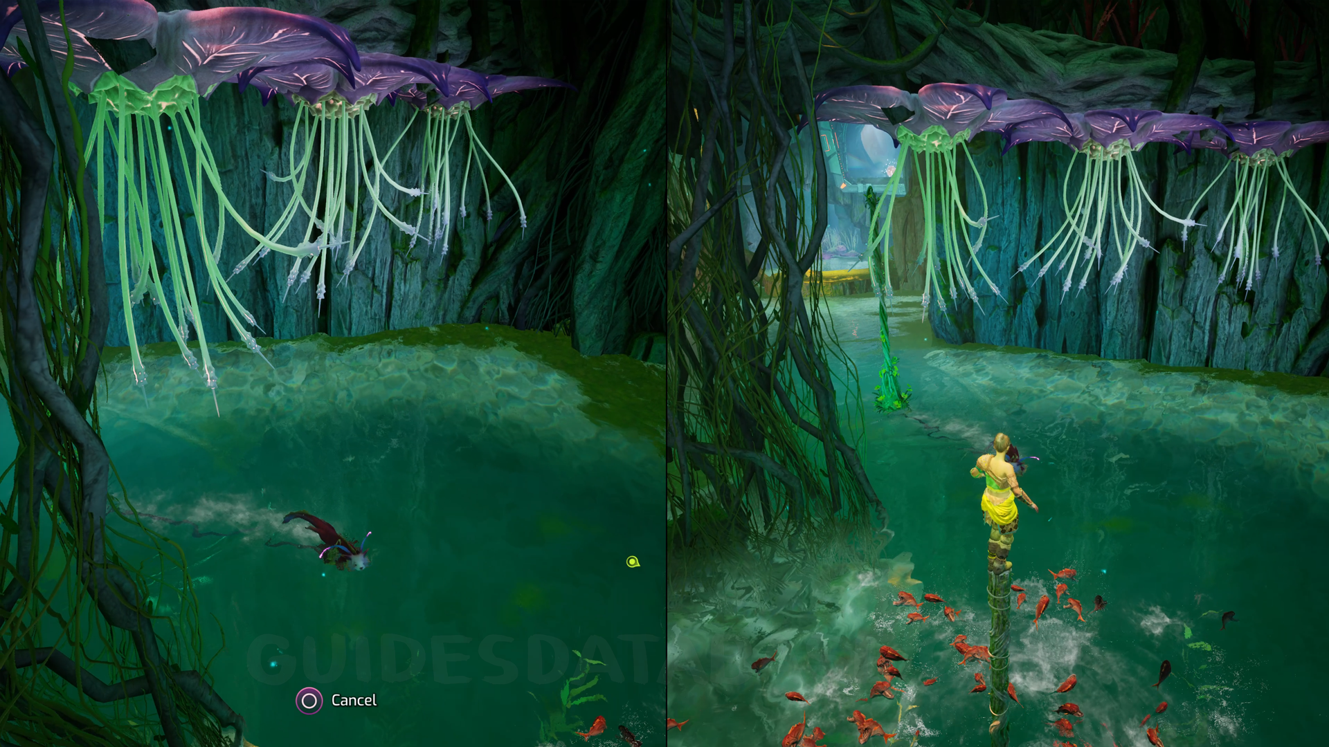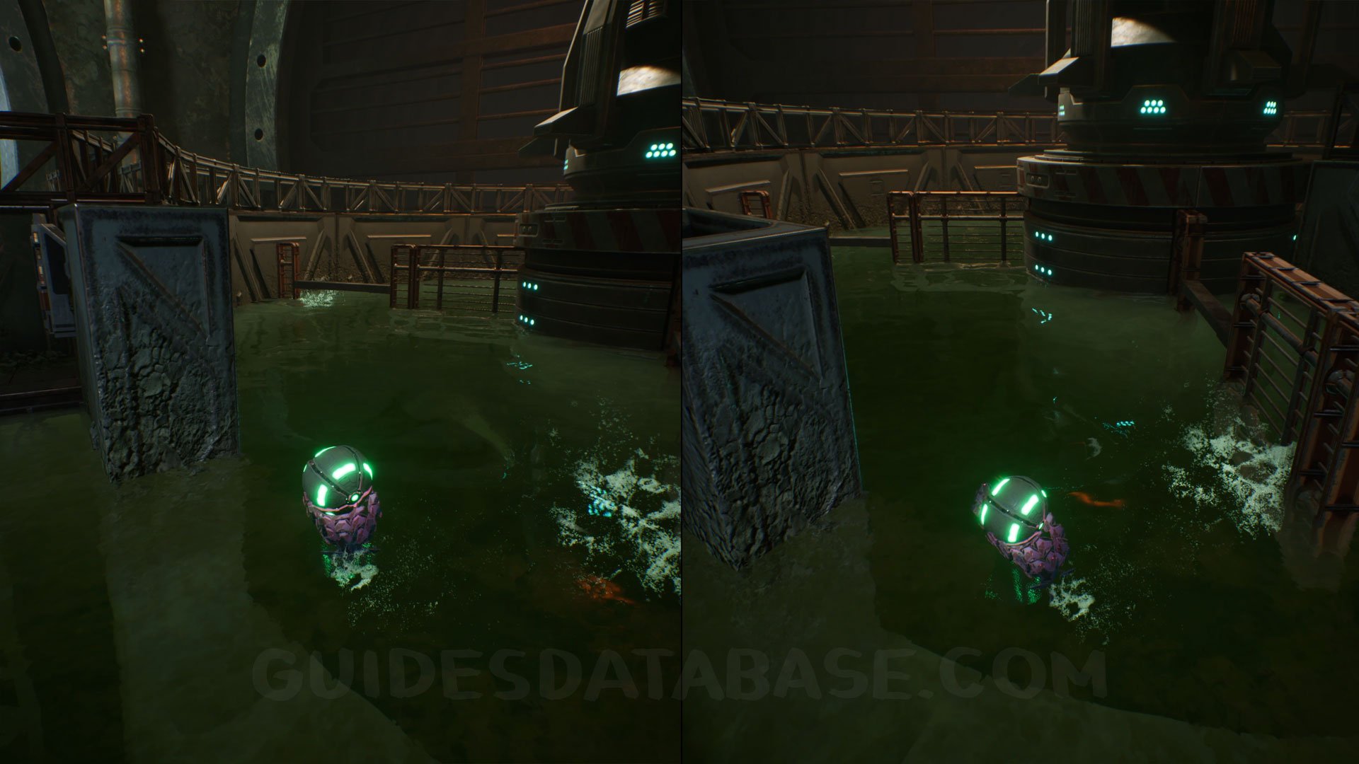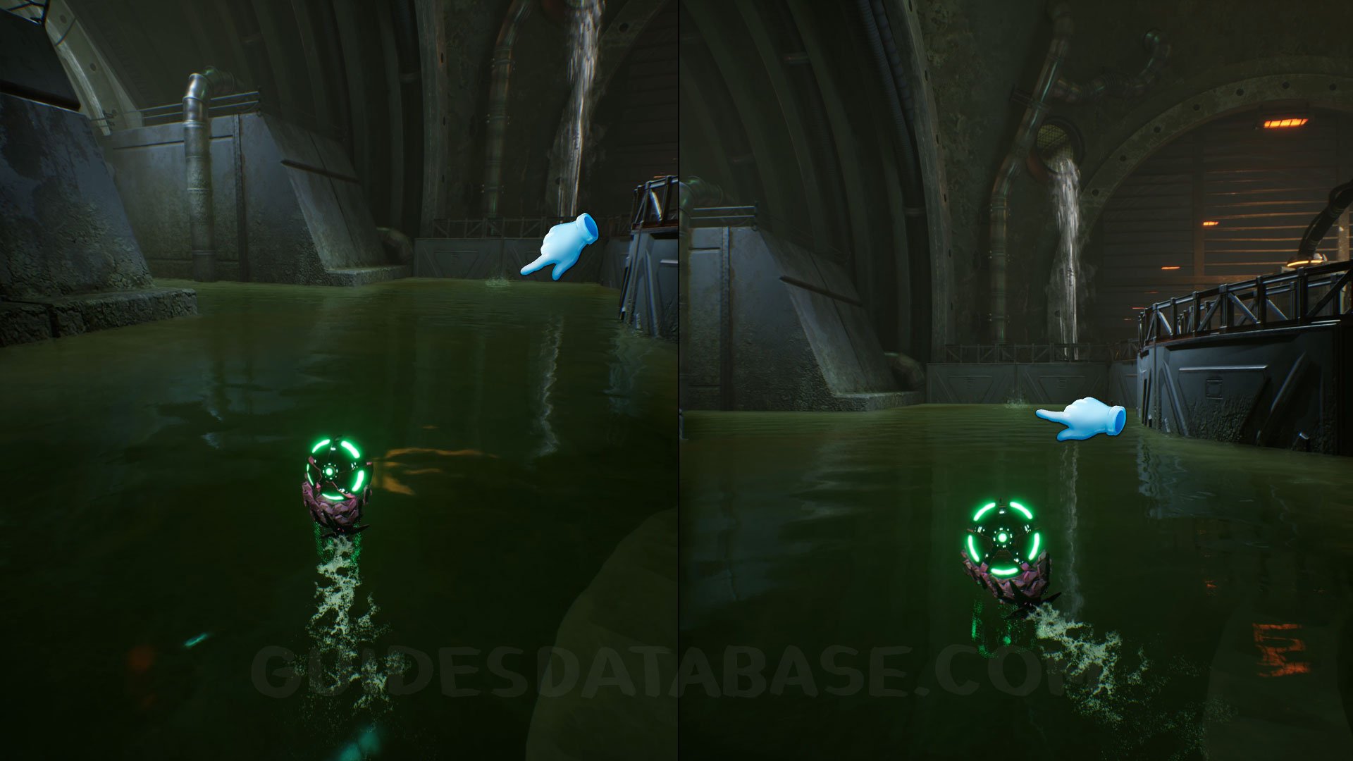 During the Hydration Facility mission, there will be a part where the player controlling Mio transforms into a boat to carry the other player. In the area with a waterfall on the left, you will see some bubbles in the water on the opposite side. Approach the bubbles until a shark attacks you.