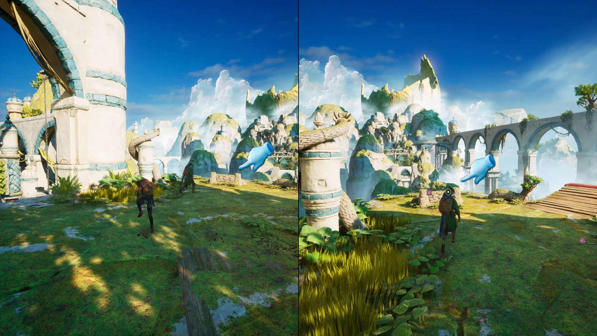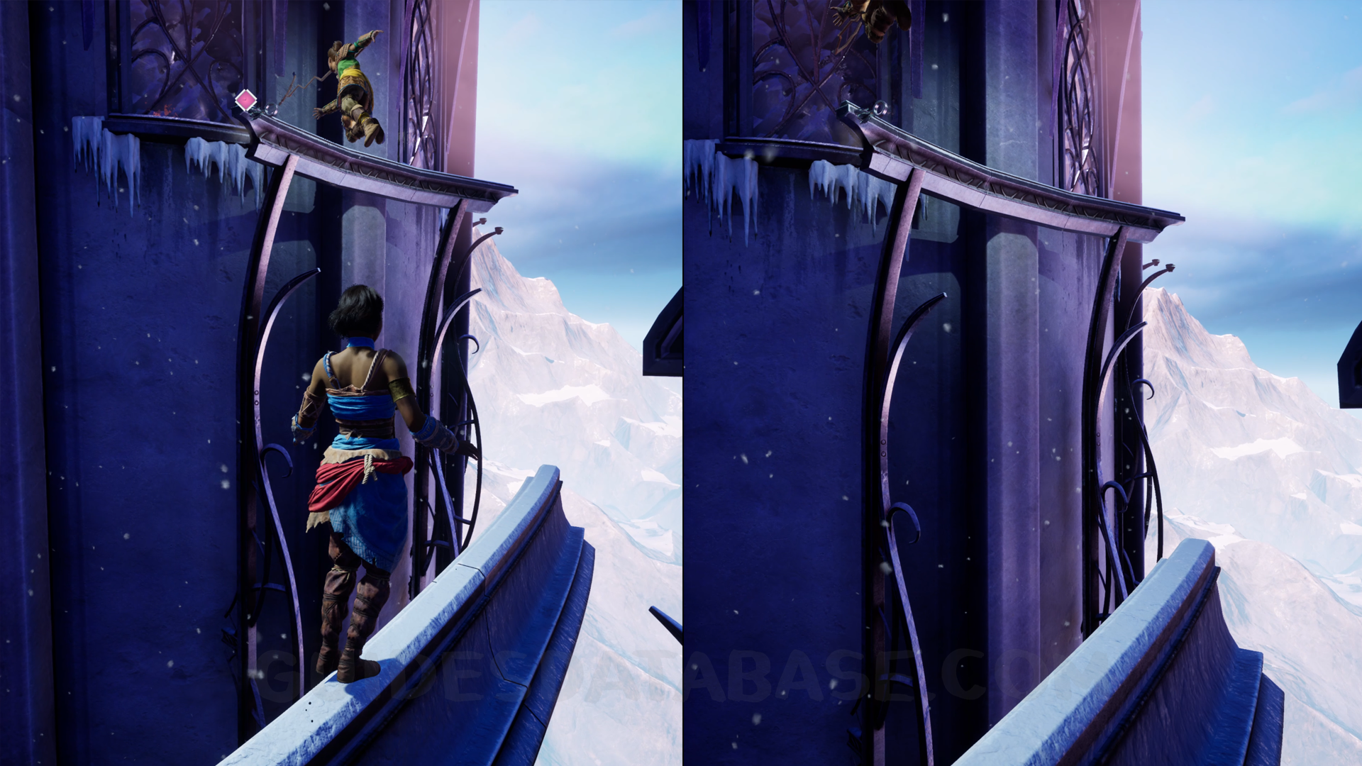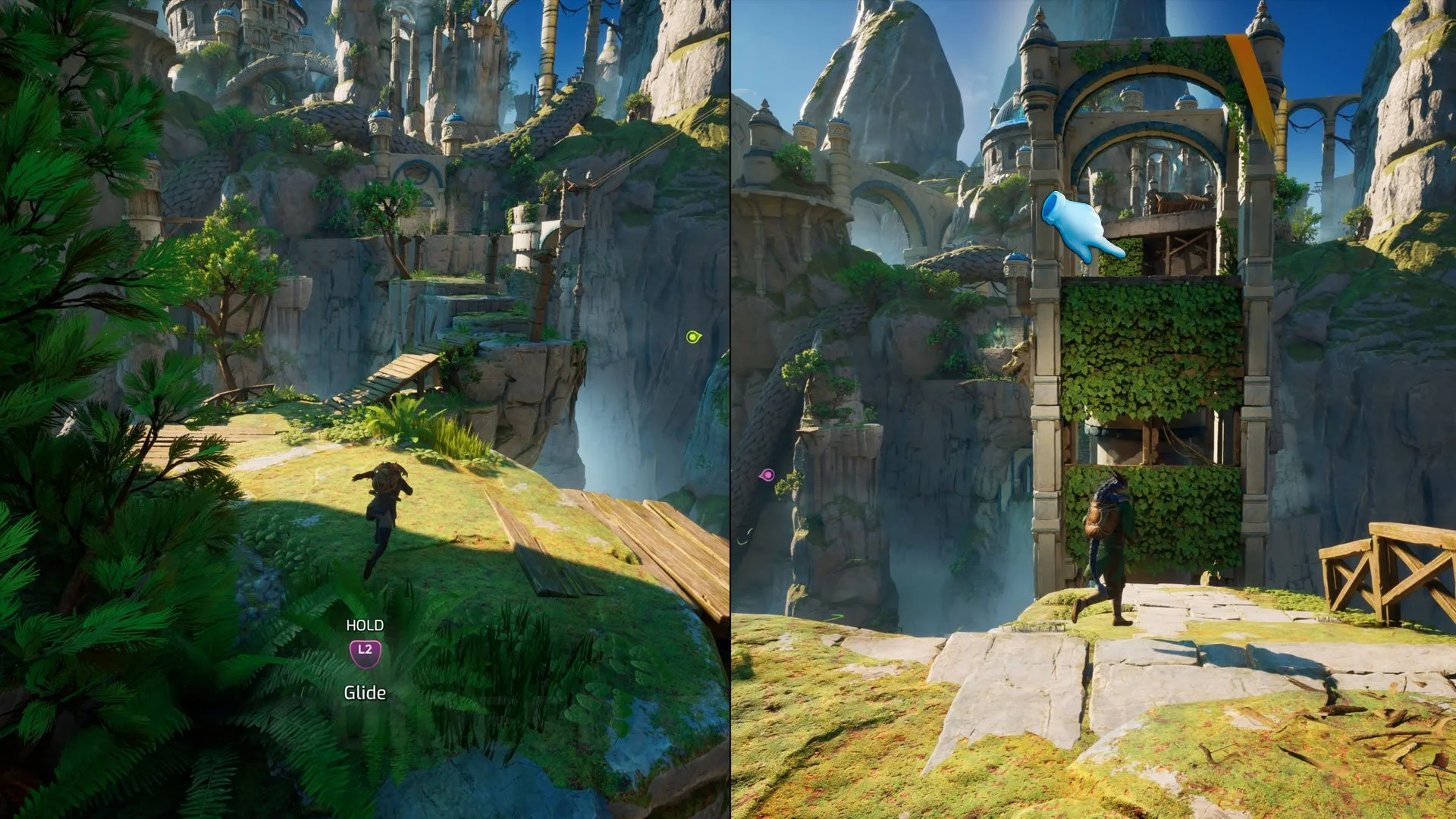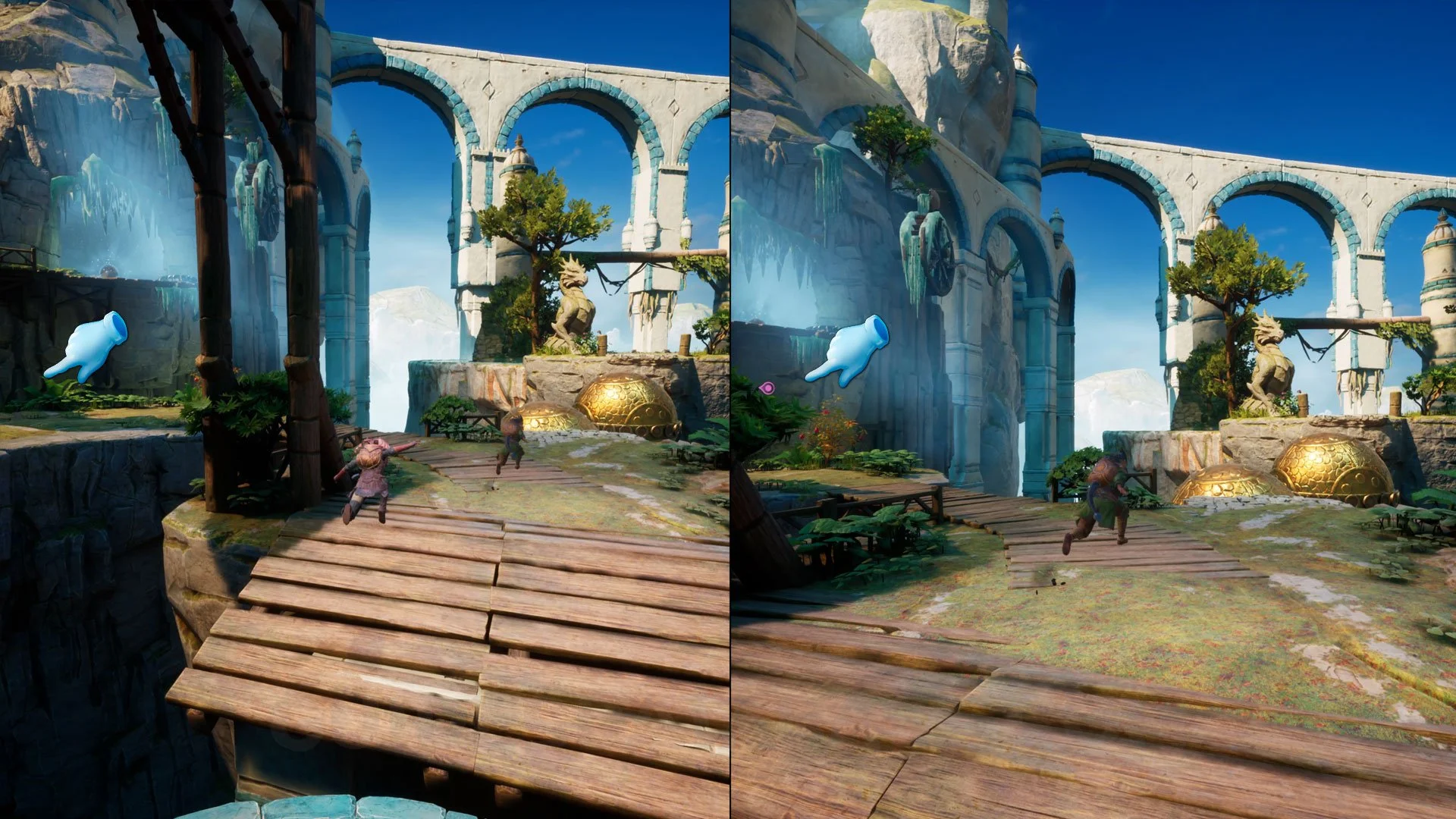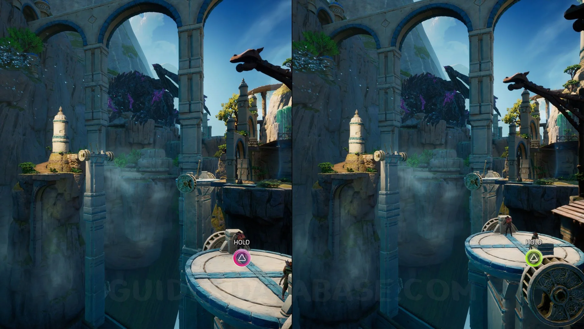 During the mission Water Temple, you’ll see the dragon on the bridge, and next to it you’ll already spot the Side Story area. Continue forward and, instead of going through the golden spheres, go left and pull the lever to be taken to the other side of the area. Then pull the lever again and jump off the platform. Climb the stairs, and you and your friend must pull the two levers to be taken to the Side Story.
