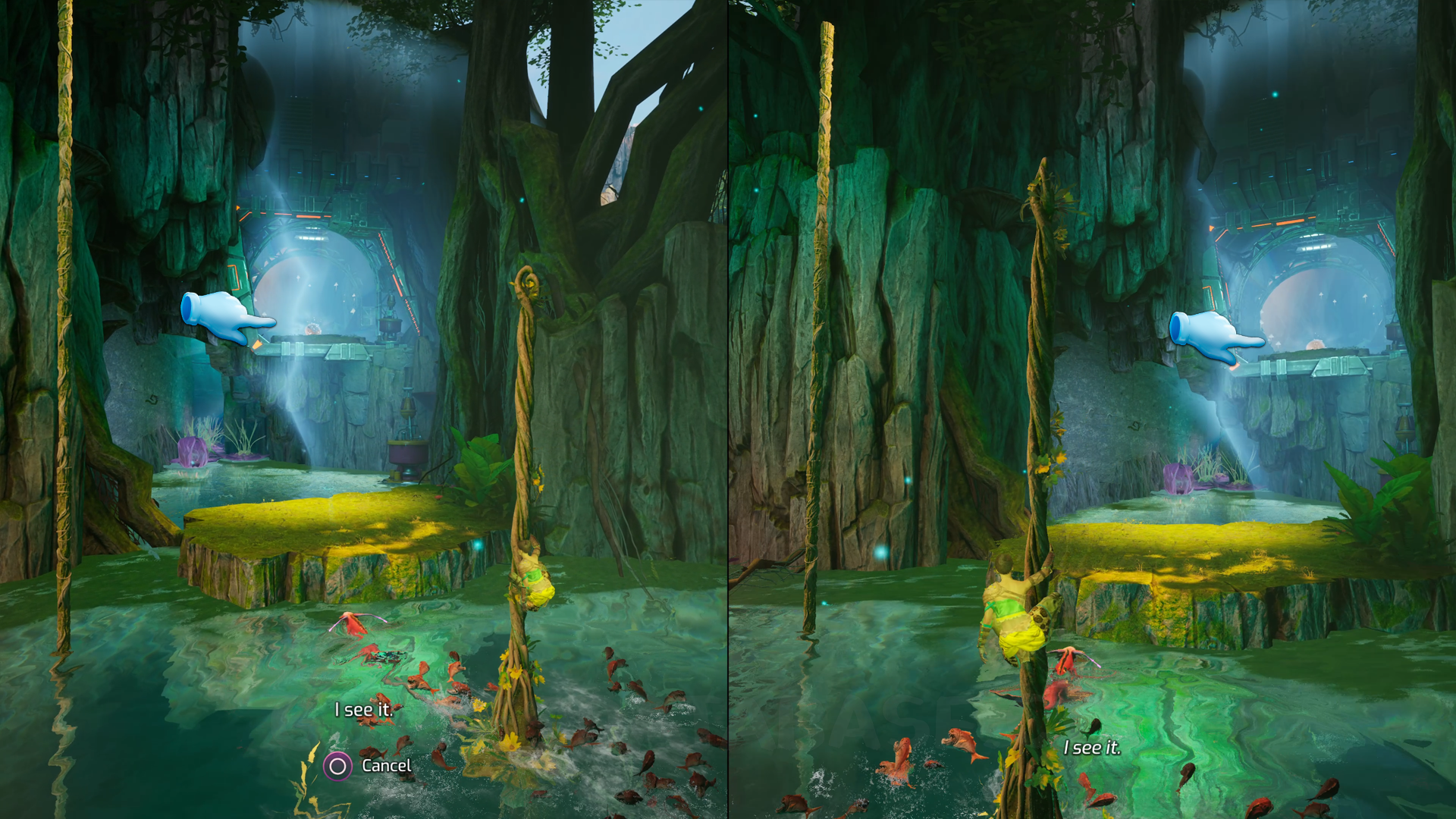 During the mission Lord Evergreen, Player 1 will need to carry Player 2 while they’re holding onto a pole. At this point, you’ll see several poles that you must use to progress. Before doing that, go to the right to reach this Side Story.