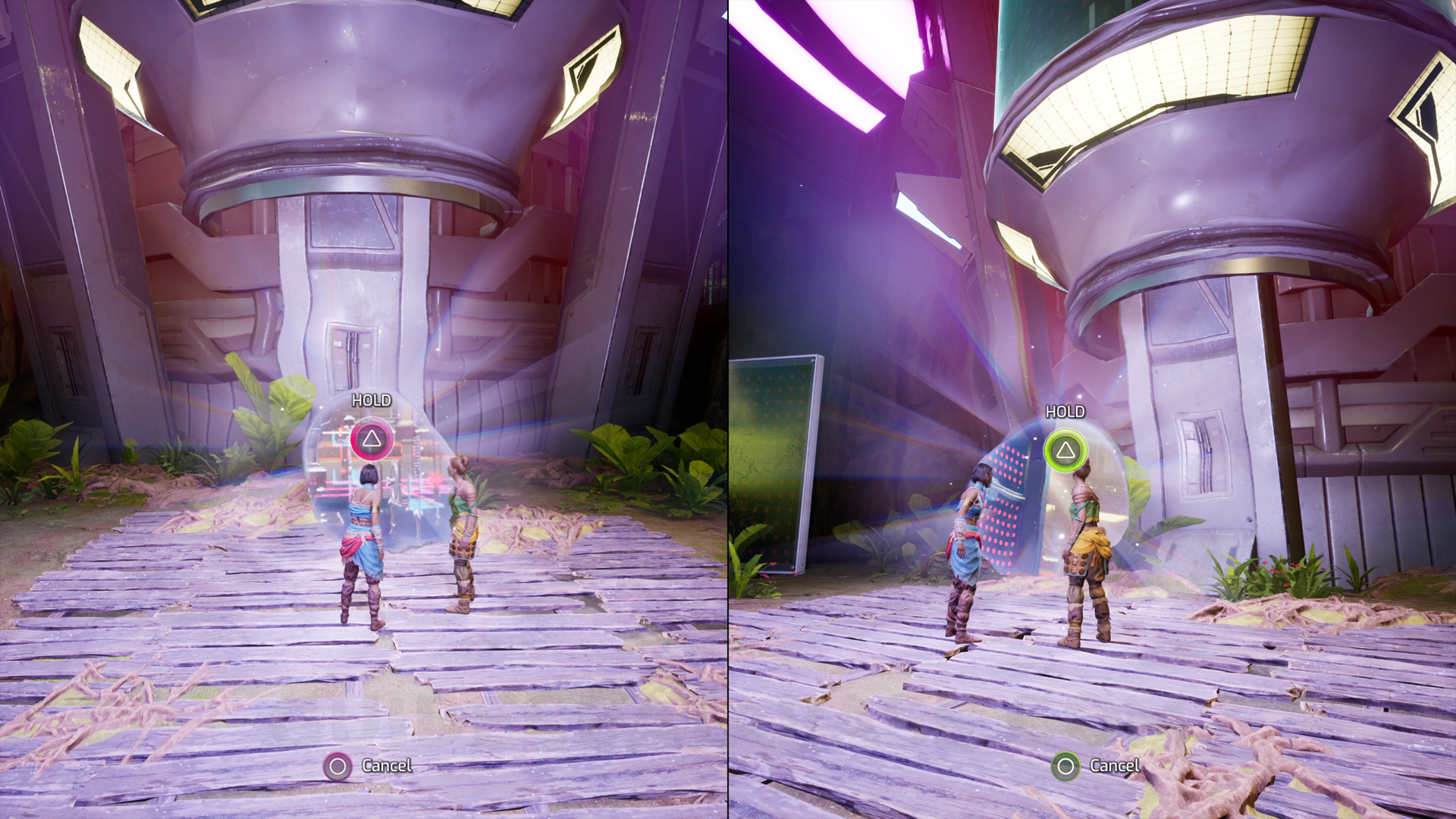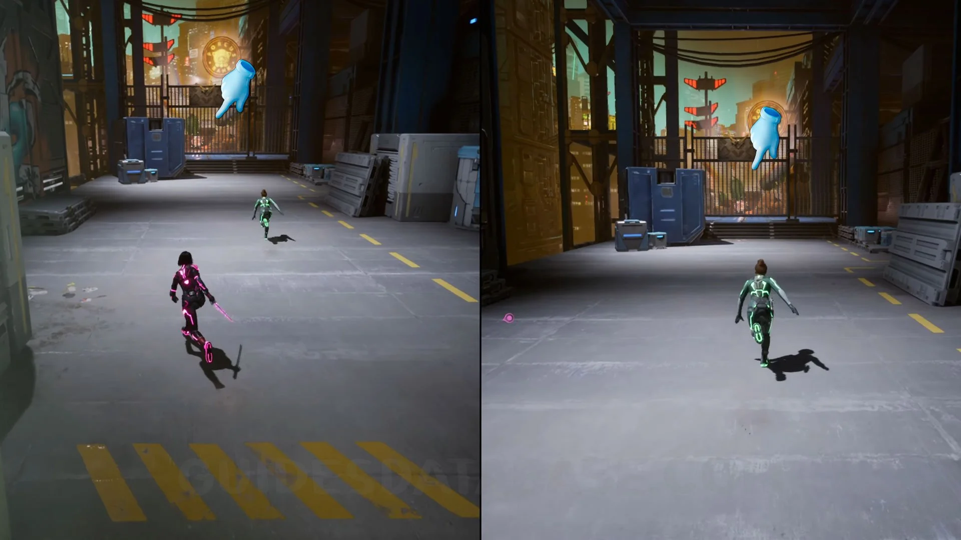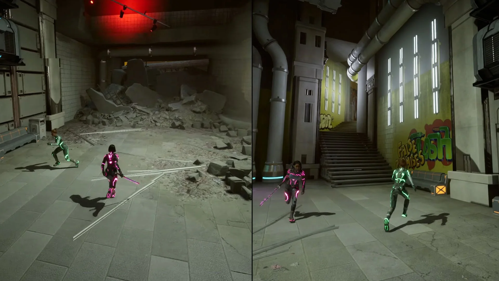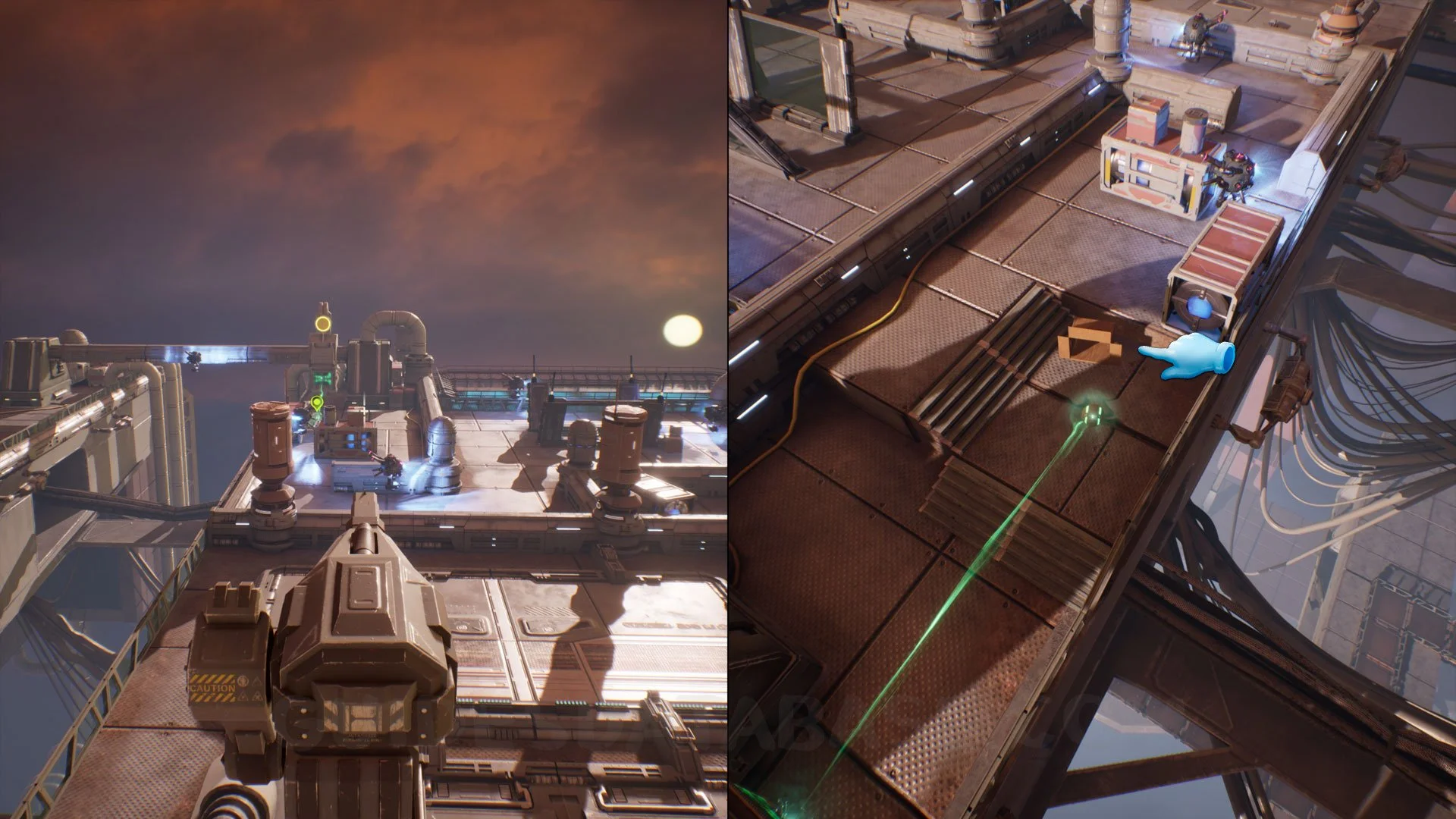 During the mission Test Chamber, you’ll see a red barrier that only Player 1 can pass through and a blue barrier that only Player 2 can pass through. Instead of going through the barriers, continue straight ahead and activate the gate that leads to the Side Story.