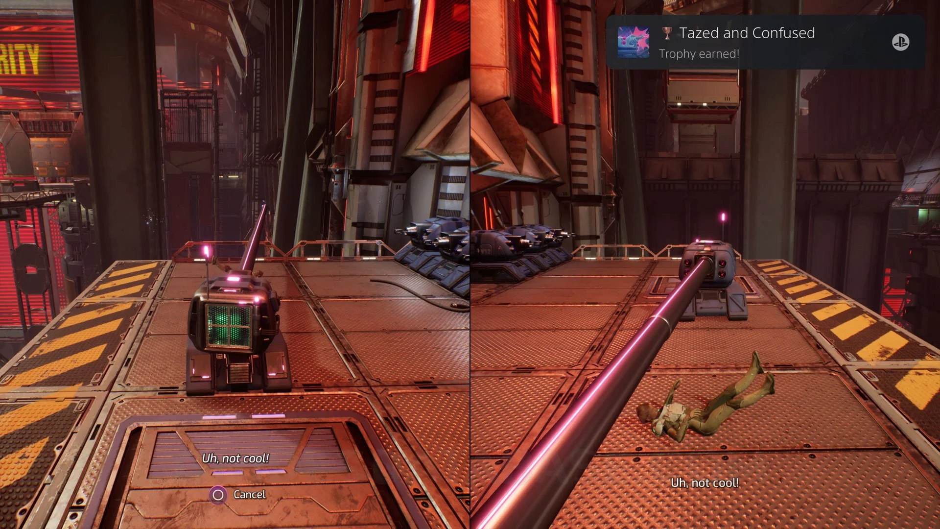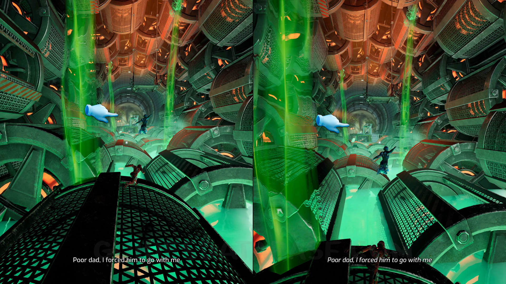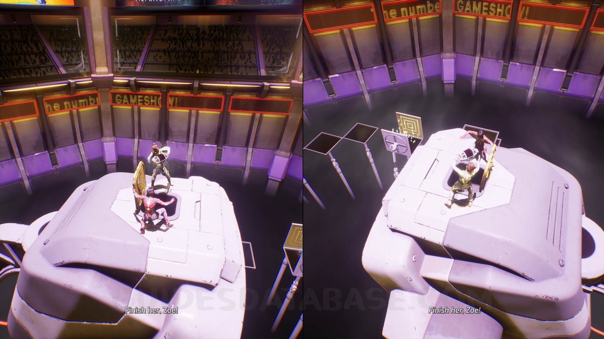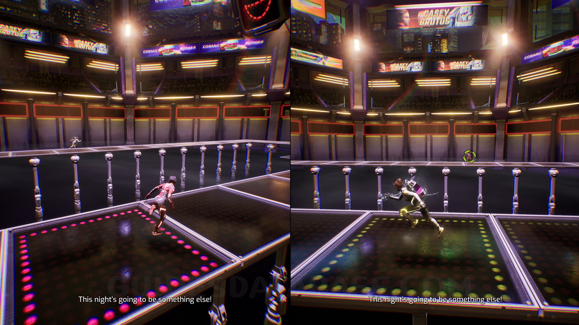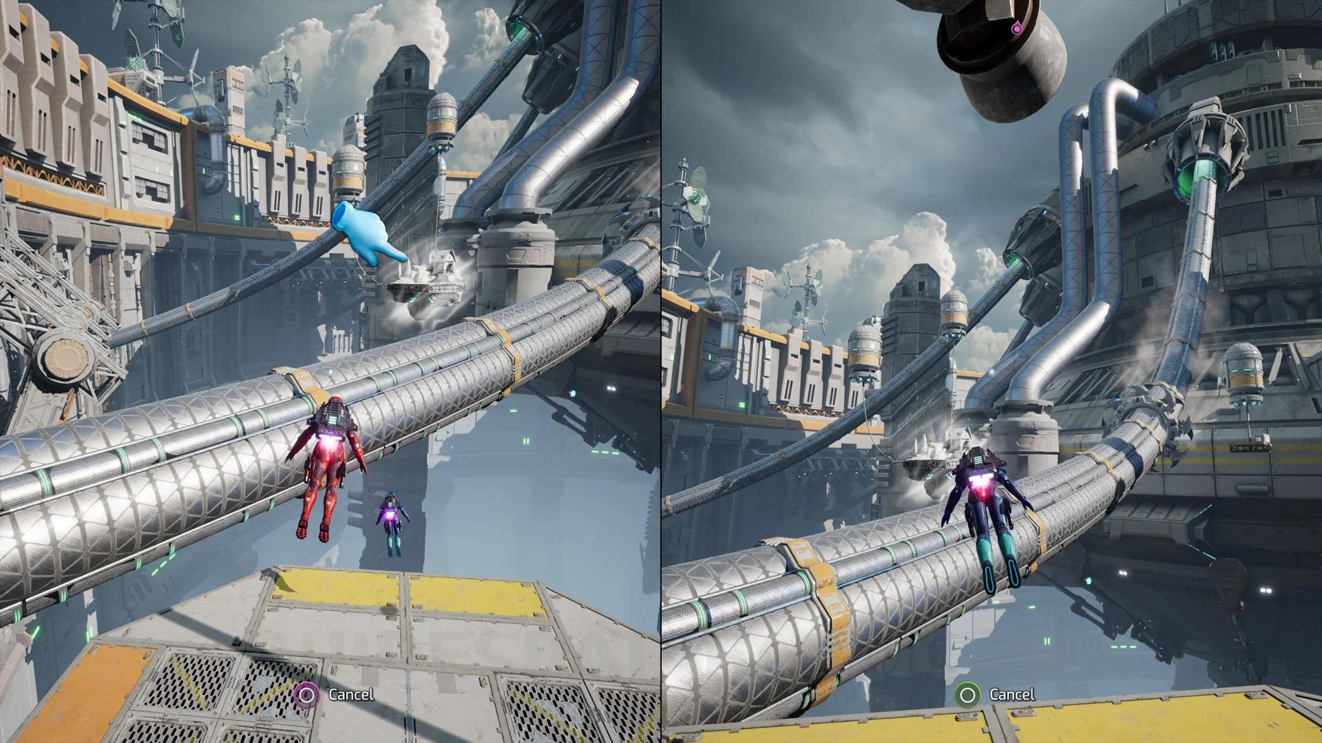 During the Cell Blocks mission, there will be a part where the player controlling Mio enters a device that launches a tube forward. They need to knock the other player down by moving the tube from side to side.