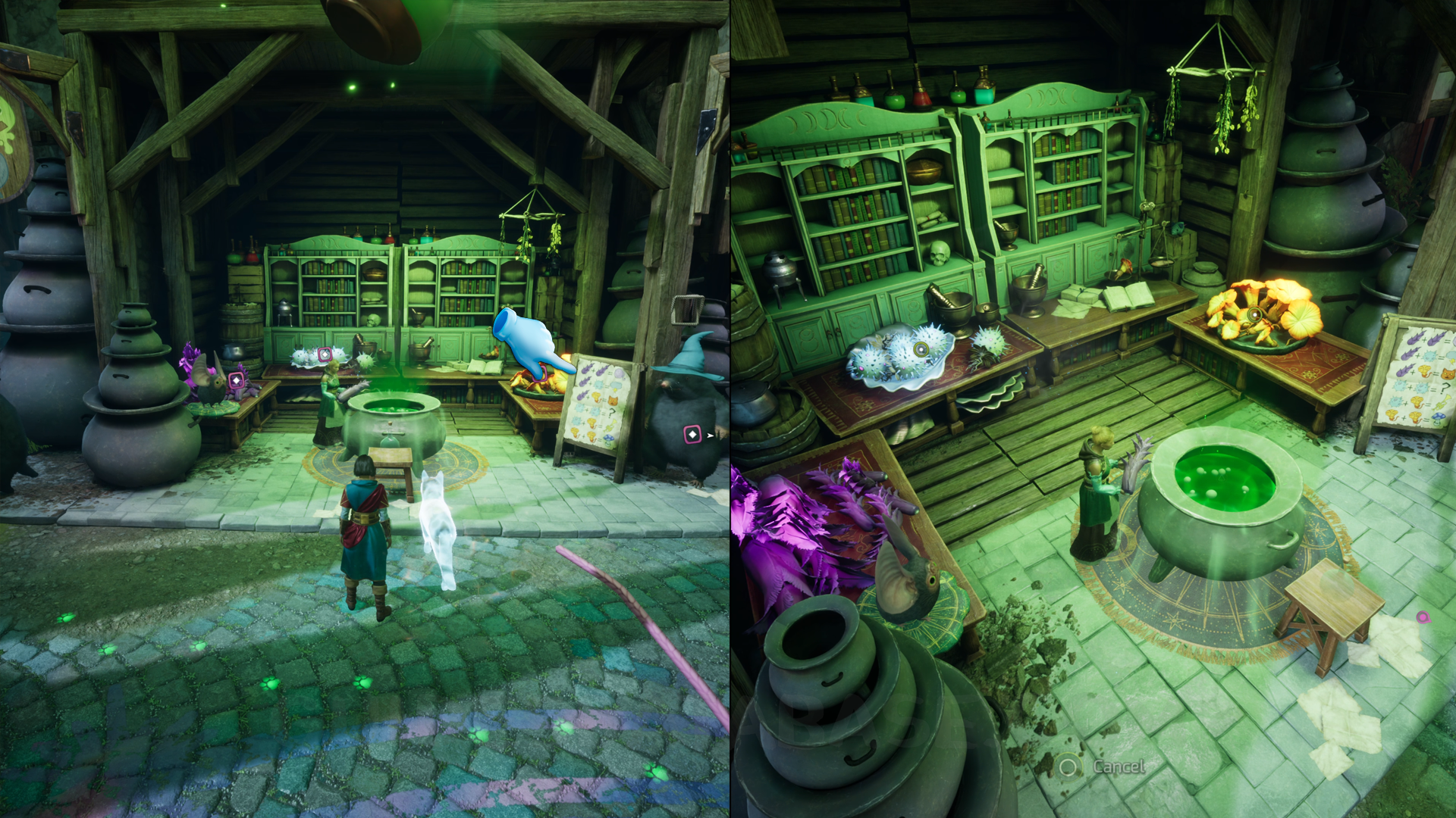 During Side Story #8 – Moon Market, go to the cauldron in the central area and check the ingredients listed on the table next to it. One player must prepare all the available potions by following the table, while the other player must drink all the potions.