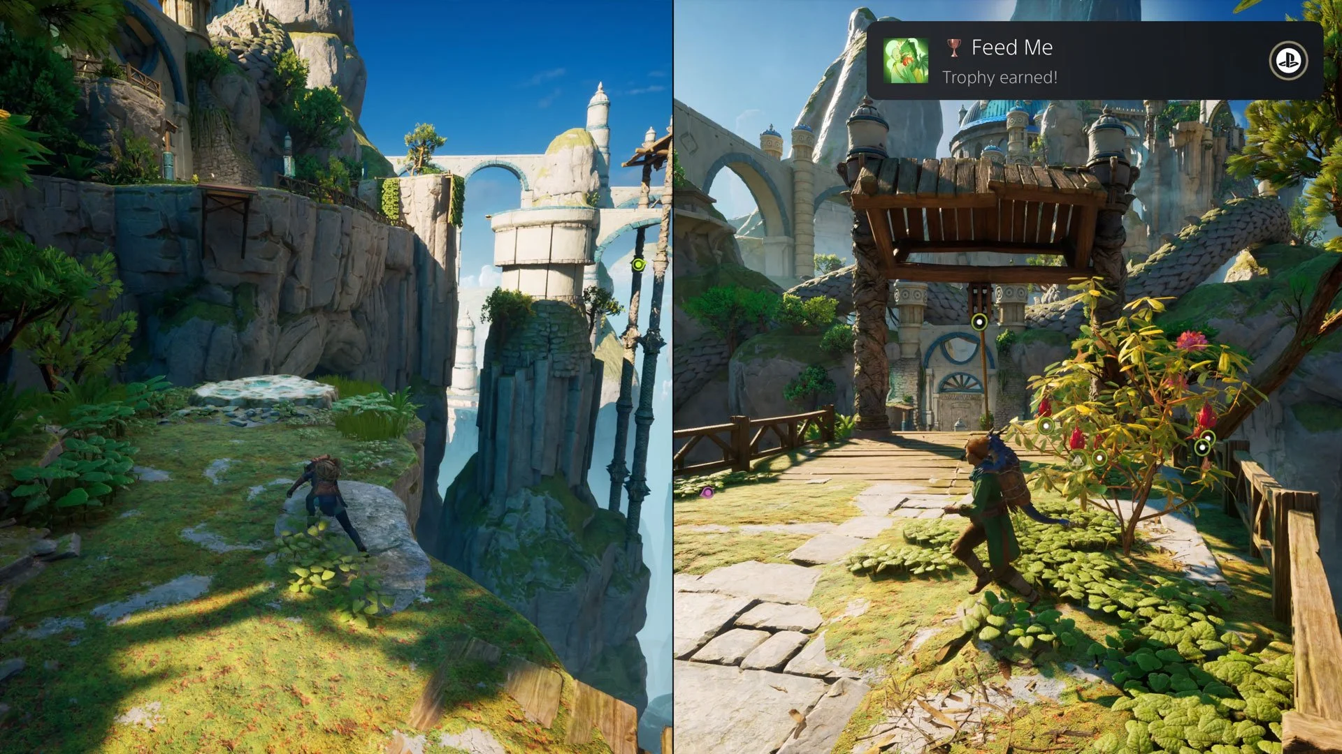 From the previous Side Story, Player 1 must throw the ball to Player 2 so they can break the glass. Use the ball to break the glass on the bridge to obtain this trophy.