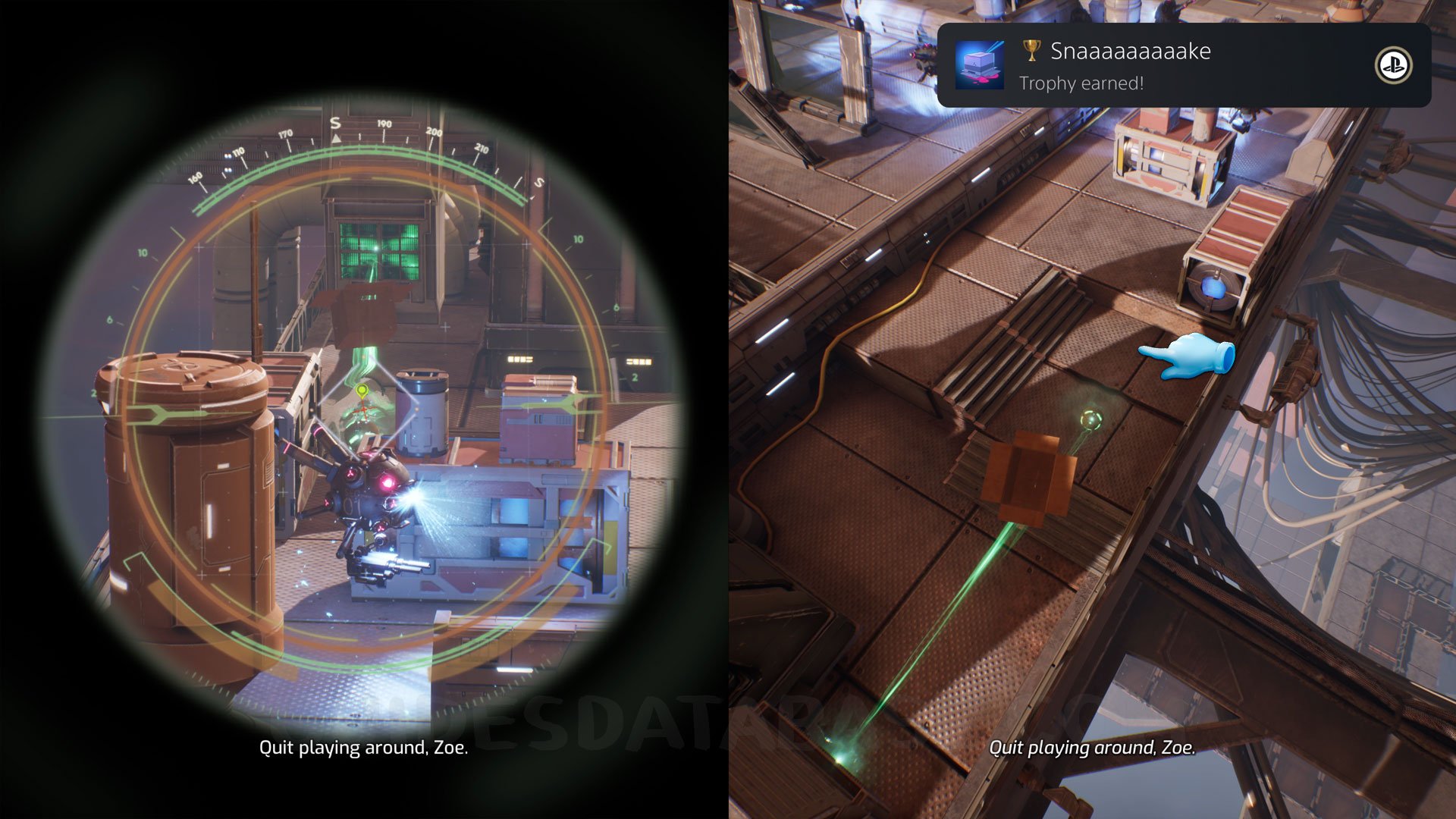 During the Prison Courtyard mission, in the section where the player controlling Mio needs to guide the other player by shooting some robots with a sniper, there will be a part with a box. The player controlling Zoe needs to hide inside the box, and the player controlling Mio needs to shoot it.