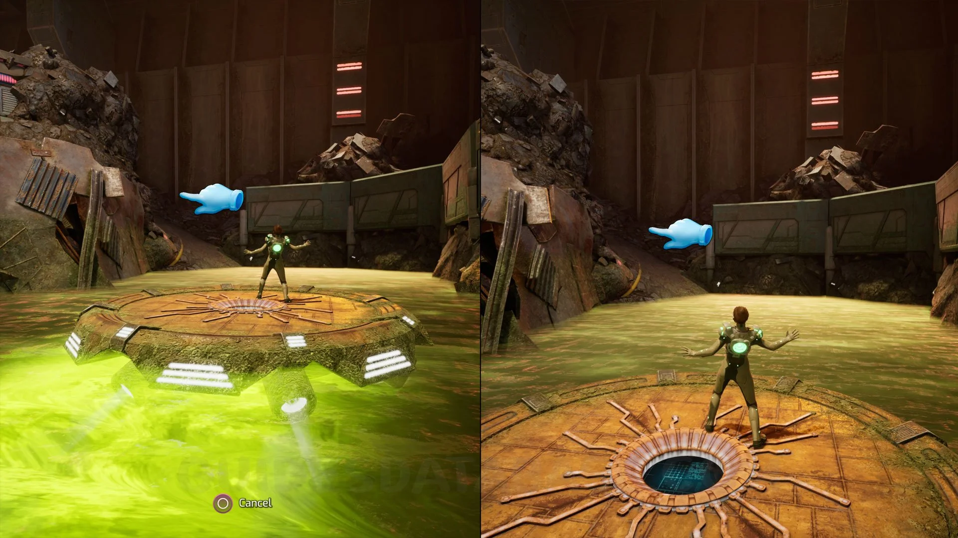 At the beginning of the first mission, The Underlabs, you’ll see a swing. Player 2 must sit on the swing while Player 1 transforms and punches it, sending Player 2 flying.