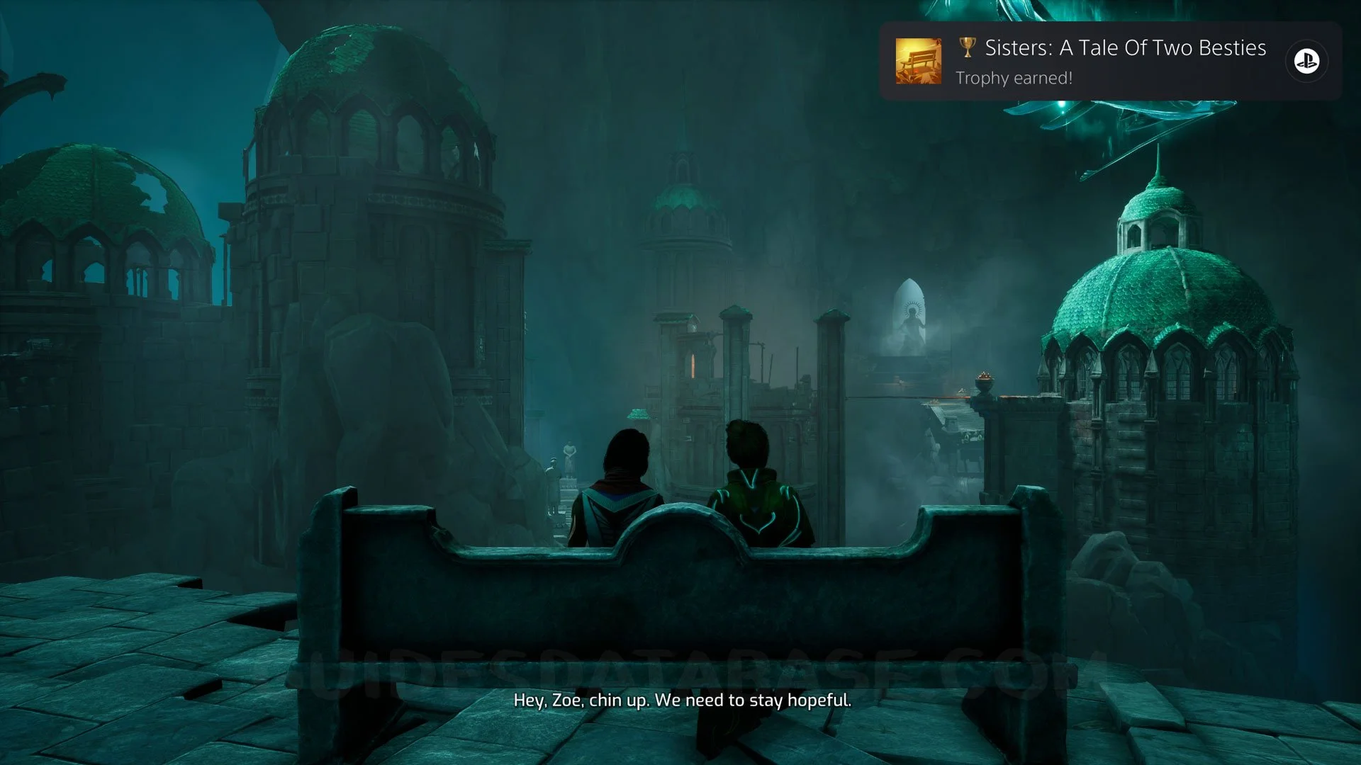 During the mission Mosaic of Memories, you’ll climb up a chain, and then Player 1 will need to create a few light steps so you can cross to the other side. This bench will be directly in front of you hard to miss. Sit down, and here you’ll unlock the Sisters: A Tale of Two Besties trophy if you’ve sat on all 6 benches.