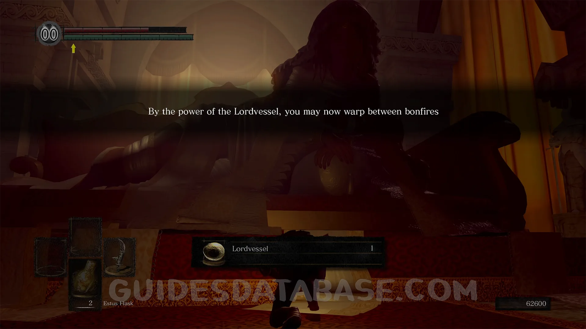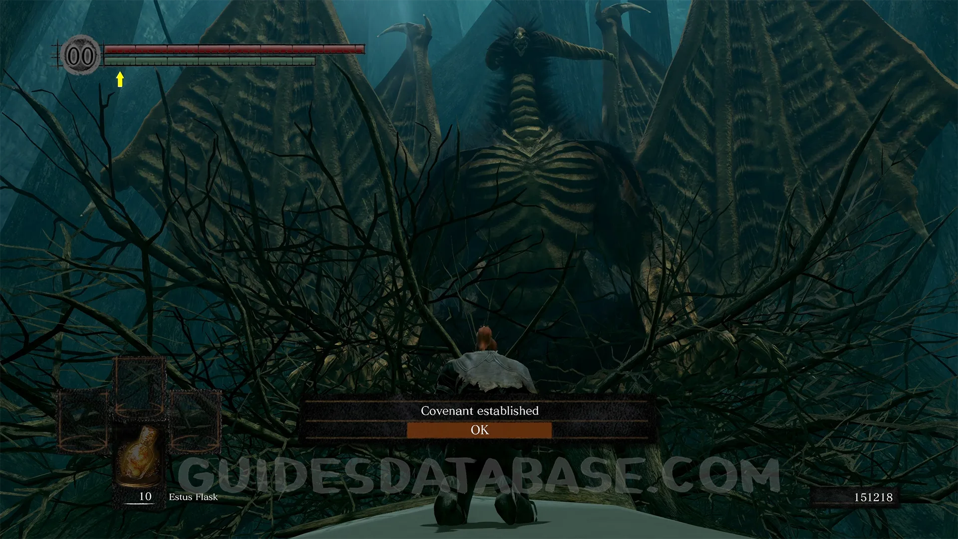 After defeating the boss, another primordial serpent will appear, speak with it and answer yes. Place the Lordvessel on the altar, then speak with it again to return to the Abyss, speak once more to join the covenant.