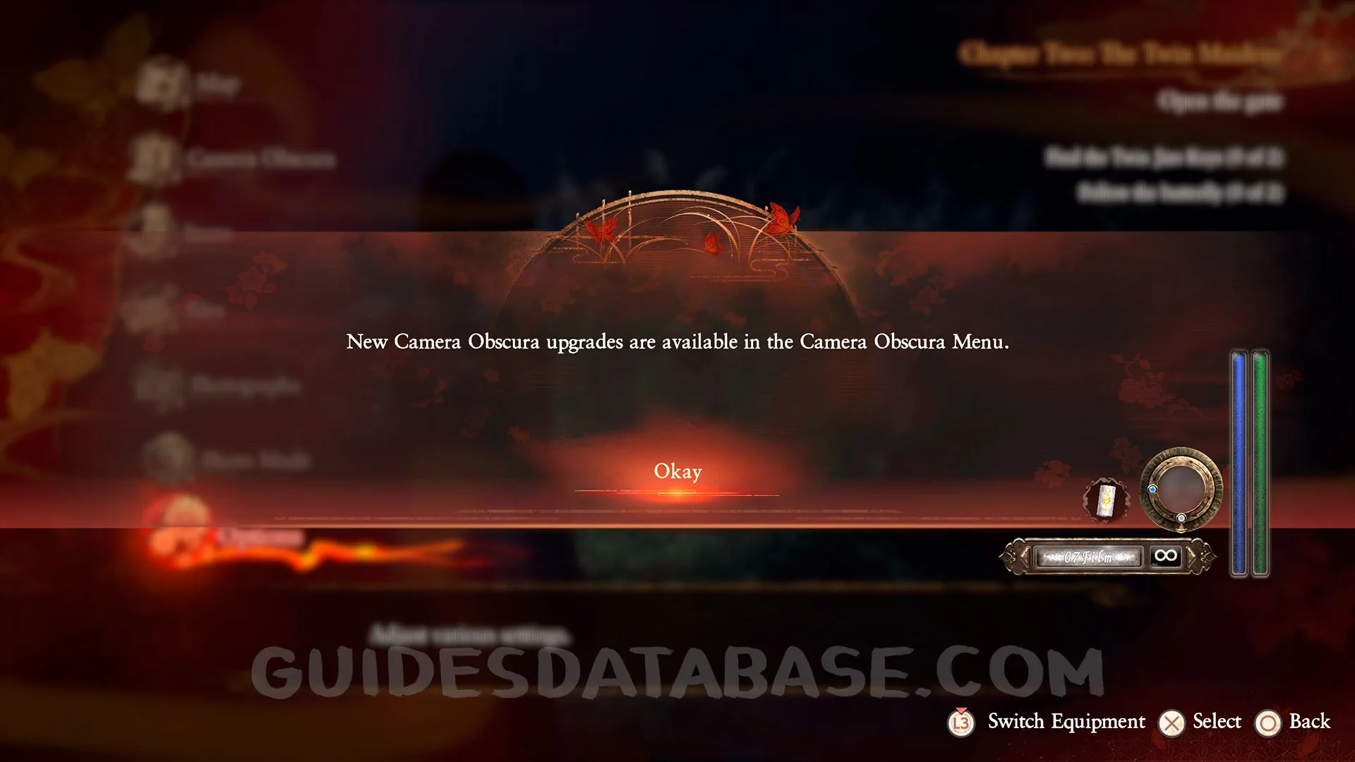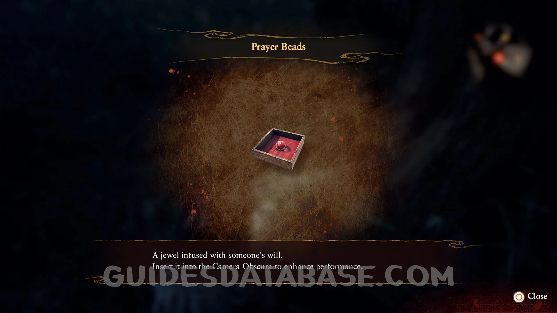 After obtaining at least one Prayer Bead, the Camera Obscura menu will be available. Upgrade any part of the Camera Obscura to obtain this.