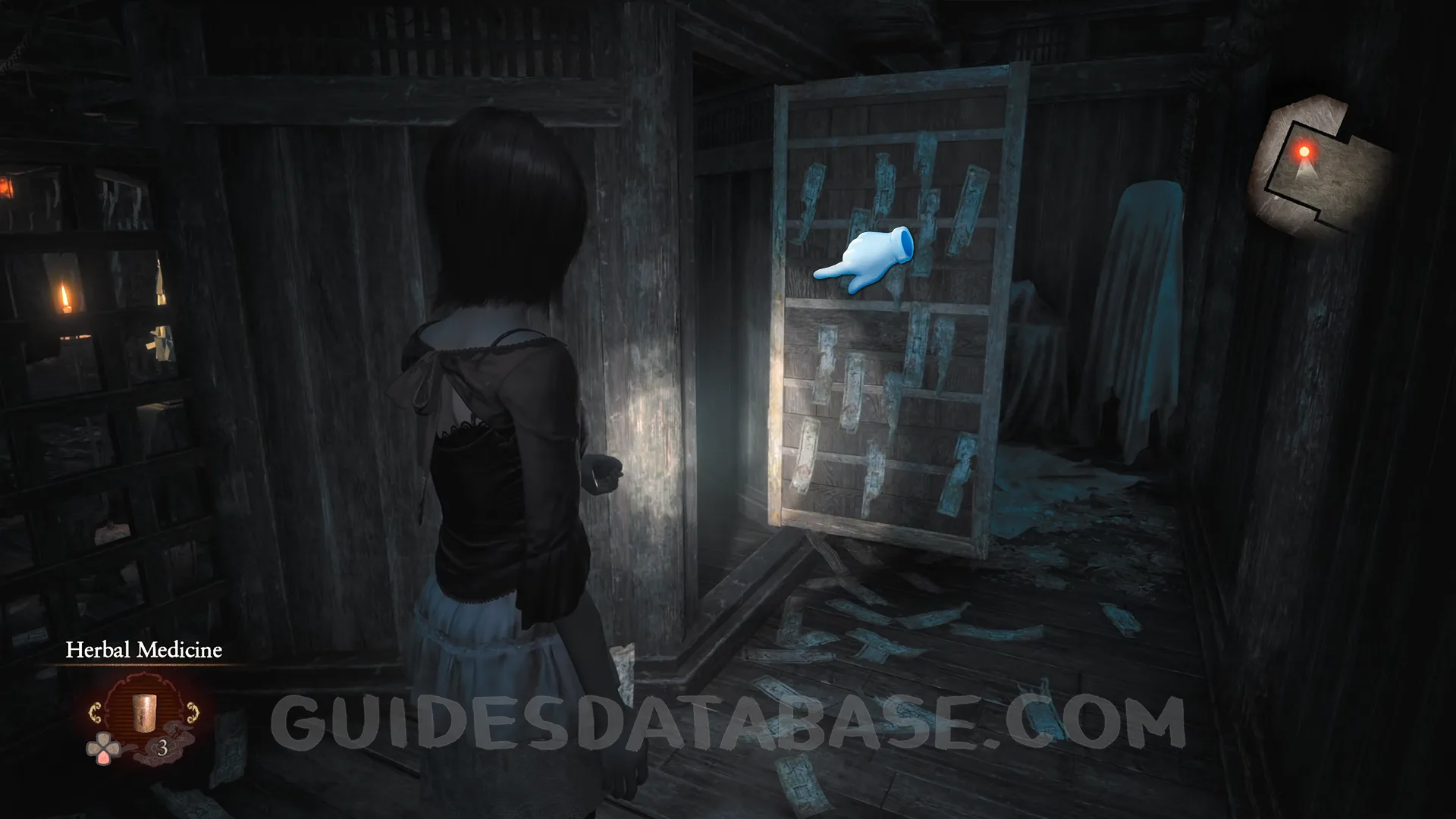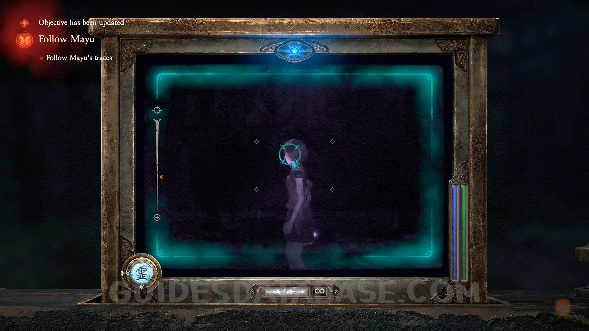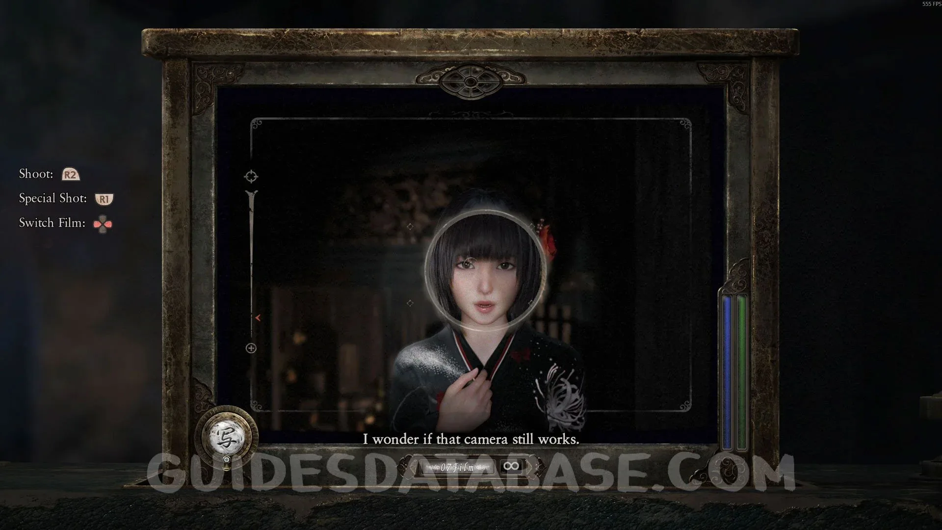 In Chapter 2, after obtaining the Paraceptual Filter through the story, press Square while using the camera to change the film and see Mayu passing by in a vanishing trace.
